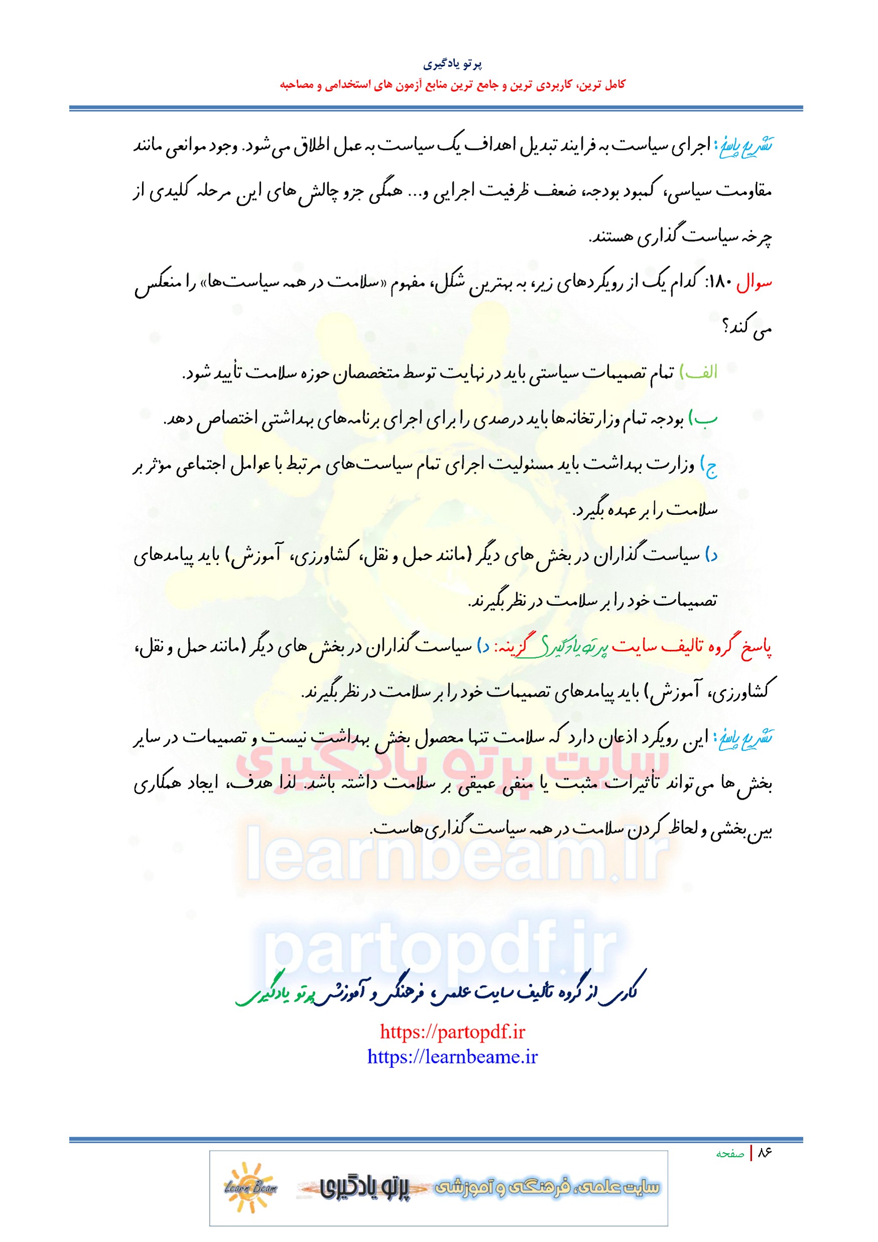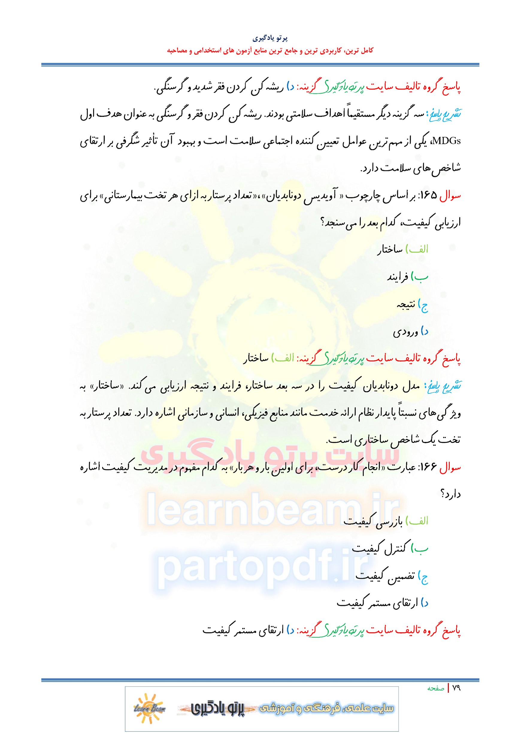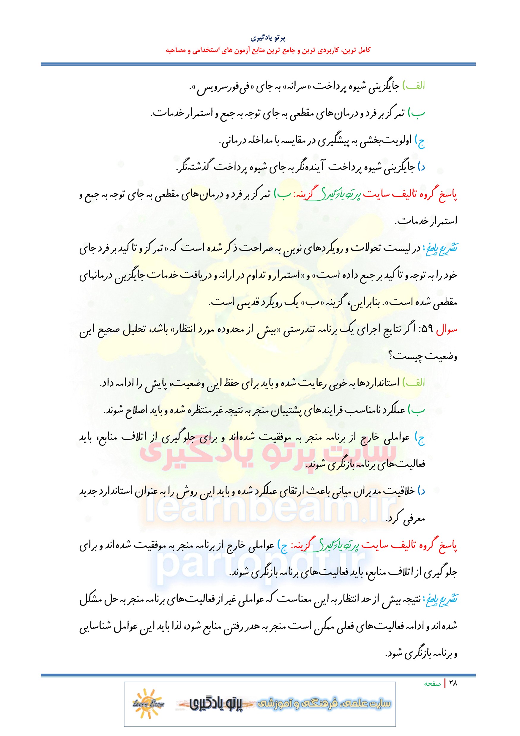 مجموعه سوالات و تست کتاب کتاب اصول مدیریت و برنامه ریزی بهداشتی با پاسخ تشریحی
