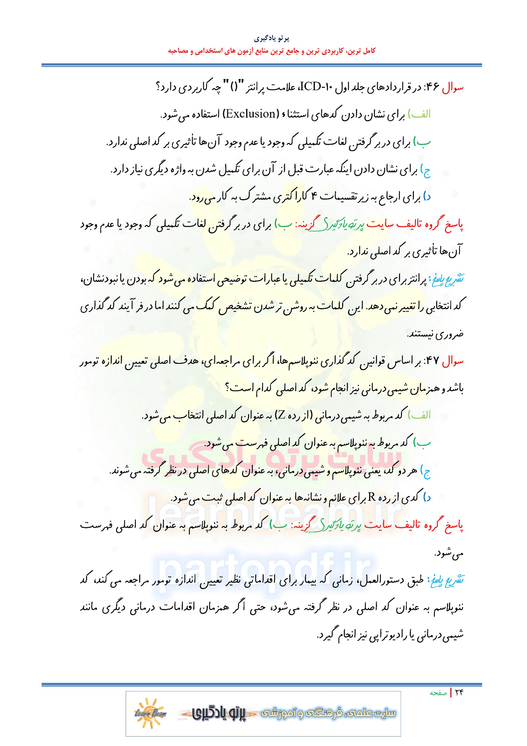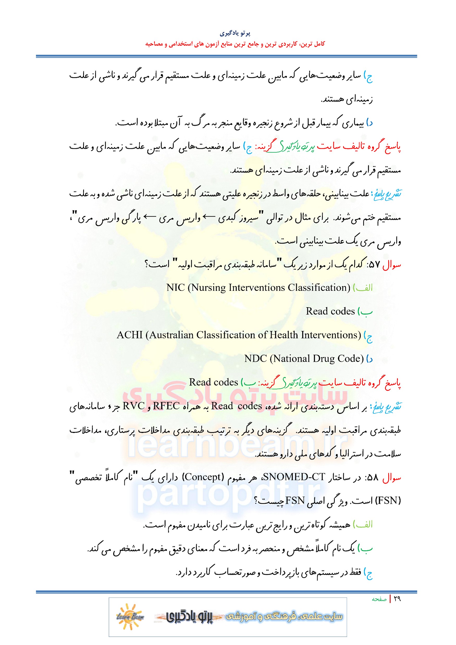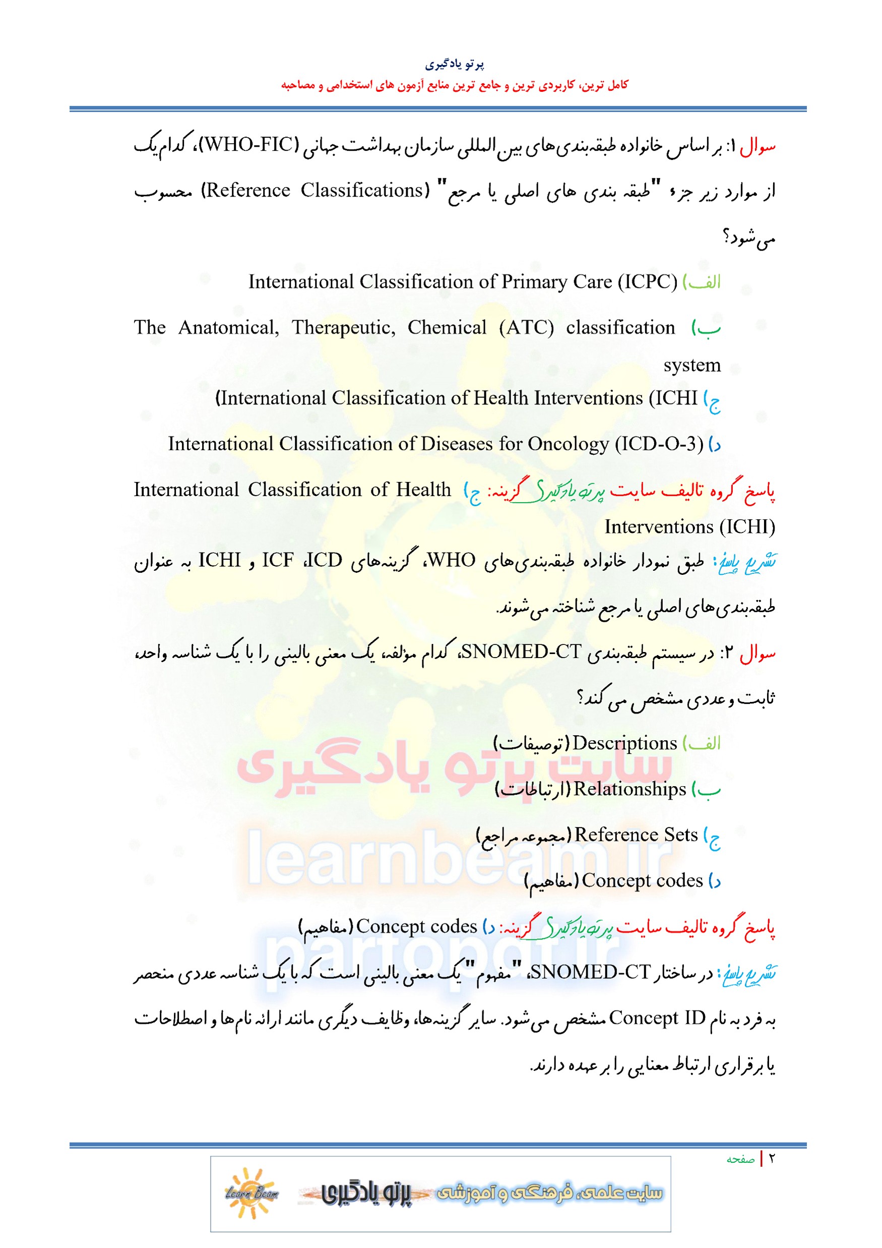 مجموعه سوالات و تست کدگذاری داده های سلامت با پاسخ تشریحی