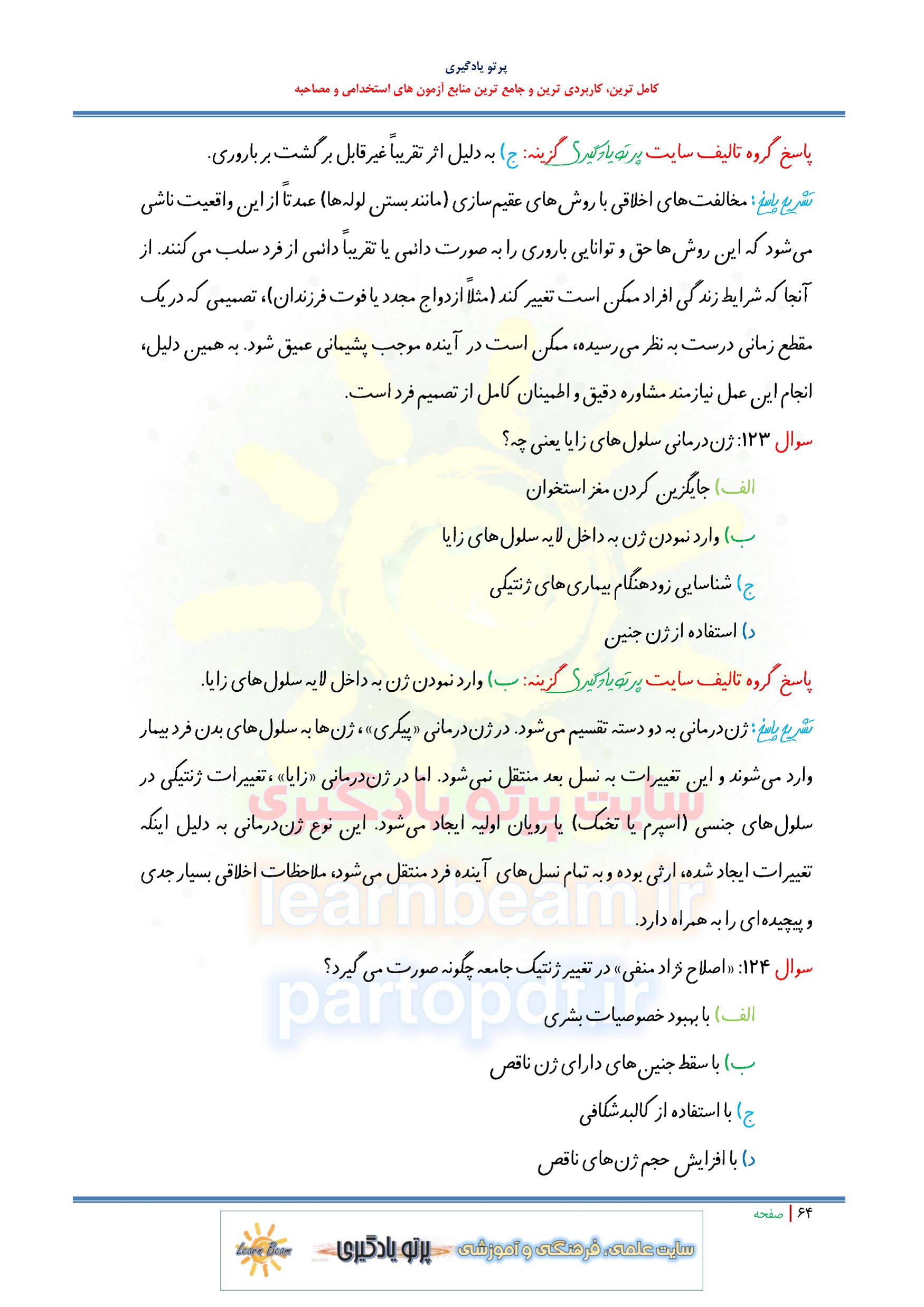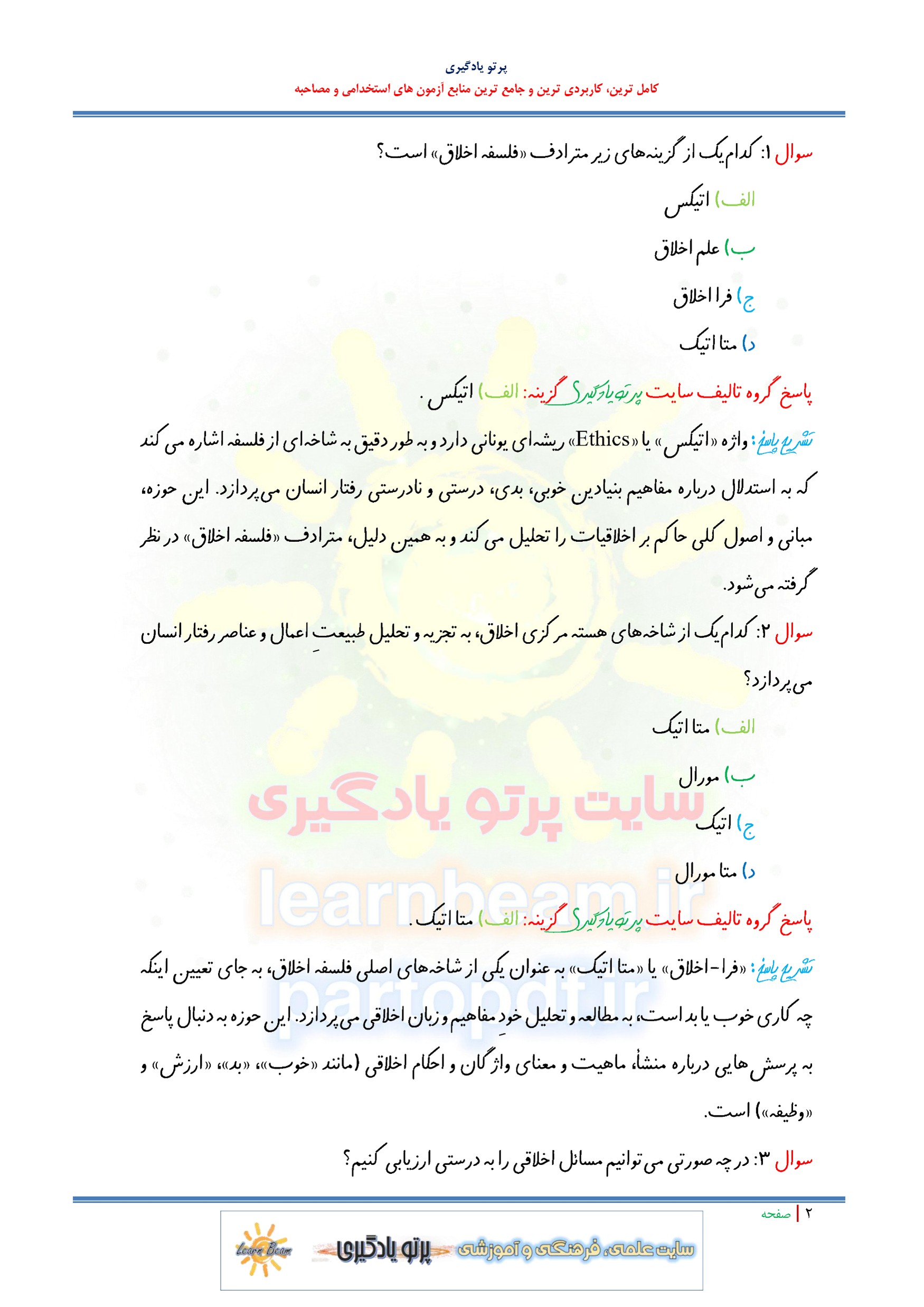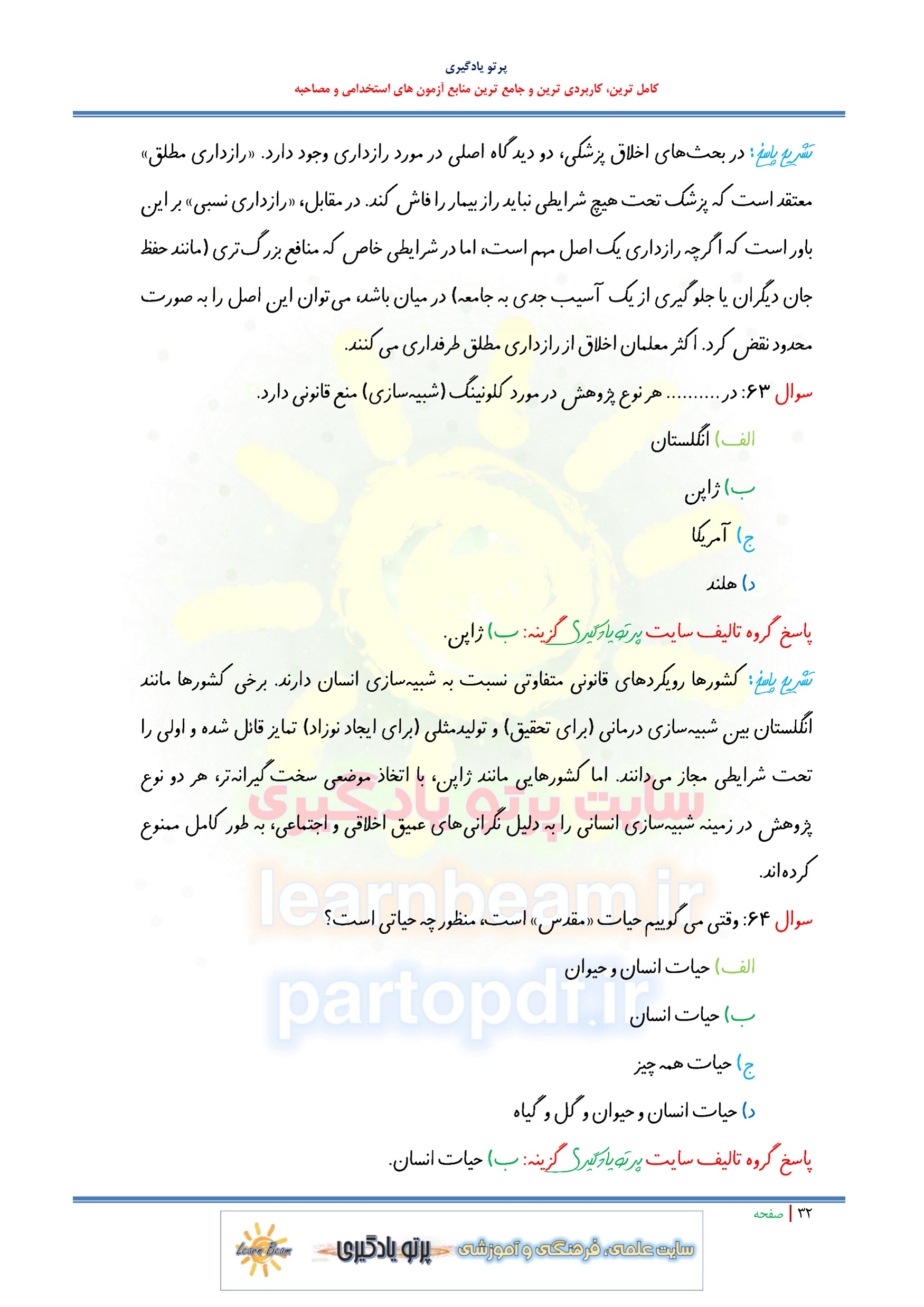 مجموعه سوالات و تست کتاب اخلاق پزشکی با پاسخ تشریحی