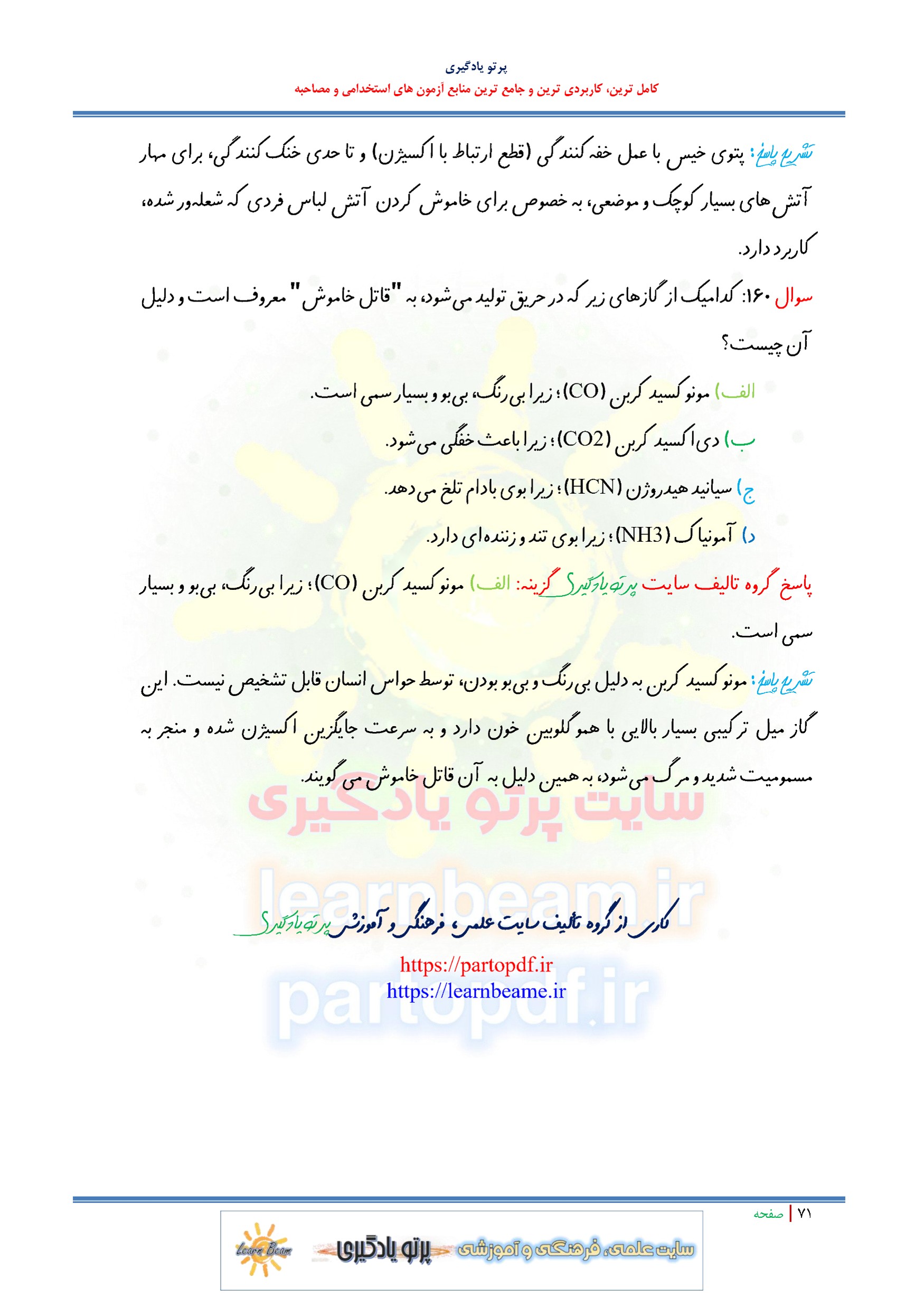 سوالات و تست مبانی حریق و آتش نشانی سوالات کتاب مبانی حریق و آتش نشانی شامل 160 سوال تستی در 71 صفحه با پاسخ تشریحی در قالب فایل pdf. بهترین منبع برای آزمون های استخدامی می باشد. مجموعه سوالات تستی مبانی حریق و آتش نشانی مطالب خوانده شده داوطلبین آزمون استخدامی را نظم بخشیده و منسجم می سازد. این مجموعه مرور سریع داوطلب را سبب می شود و آگاهی های وی را نظم بخشیده و یک آمادگی و شبیه سازی را برای جلسه آزمون به همراه دارد. مطالعه این منبع برای همه داوطلبین شرکت کننده در آزمون های استخدامی پیشنهاد می شود.