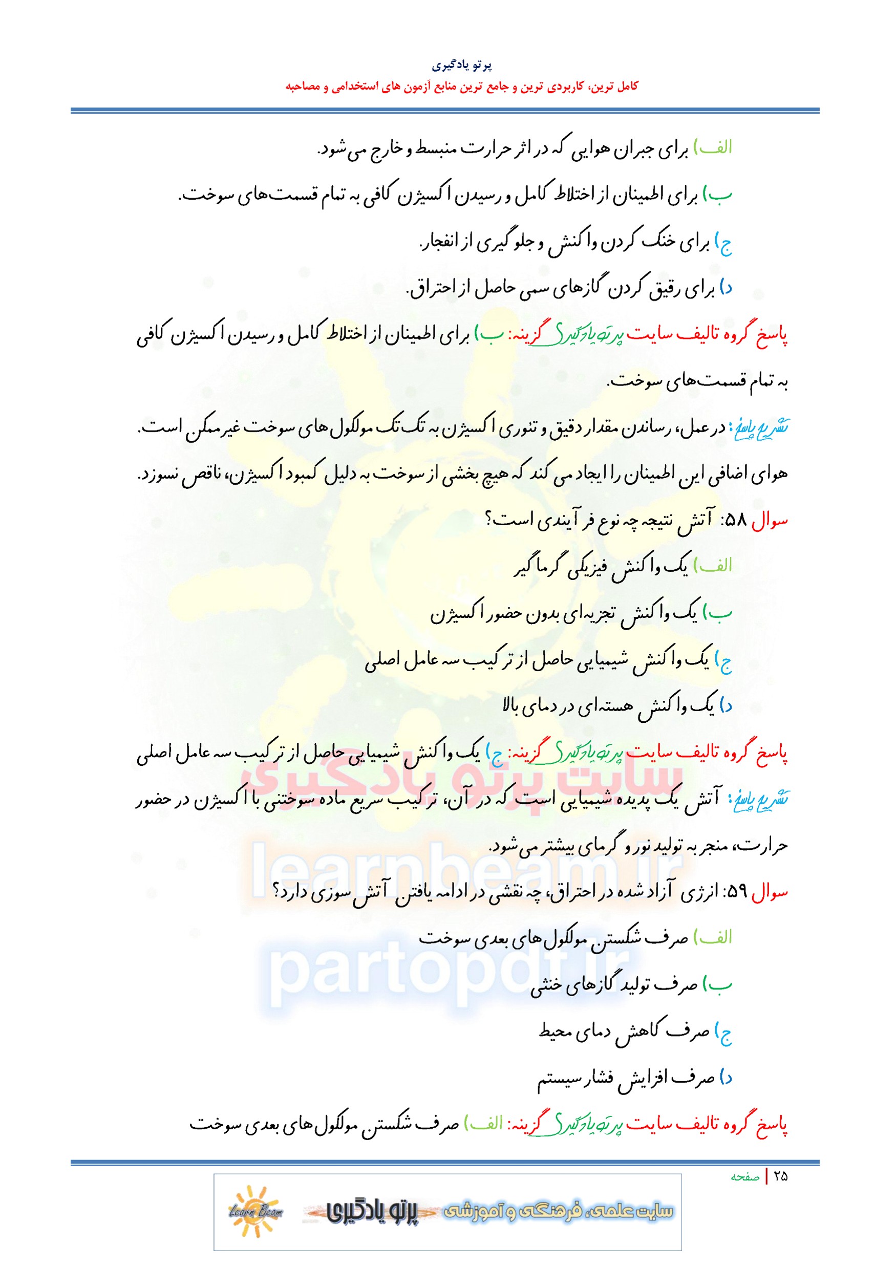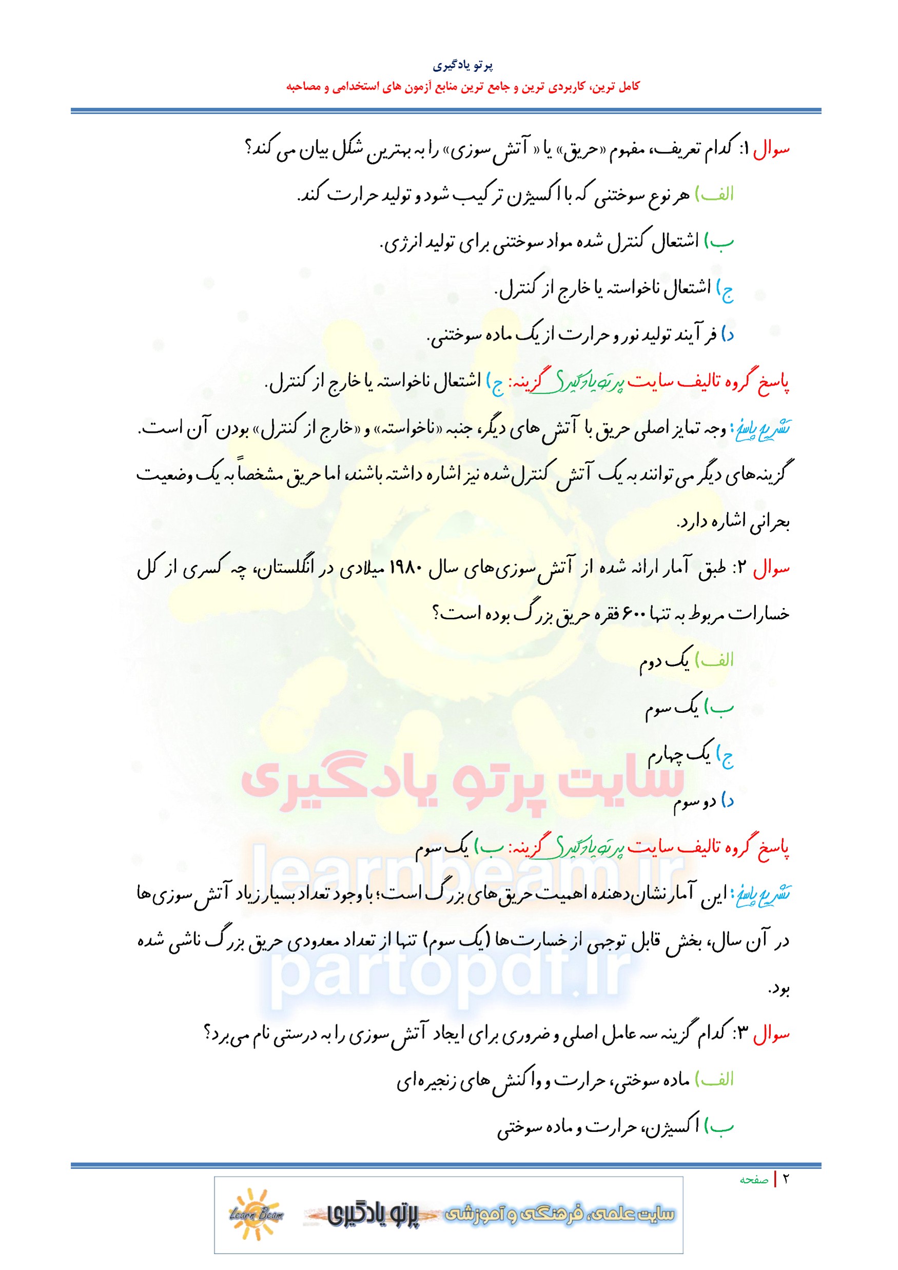مجموعه سوالات و تست مبانی حریق و آتش نشانی با پاسخ تشریحی