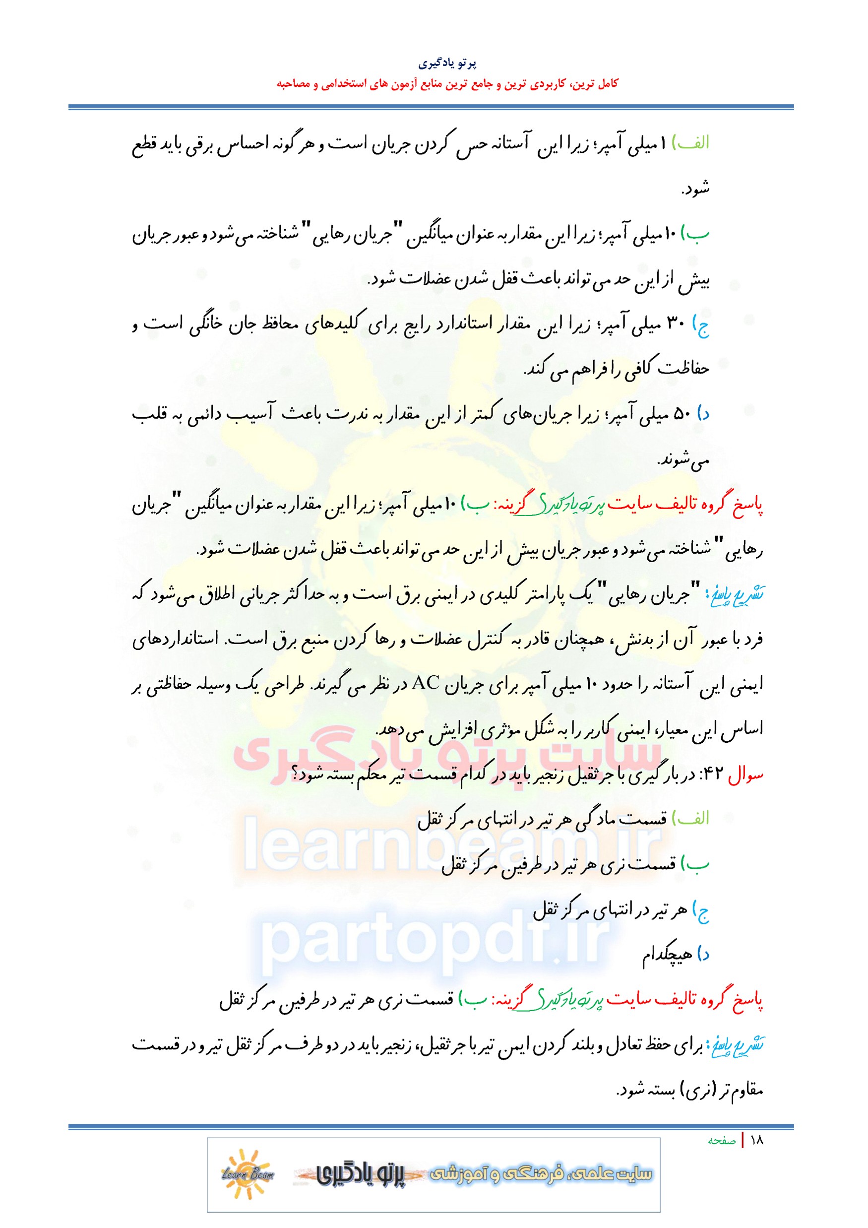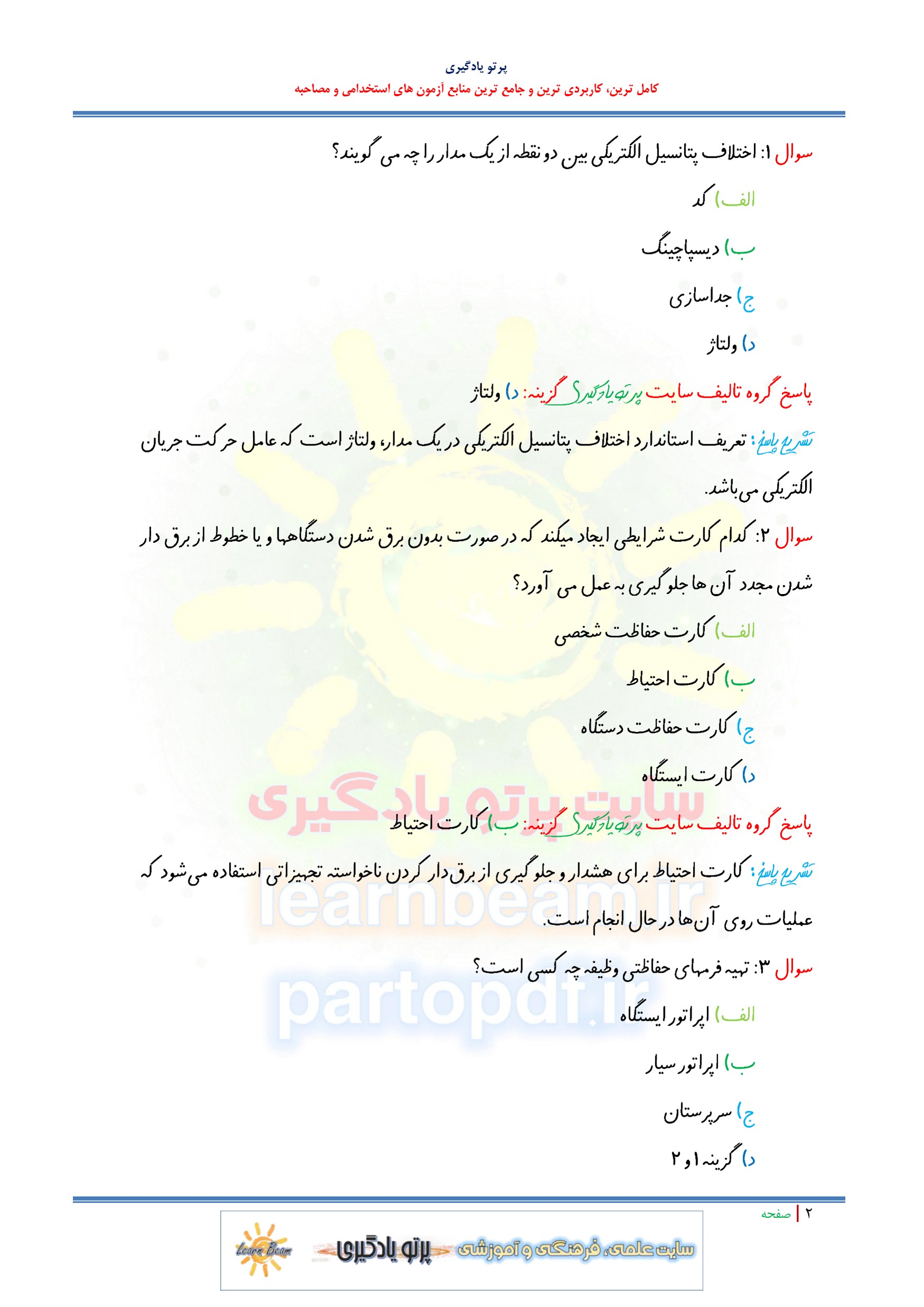 سوالات و تست ایمنی برق سوالات کتاب ایمنی برق شامل 64 سوال تستی در 28 صفحه با پاسخ تشریحی در قالب فایل pdf. بهترین منبع برای آزمون های استخدامی می باشد. مجموعه سوالات تستی ایمنی برق مطالب خوانده شده داوطلبین آزمون استخدامی را نظم بخشیده و منسجم می سازد. این مجموعه مرور سریع داوطلب را سبب می شود و آگاهی های وی را نظم بخشیده و یک آمادگی و شبیه سازی را برای جلسه آزمون به همراه دارد. مطالعه این منبع برای همه داوطلبین شرکت کننده در آزمون های استخدامی پیشنهاد می شود.