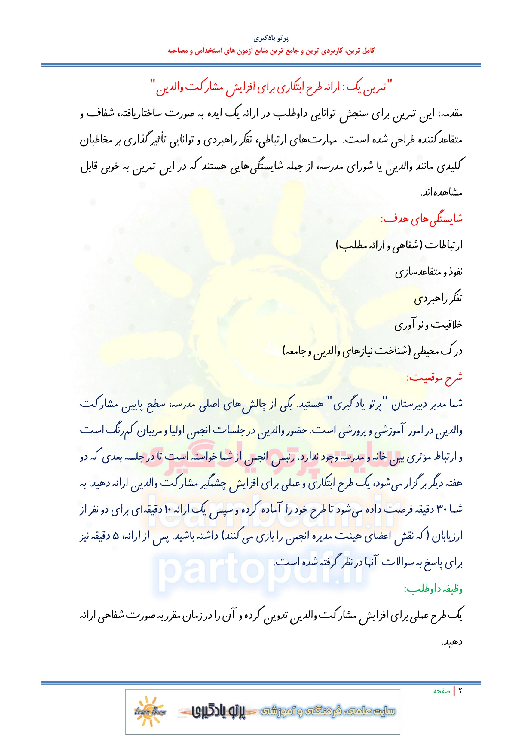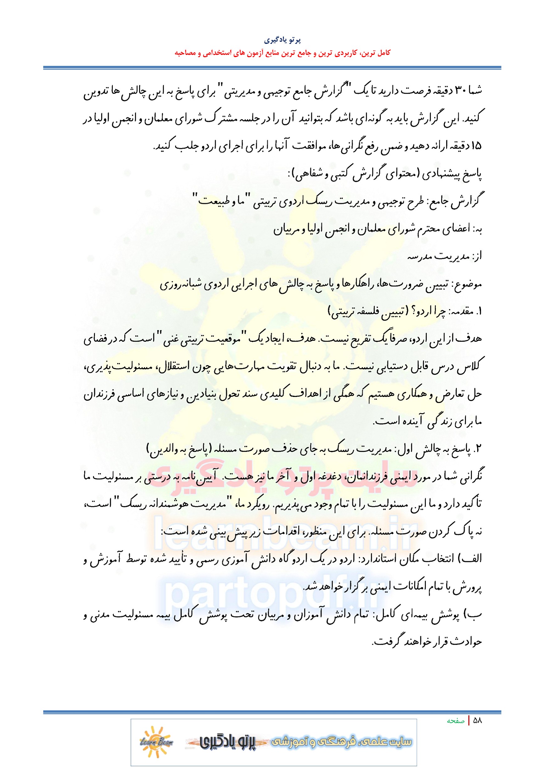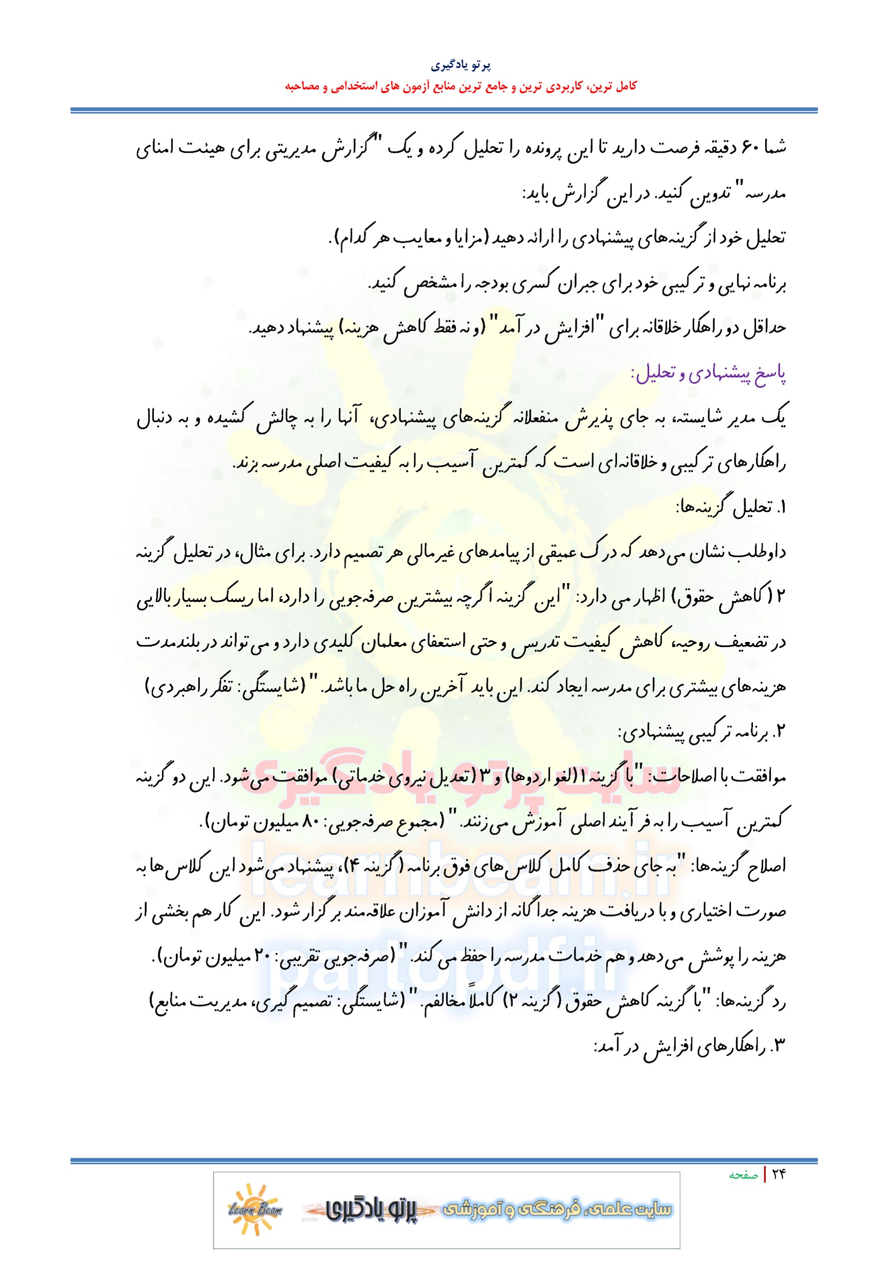 نمونه سوالات تمرین تحلیلی ویژه آزمون انتخاب و انتصاب مدیران مدارس