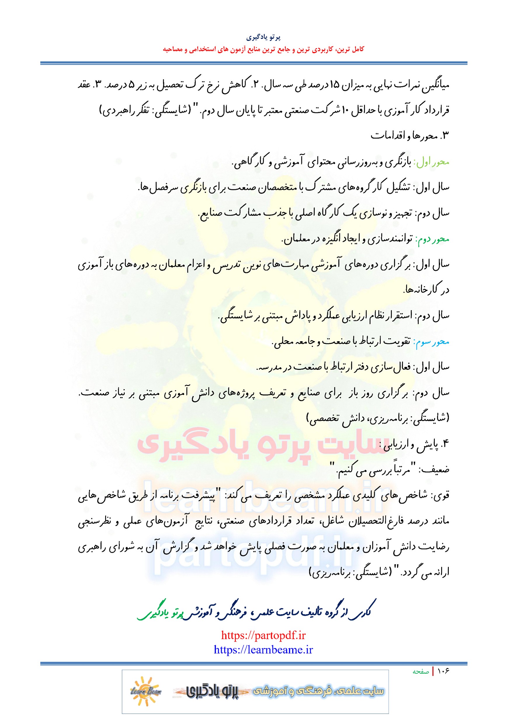 نمونه سوالات تمرین تحلیلی ویژه آزمون انتخاب و انتصاب مدیران مدارس، منبعی بسیار مهم و کاربردی برای معلمان و داوطلبین آزمون انتخاب مدیران است که به صورت ویژه طراحی شده تا تواناییهای تحلیلی، تصمیمگیری و مدیریتی آنها را به طور کامل ارتقا دهد. مرور دقیق و مکرر نمونه سوالات تمرین تحلیلی ویژه آزمون انتخاب و انتصاب مدیران مدارس به معلمان کمک میکند تا با چالشهای مدیریتی و مسائل آموزشی مطرح در آزمون آشنا شوند و مهارتهای لازم برای تحلیل دقیق موقعیتهای مختلف را کسب کنند. علاوه بر این، داوطلبین این آزمون با استفاده از نمونه سوالات تمرین تحلیلی ویژه آزمون انتخاب و انتصاب مدیران مدارس میتوانند نقاط ضعف خود را شناسایی کرده و با تمرین هدفمند، خود را برای موفقیت در رقابتی دشوار آماده سازند. نمونه سوالات تمرین تحلیلی ویژه آزمون انتخاب و انتصاب مدیران مدارس، شامل سوالاتی است که به صورت تخصصی بر مهارتهای تفکر تحلیلی و مدیریتی تمرکز دارند و با پاسخنامههای تشریحی همراه هستند تا فرآیند یادگیری را تسهیل کنند. بنابراین، استفاده از این نمونه سوالات برای معلمان و داوطلبین آزمون انتخاب مدیران مدارس، گامی موثر و ضروری در جهت افزایش شانس قبولی و رسیدن به جایگاه مدیریتی مطلوب است.
