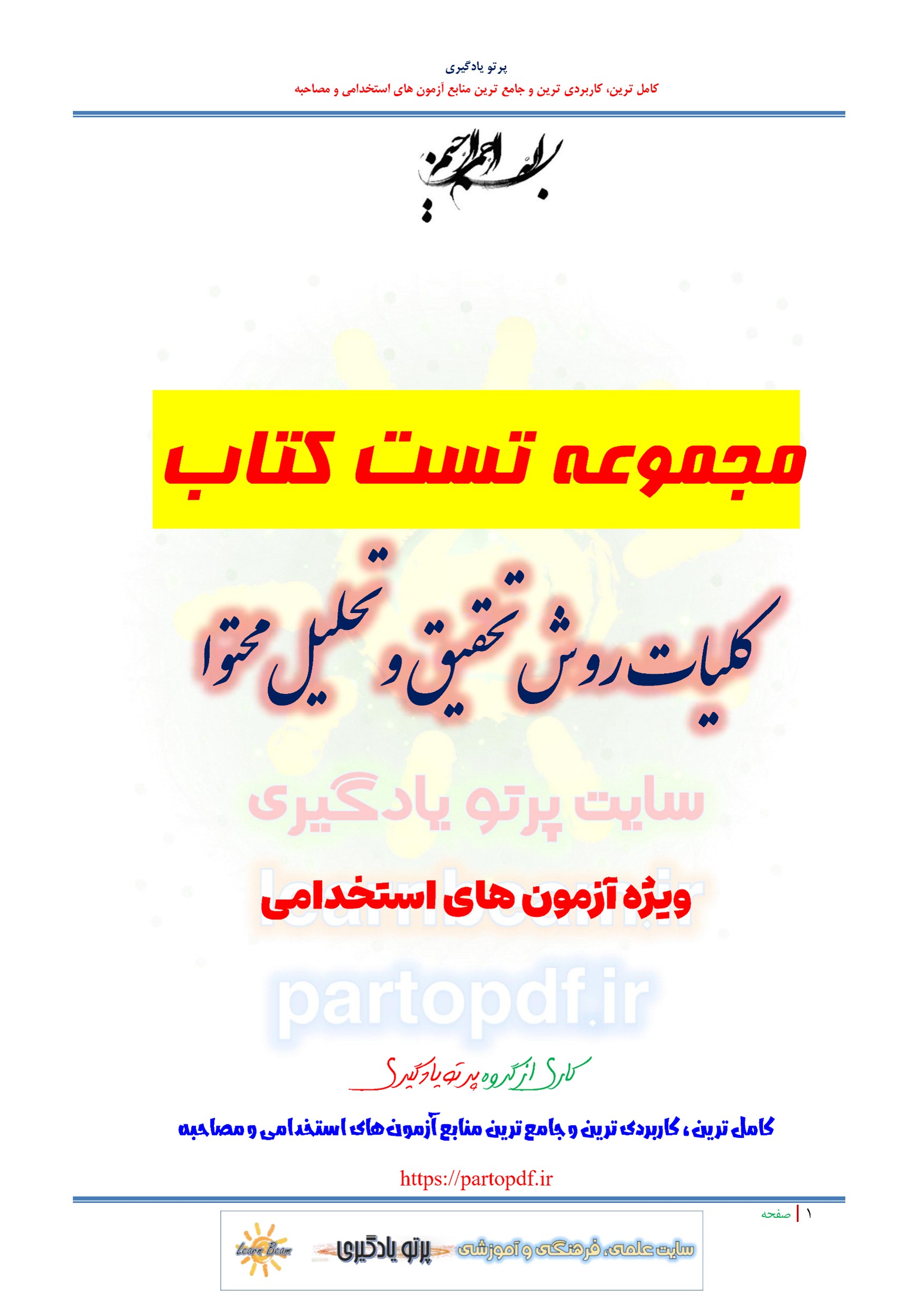 سوالات و تست کلیات روش تحقیق و تحلیل محتوا سوالات کلیات روش تحقیق و تحلیل محتوا شامل 229 سوال تستی در 107 صفحه با پاسخ تشریحی در قالب فایل pdf. شامل 150 سوال تستی کلیات روش تحقیق و 79 سوال تحلیل محتوا. بهترین منبع برای آزمون های استخدامی می باشد. مجموعه سوالات تستی کلیات روش تحقیق و تحلیل محتوا مطالب خوانده شده داوطلبین آزمون استخدامی را نظم بخشیده و منسجم می سازد. این مجموعه مرور سریع داوطلب را سبب می شود و آگاهی های وی را نظم بخشیده و یک آمادگی و شبیه سازی را برای جلسه آزمون به همراه دارد. مطالعه این منبع برای همه داوطلبین شرکت کننده در آزمون های استخدامی پیشنهاد می شود.