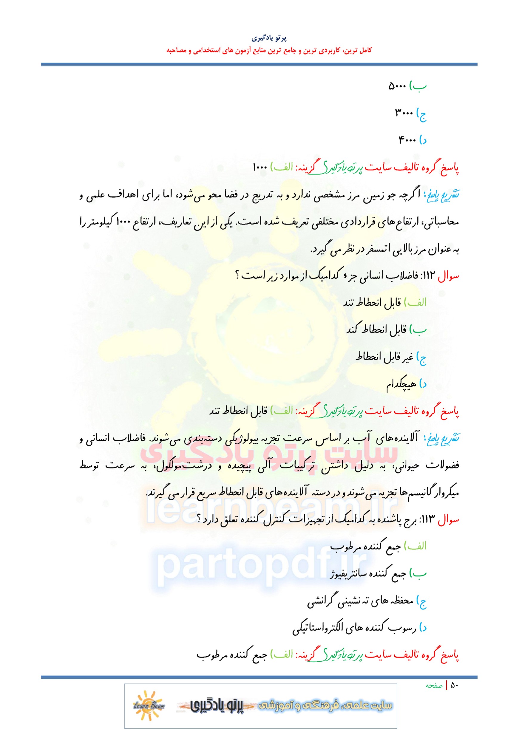سوالات و تست مهندسی محیط زیست سوالات تستی مهندسی محیط زیست شامل 140 سوال تستی در 62 صفحه با پاسخ تشریحی در قالب فایل pdf. مطابق با سرفصل های دفترچه آزمون های استخدامی مجموعه تستی مهندسی محیط زیست بهترین منبع برای آمادگی آزمون های استخدامی می باشد. مجموعه سوالات و تست مهندسی محیط زیست مطالب خوانده شده داوطلبین آزمون استخدامی را نظم بخشیده و منسجم می سازد. مجموعه سوالات تستی مهندسی محیط زیست ویژه آزمون های استخدامی مرور سریع داوطلب را سبب می شود و آگاهی های وی را نظم بخشیده و یک آمادگی و شبیه سازی را برای جلسه آزمون به همراه دارد. مطالعه پک مجموعه سوالات و تست مهندسی محیط زیست برای داوطلبین آزمون های استخدامی پیشنهاد می شود.