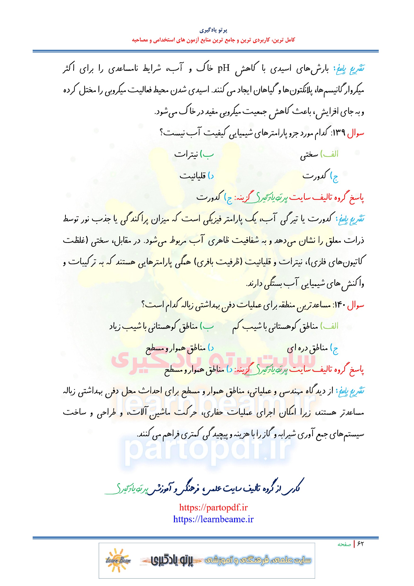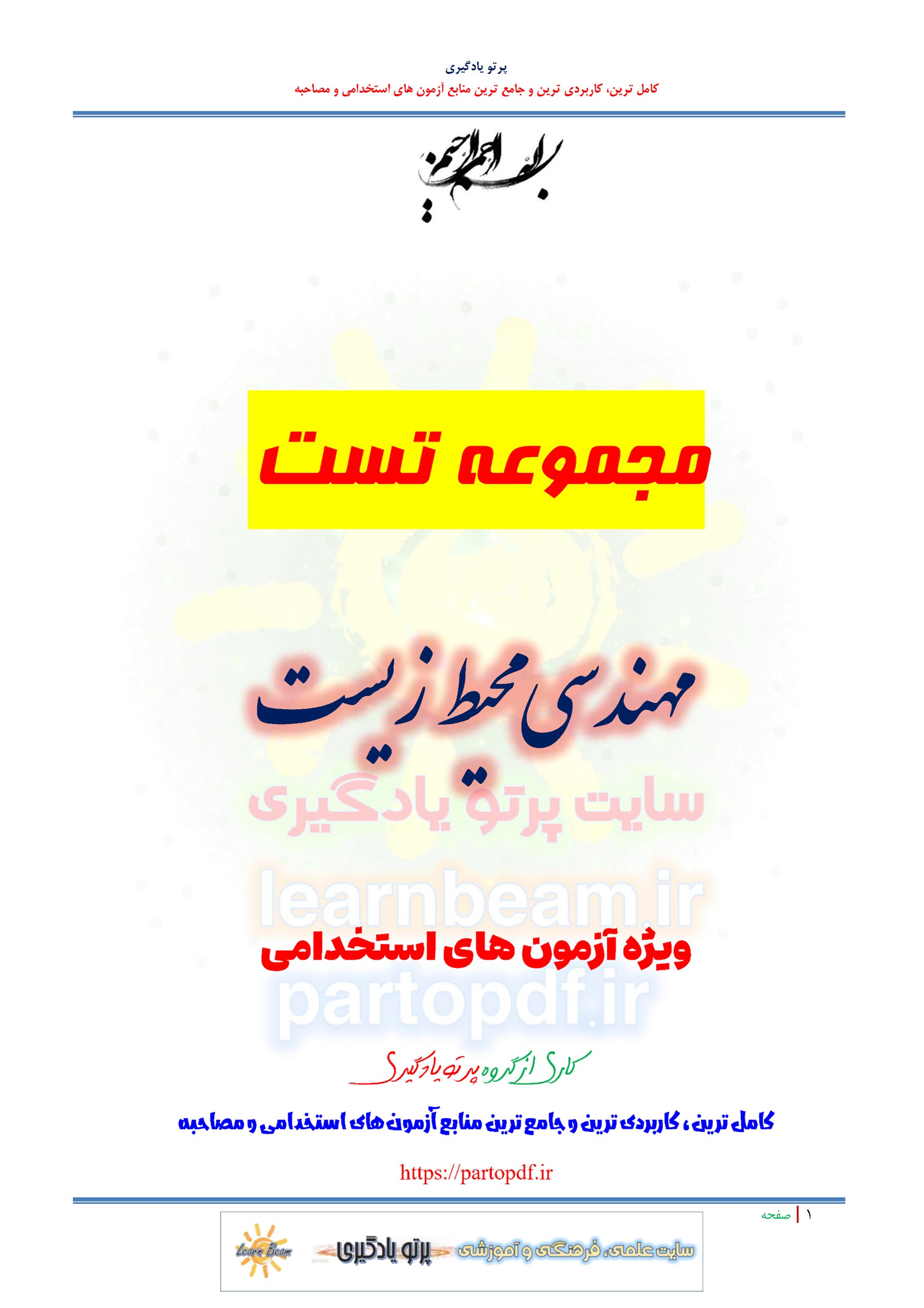 سوالات و تست مهندسی محیط زیست سوالات مهندسی محیط زیست شامل 140 سوال تستی در 62 صفحه با پاسخ تشریحی در قالب فایل pdf. بهترین منبع برای آزمون های استخدامی می باشد. مجموعه سوالات تستی مهندسی محیط زیست مطالب خوانده شده داوطلبین آزمون استخدامی را نظم بخشیده و منسجم می سازد. این مجموعه مرور سریع داوطلب را سبب می شود و آگاهی های وی را نظم بخشیده و یک آمادگی و شبیه سازی را برای جلسه آزمون به همراه دارد. مطالعه این منبع برای همه داوطلبین شرکت کننده در آزمون های استخدامی پیشنهاد می شود.