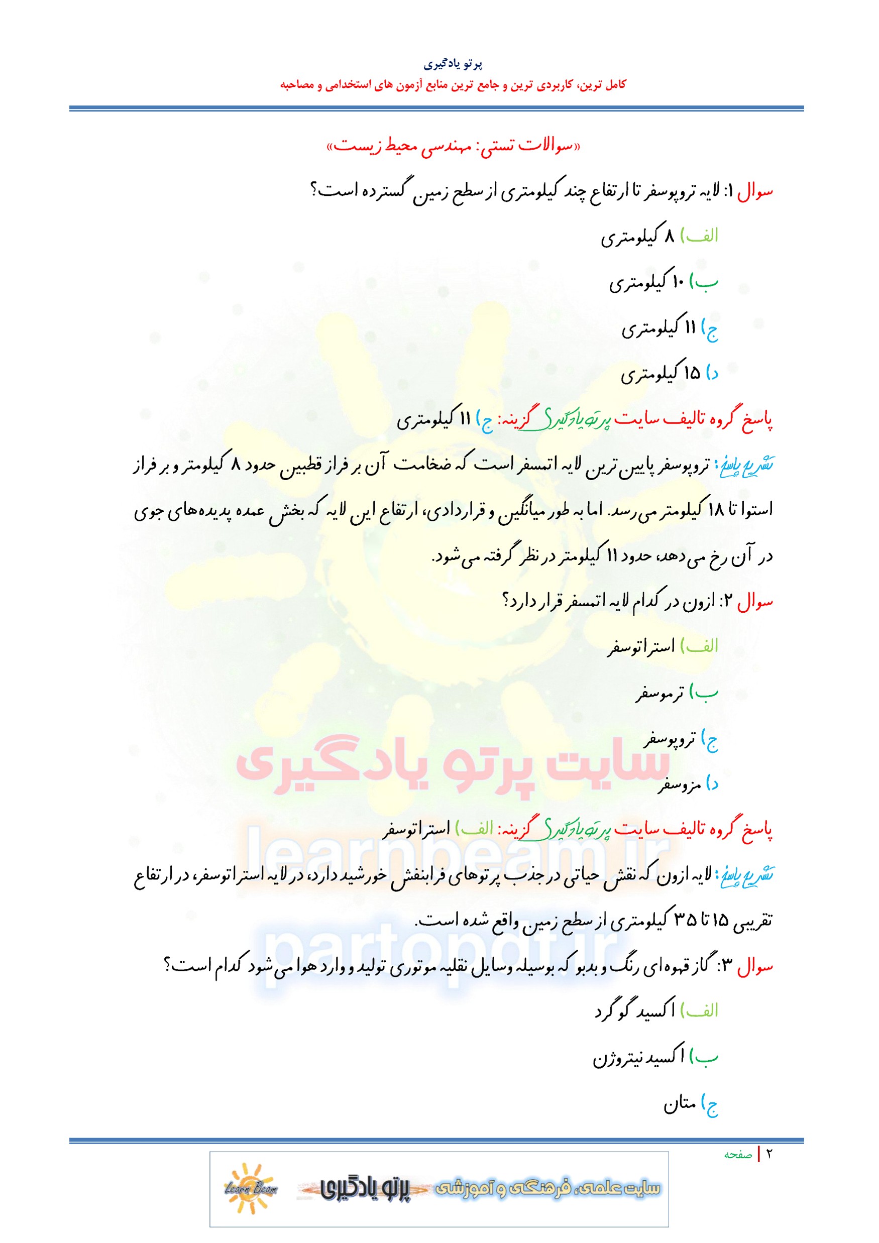 مجموعه سوالات و تست مهندسی محیط زیست با پاسخ تشریحی