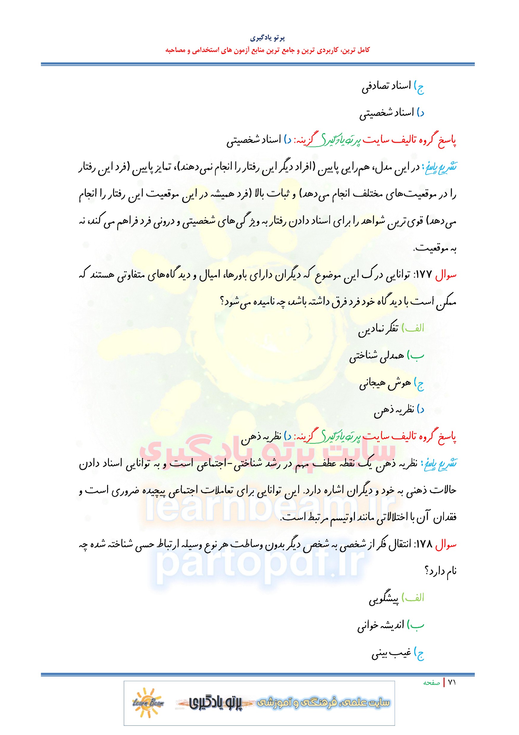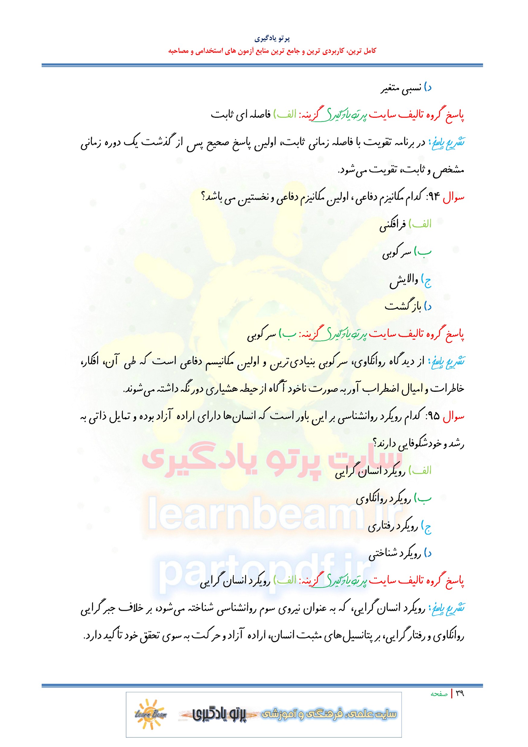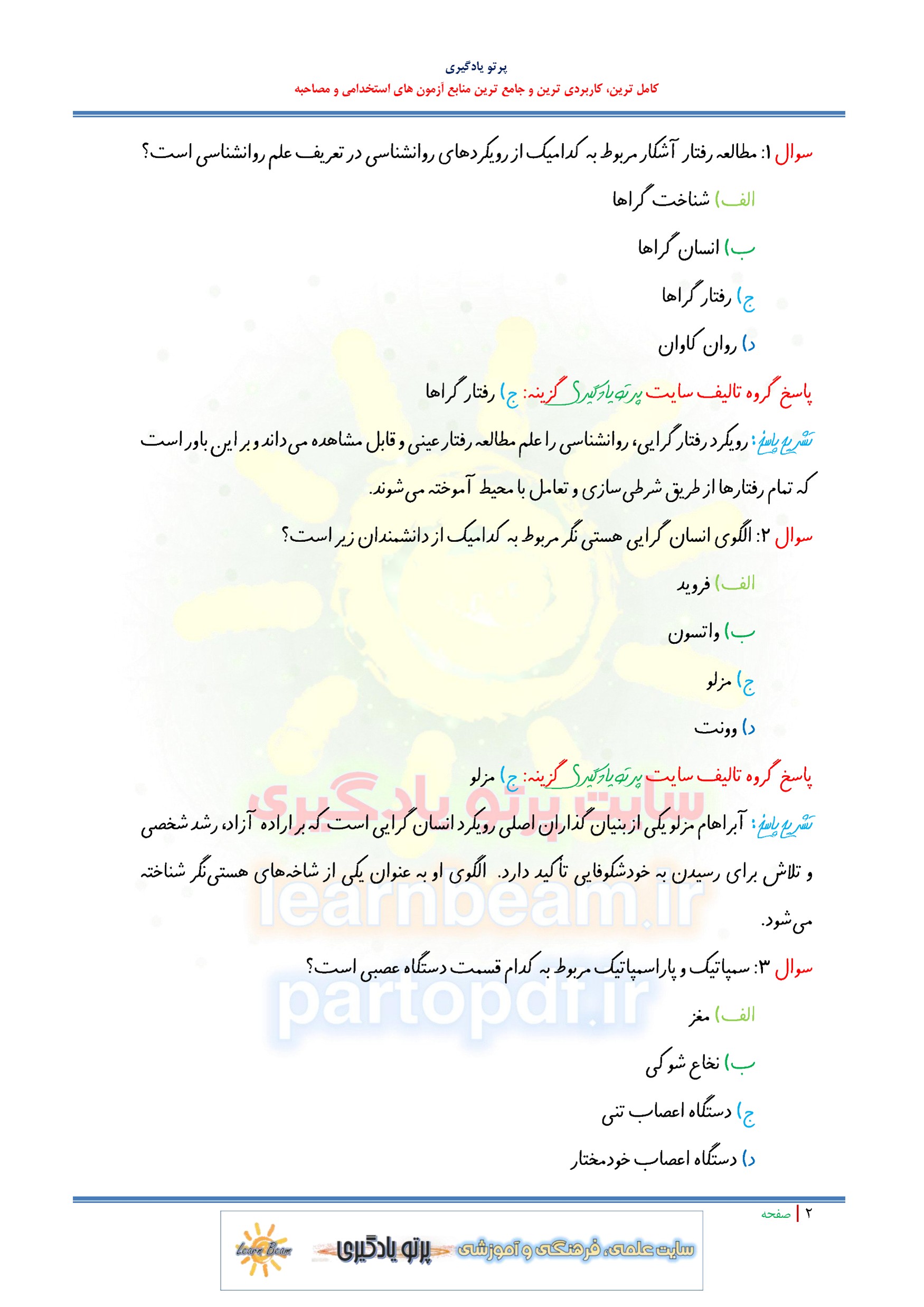 مجموعه سوالات و تست کتاب روانشناسی عمومی با پاسخ تشریحی
