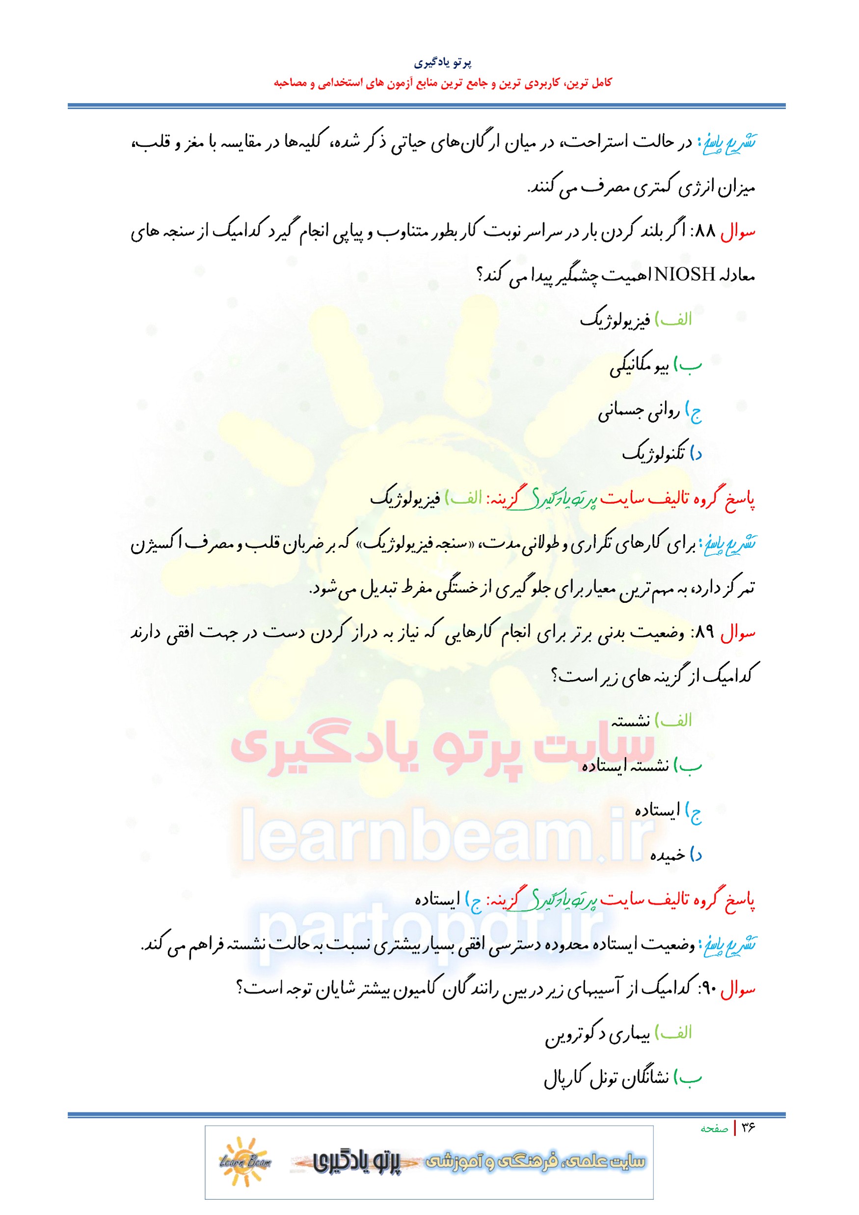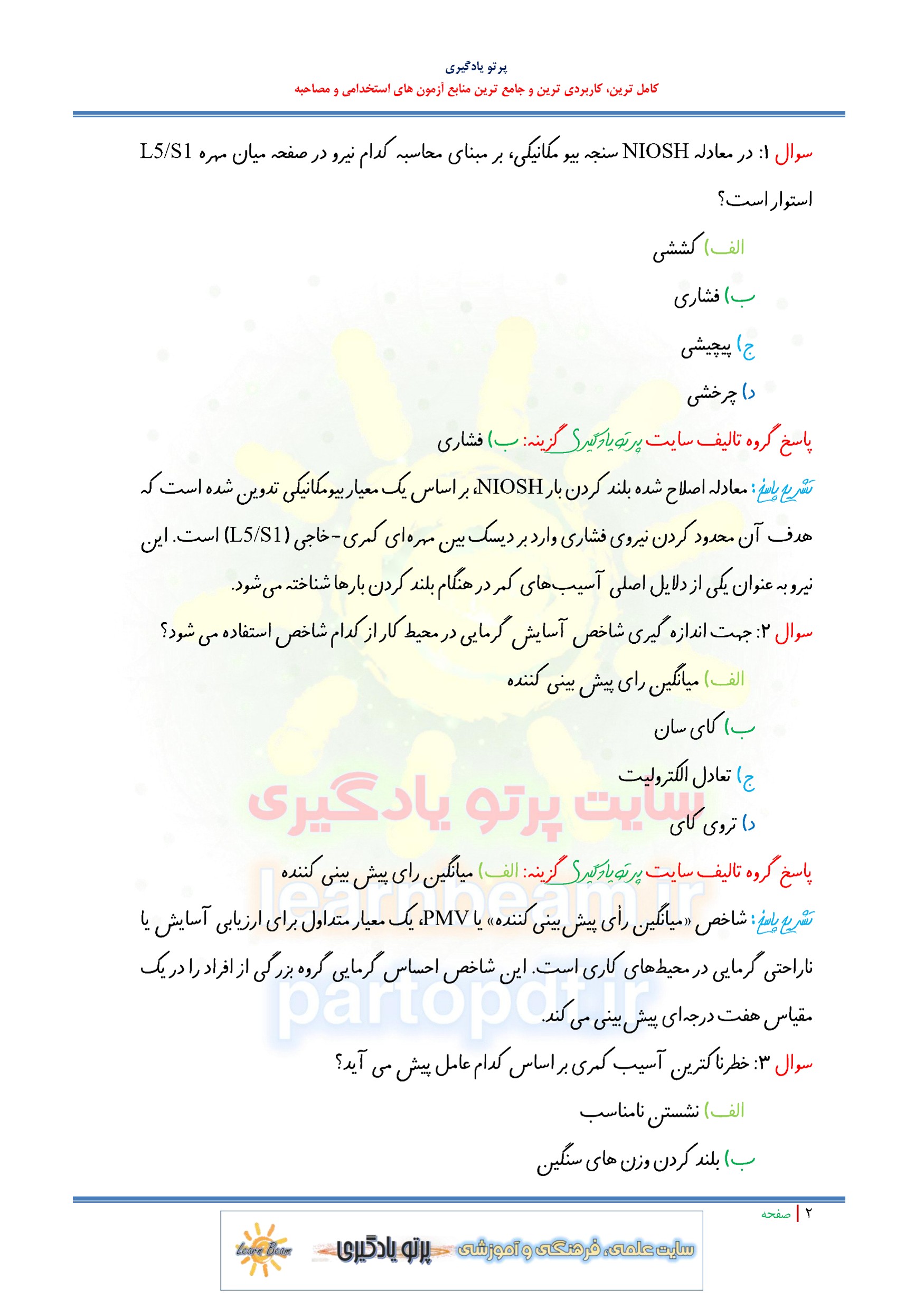 مجموعه سوالات و تست کتاب مهندسی فاکتور های انسانی با پاسخ تشریحی