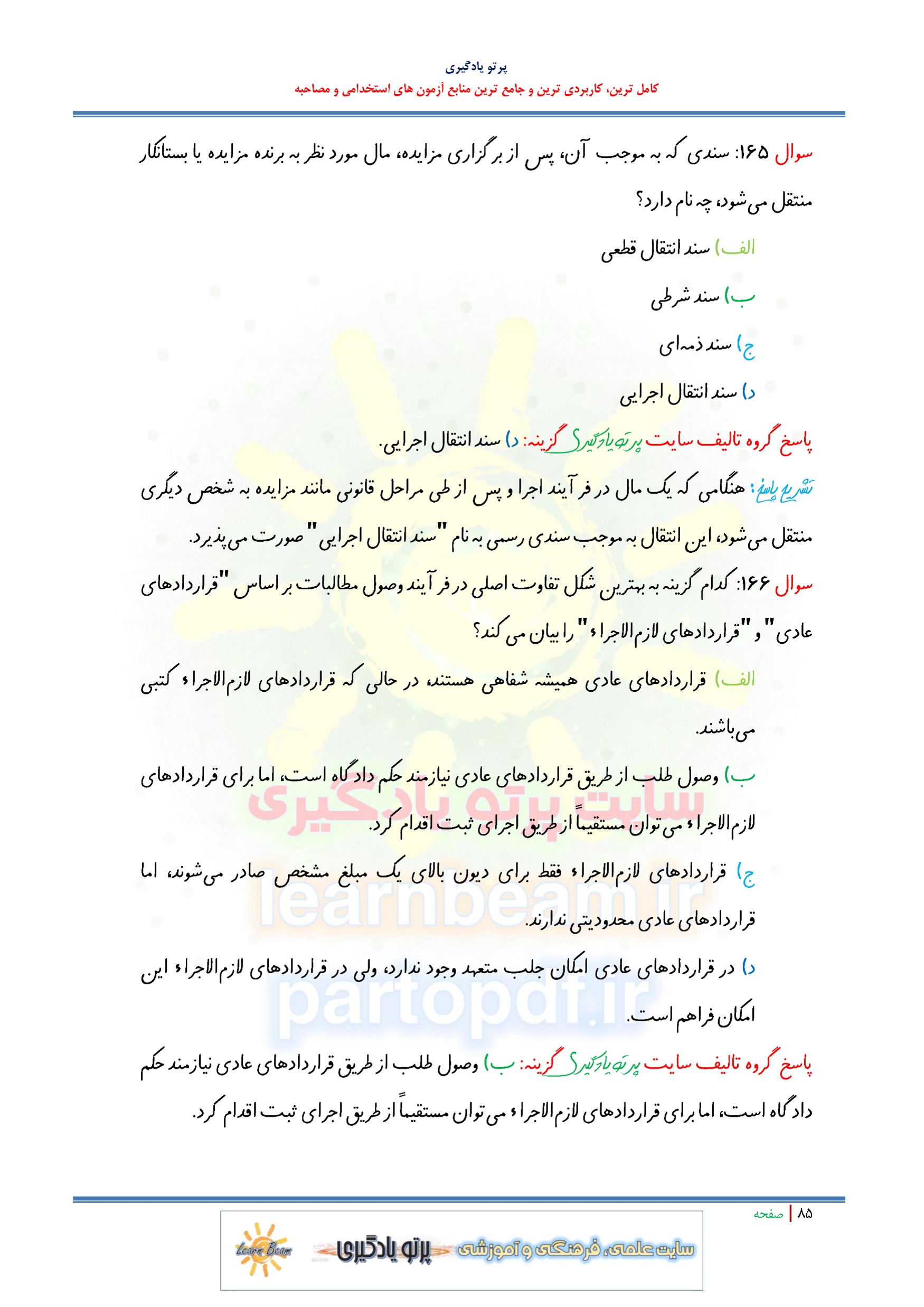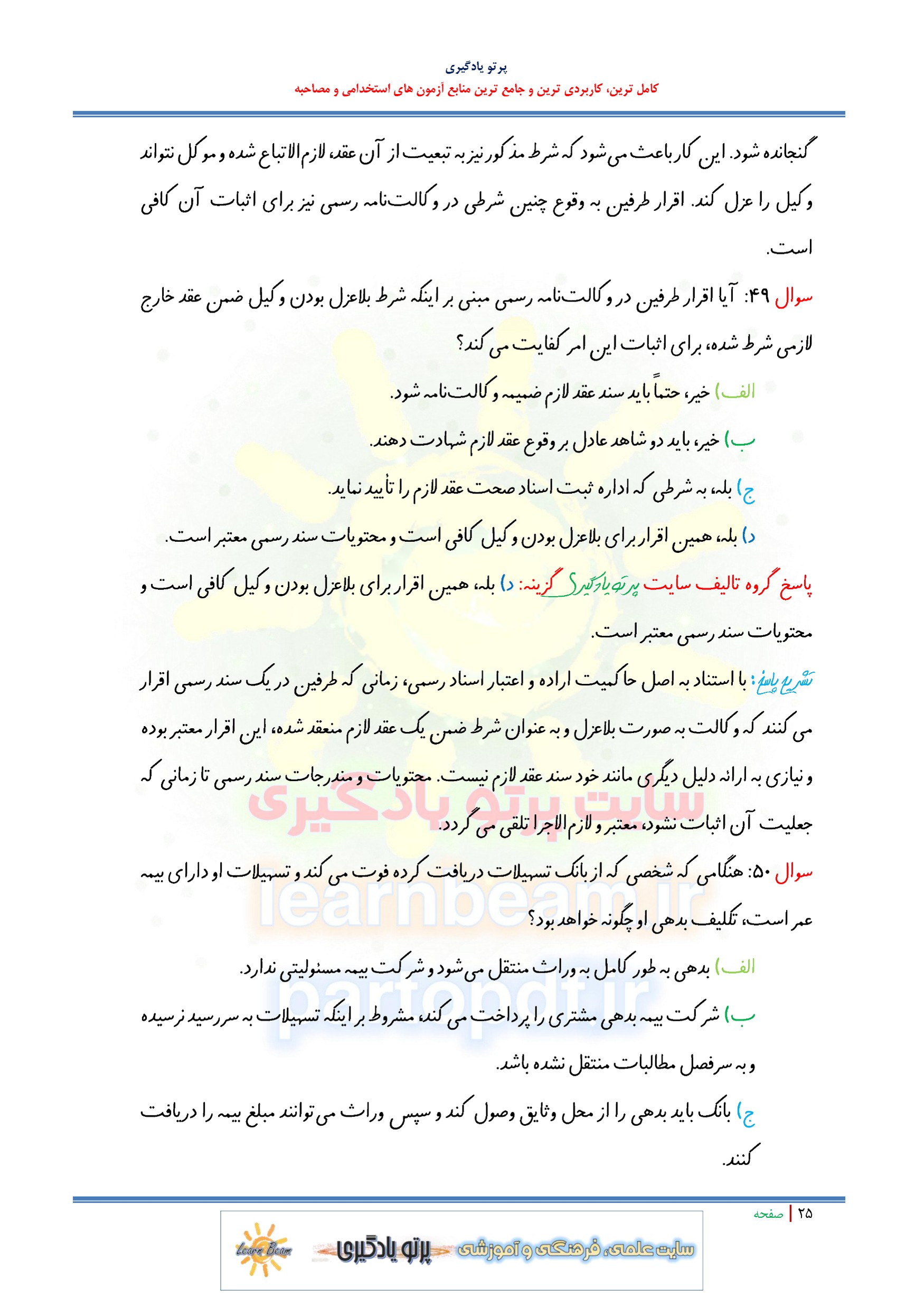 مجموعه سوالات و تست حقوق بانکی با پاسخ تشریحی