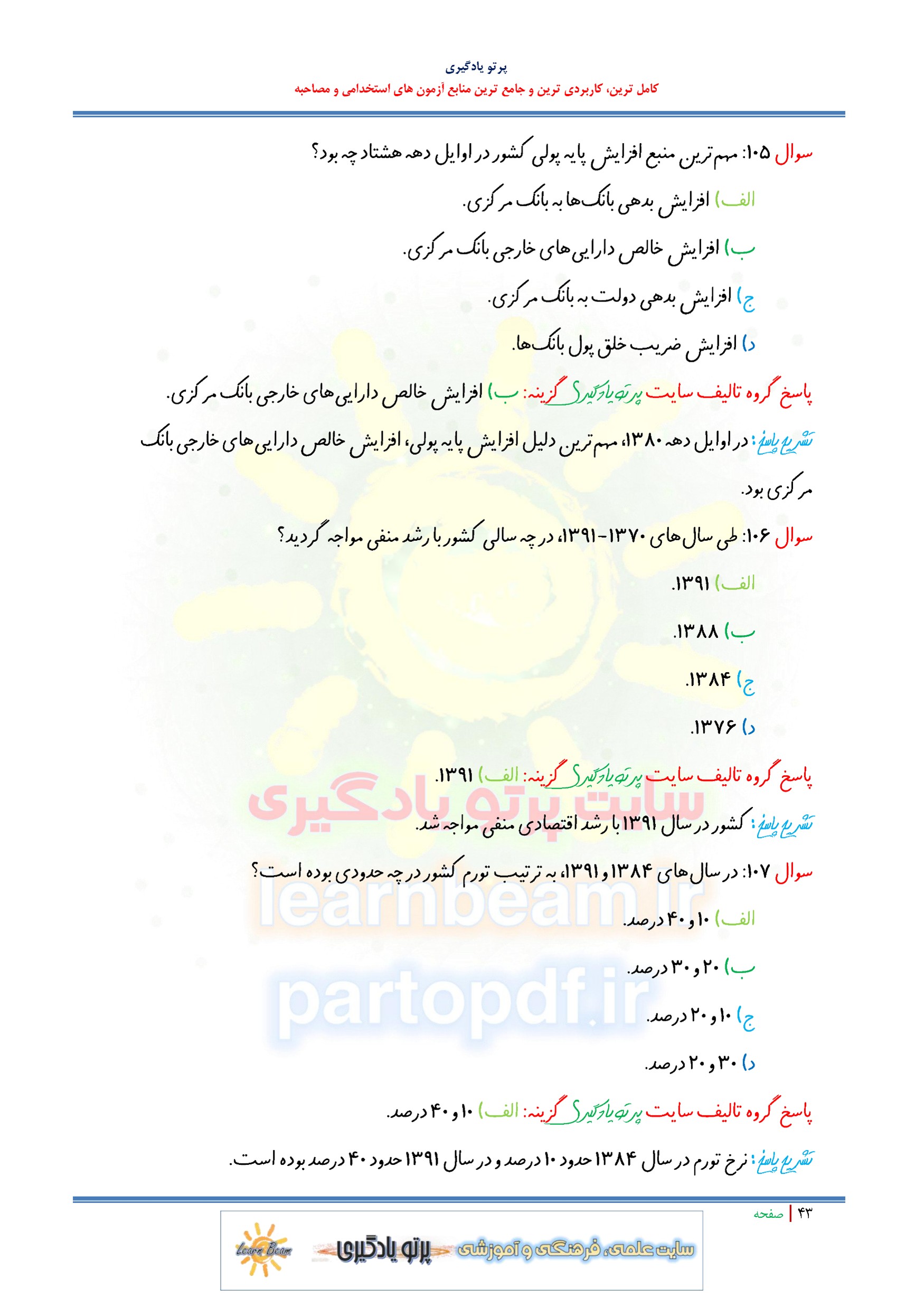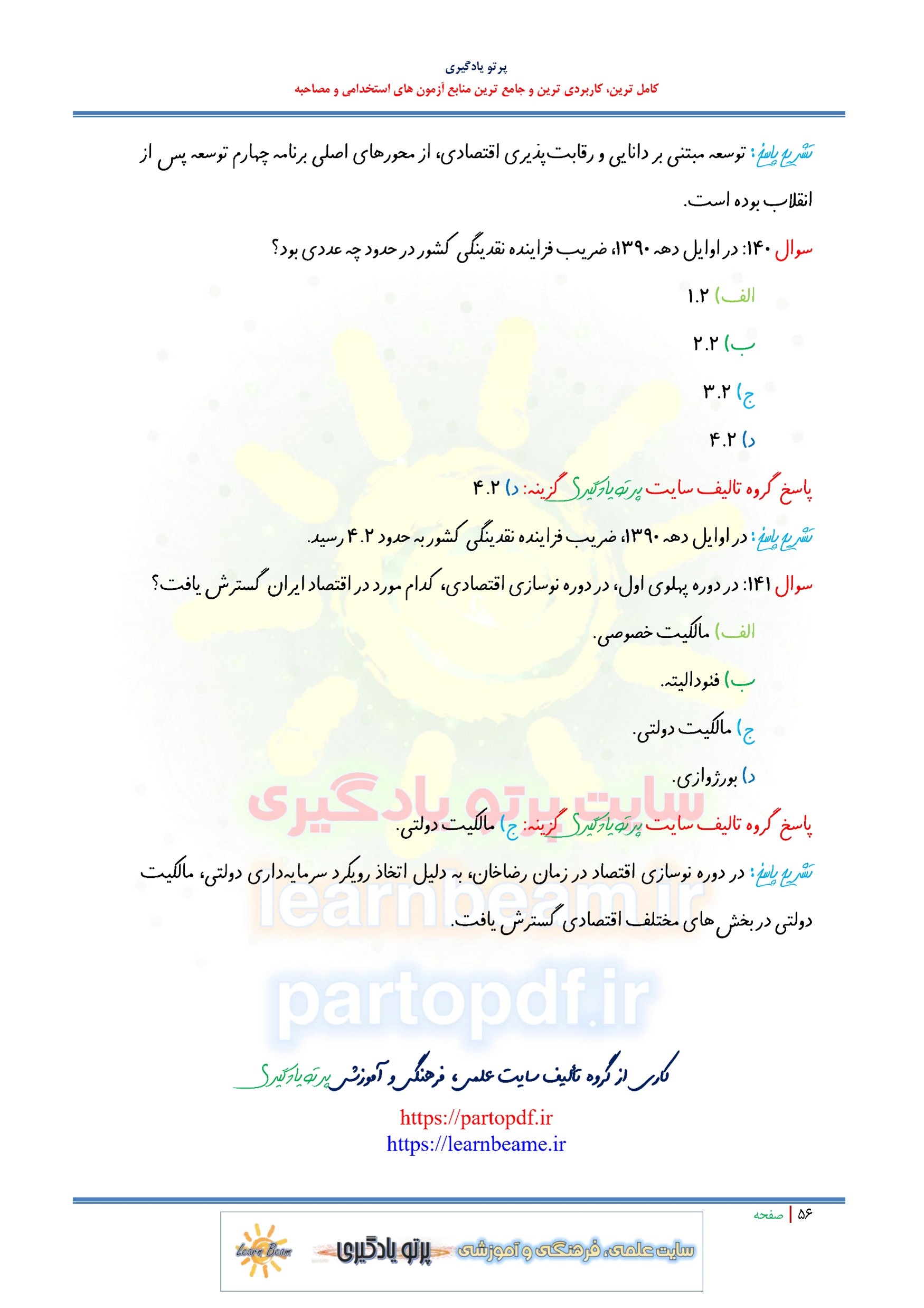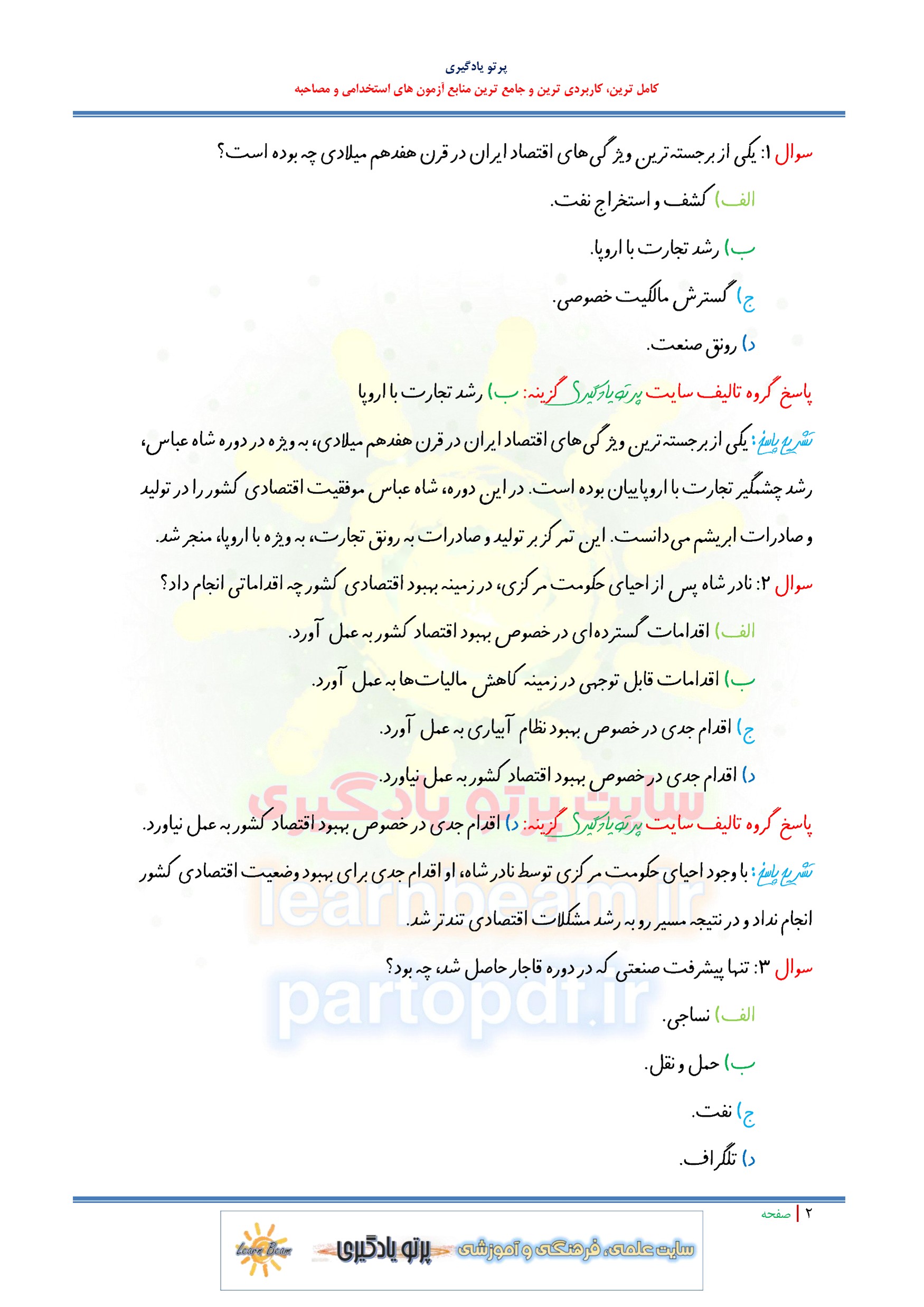 مجموعه سوالات و تست اقتصاد ایران با پاسخ تشریحی