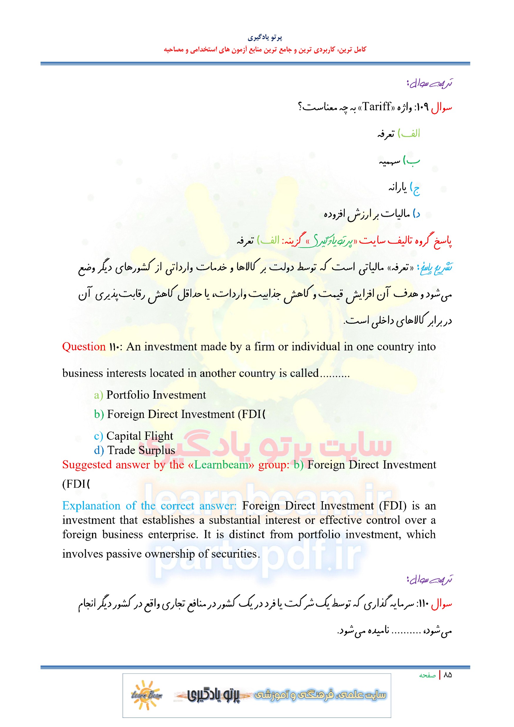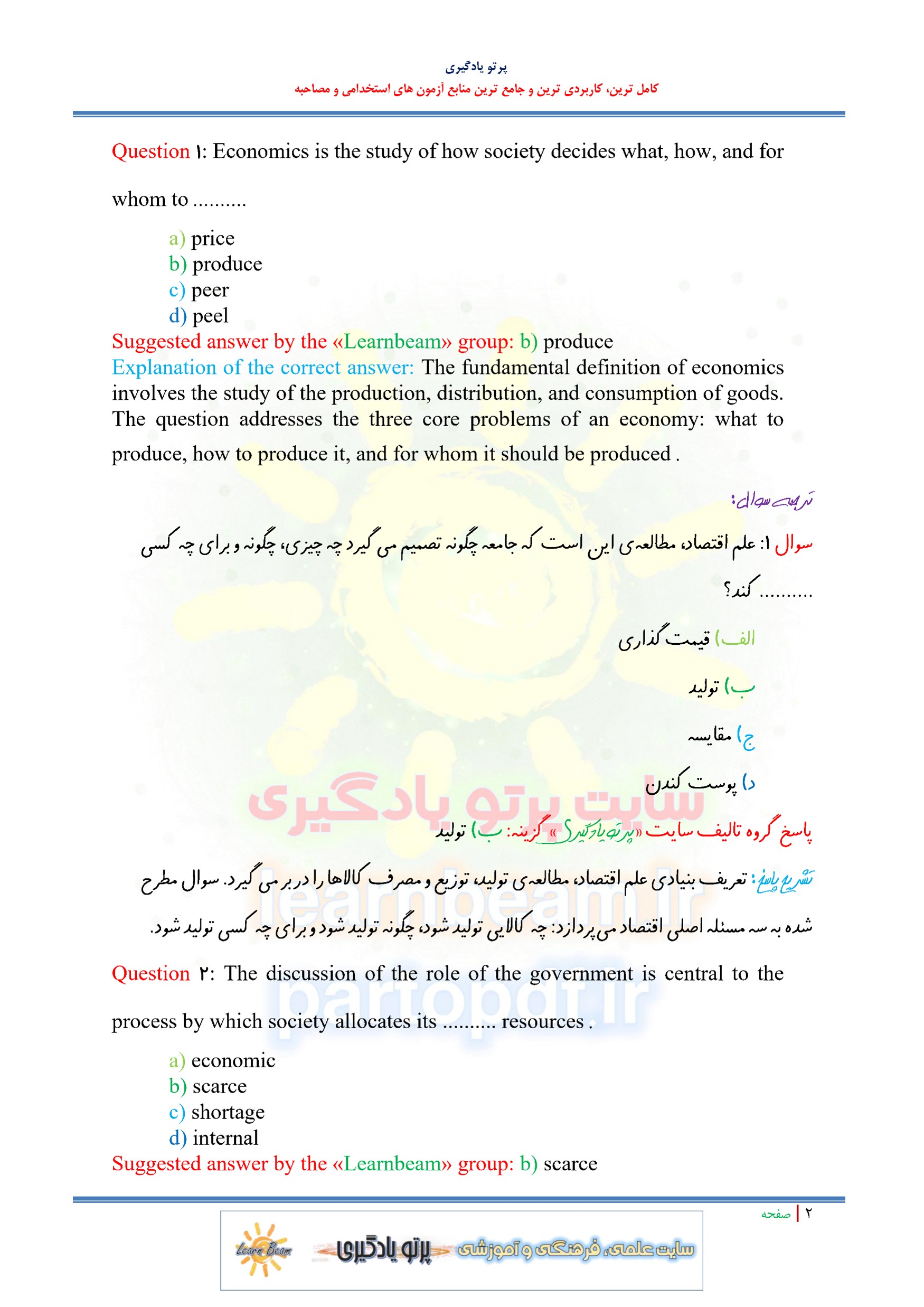 به همراه ترجمه سوال به سوال به زبان فارسی