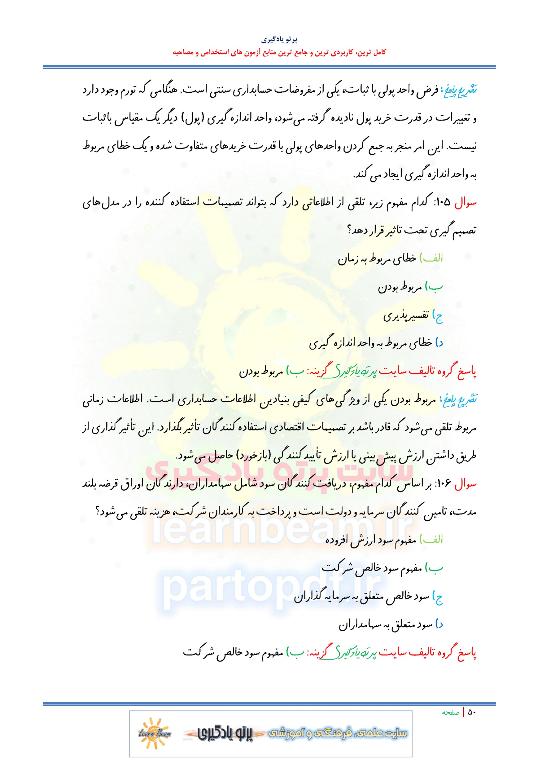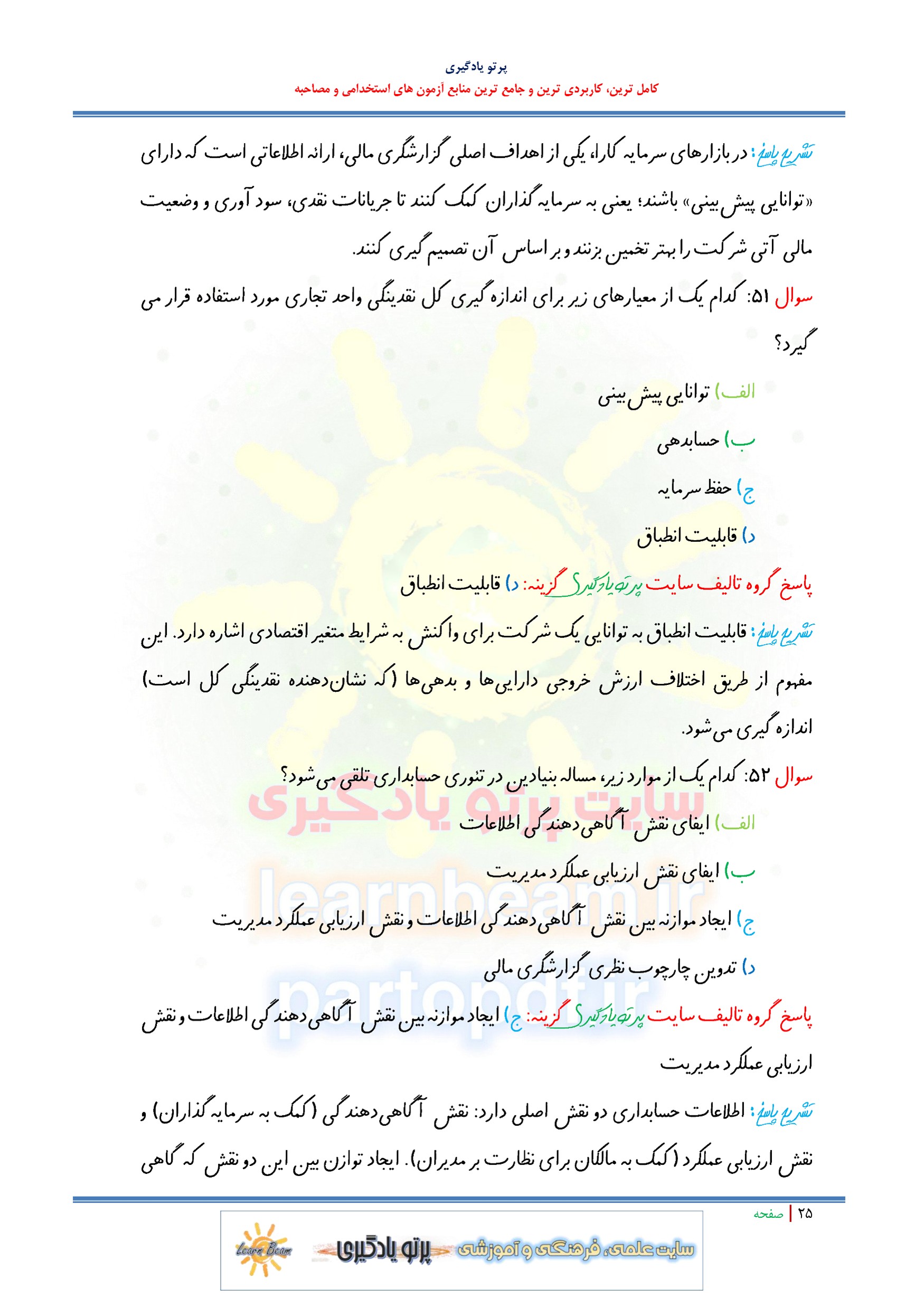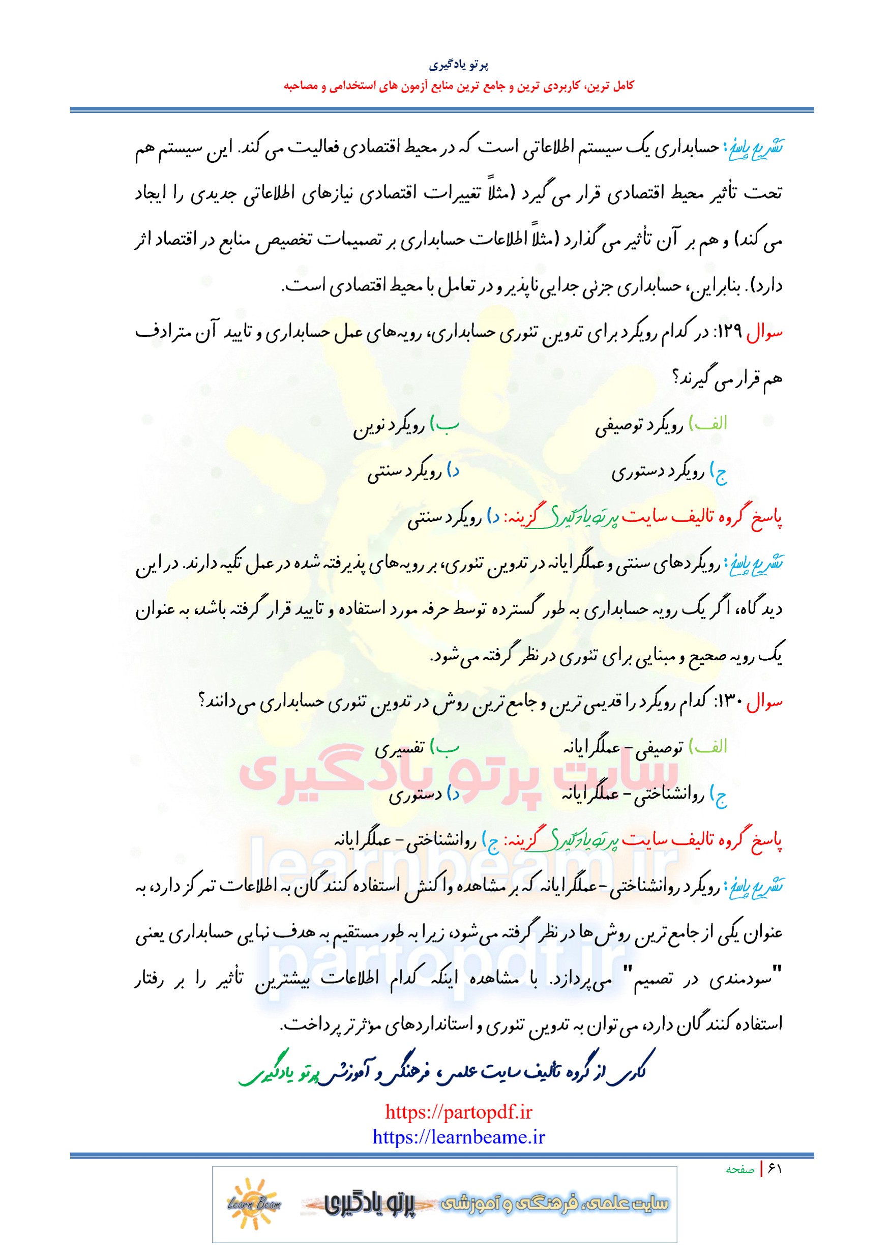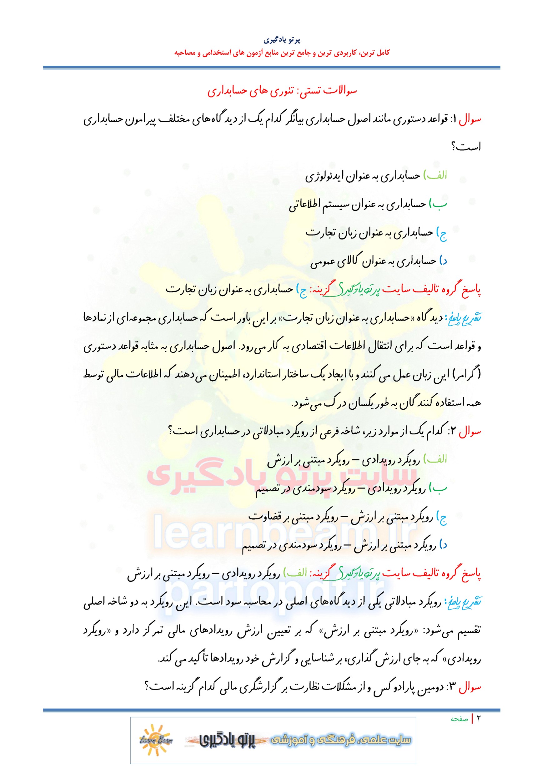 مجموعه سوالات و تست کتاب تئوری های حسابداری با پاسخ تشریحی