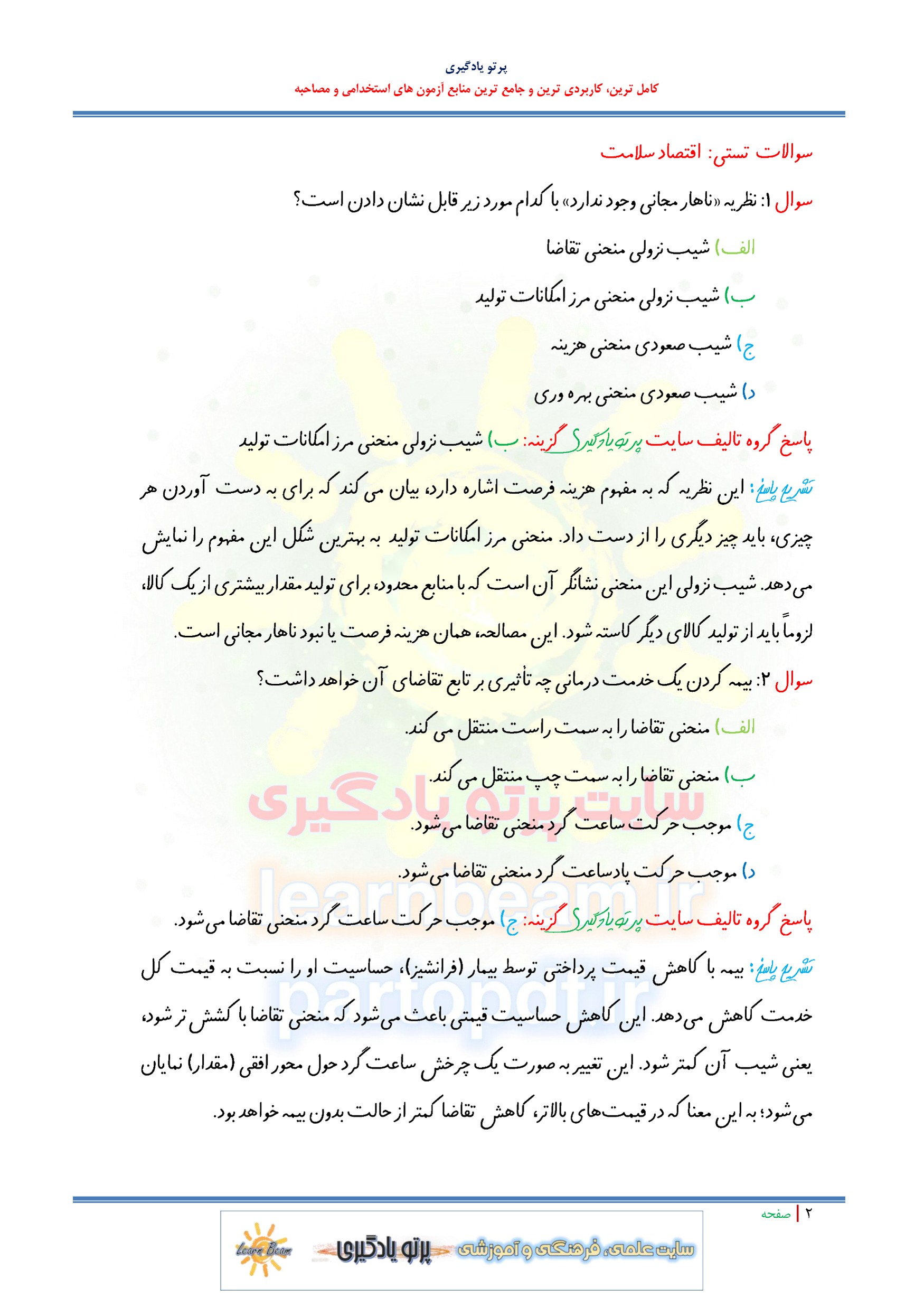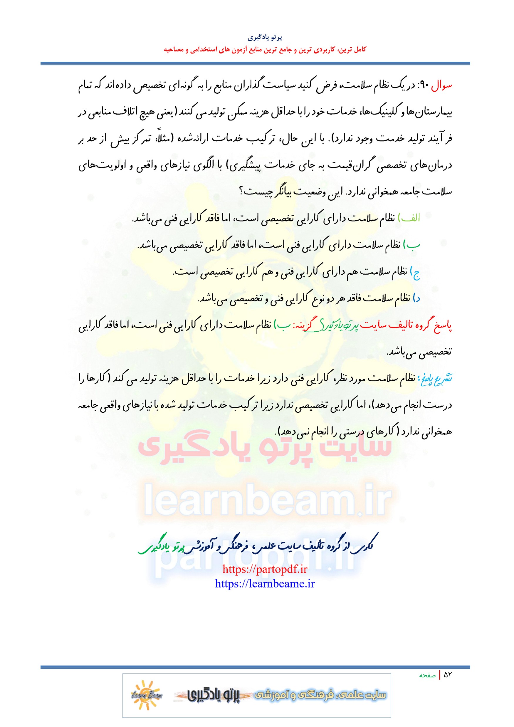 مجموعه سوالات و تست کتاب اقتصاد سلامت با پاسخ تشریحی