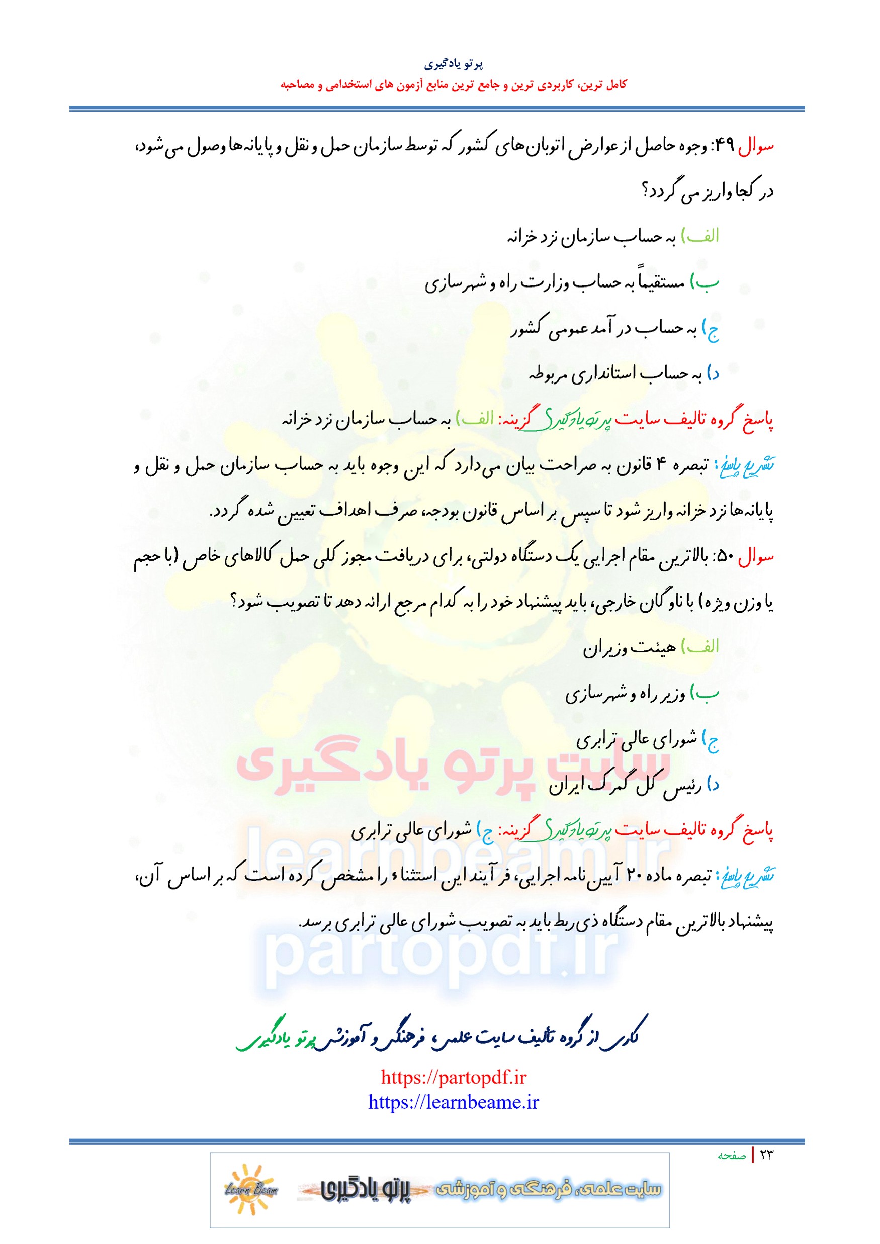 سایر منابع آزمون استخدامی تاسیس و فعالیت حمل و نقل بین الملی کالا