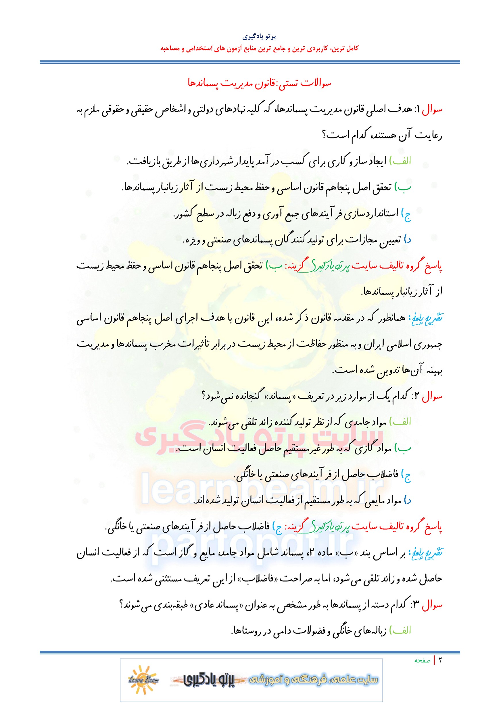 مجموعه سوالات و تست قانون مدیریت پسماند ها با پاسخ تشریحی