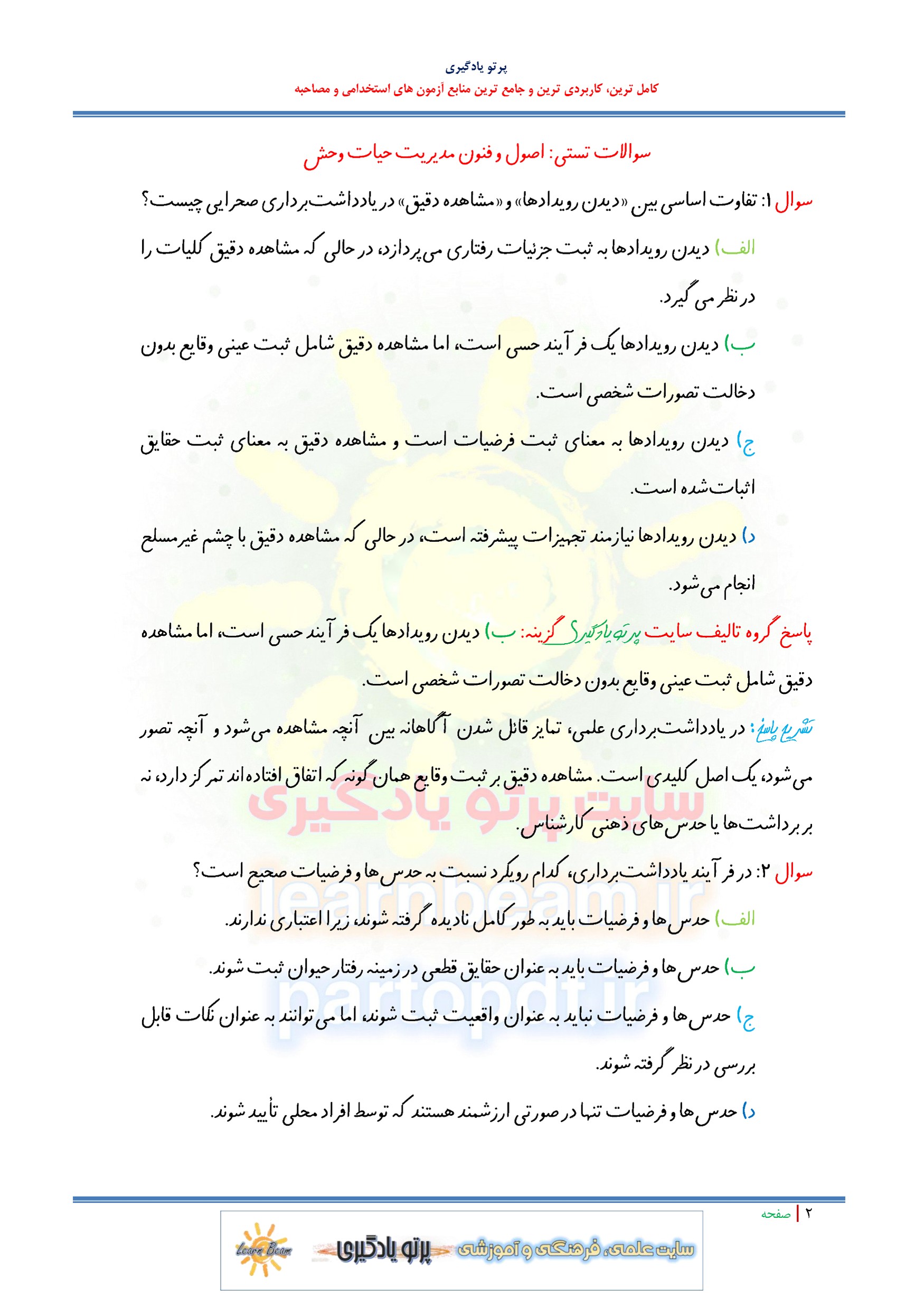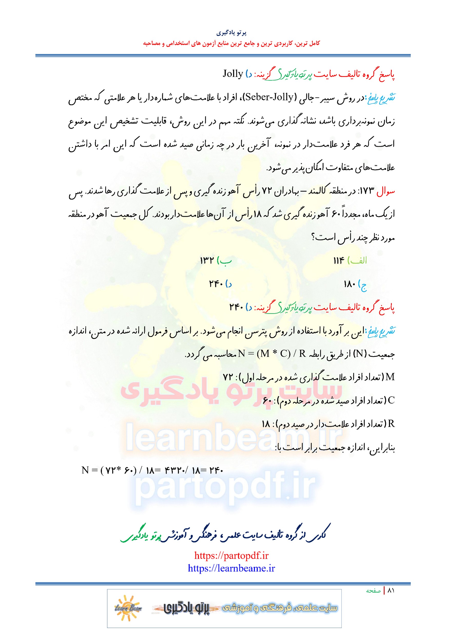 سوالات و تست اصول و فنون مدیریت حیات وحش سوالات تستی اصول و فنون مدیریت حیات وحش شامل 173 سوال تستی در 81 صفحه با پاسخ تشریحی در قالب فایل pdf. مطابق با سرفصل های دفترچه آزمون های استخدامی مجموعه تستی اصول و فنون مدیریت حیات وحش بهترین منبع برای آمادگی آزمون های استخدامی می باشد. مجموعه سوالات و تست اصول و فنون مدیریت حیات وحش مطالب خوانده شده داوطلبین آزمون استخدامی را نظم بخشیده و منسجم می سازد. مجموعه سوالات تستی اصول و فنون مدیریت حیات وحش ویژه آزمون های استخدامی مرور سریع داوطلب را سبب می شود و آگاهی های وی را نظم بخشیده و یک آمادگی و شبیه سازی را برای جلسه آزمون به همراه دارد. مطالعه پک مجموعه سوالات و تست اصول و فنون مدیریت حیات وحش برای داوطلبین آزمون های استخدامی پیشنهاد می شود.