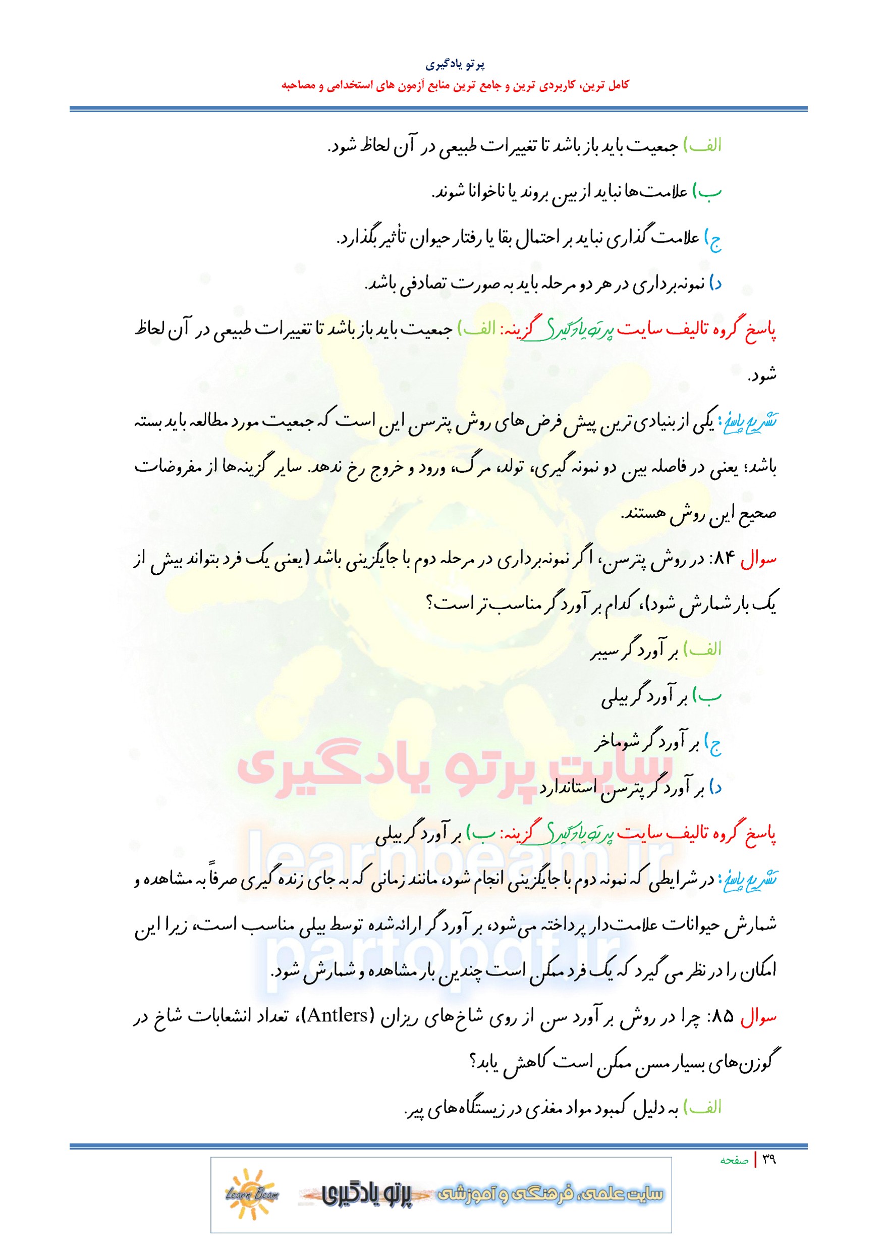 مجموعه سوالات و تست اصول و فنون مدیریت حیات وحش با پاسخ تشریحی