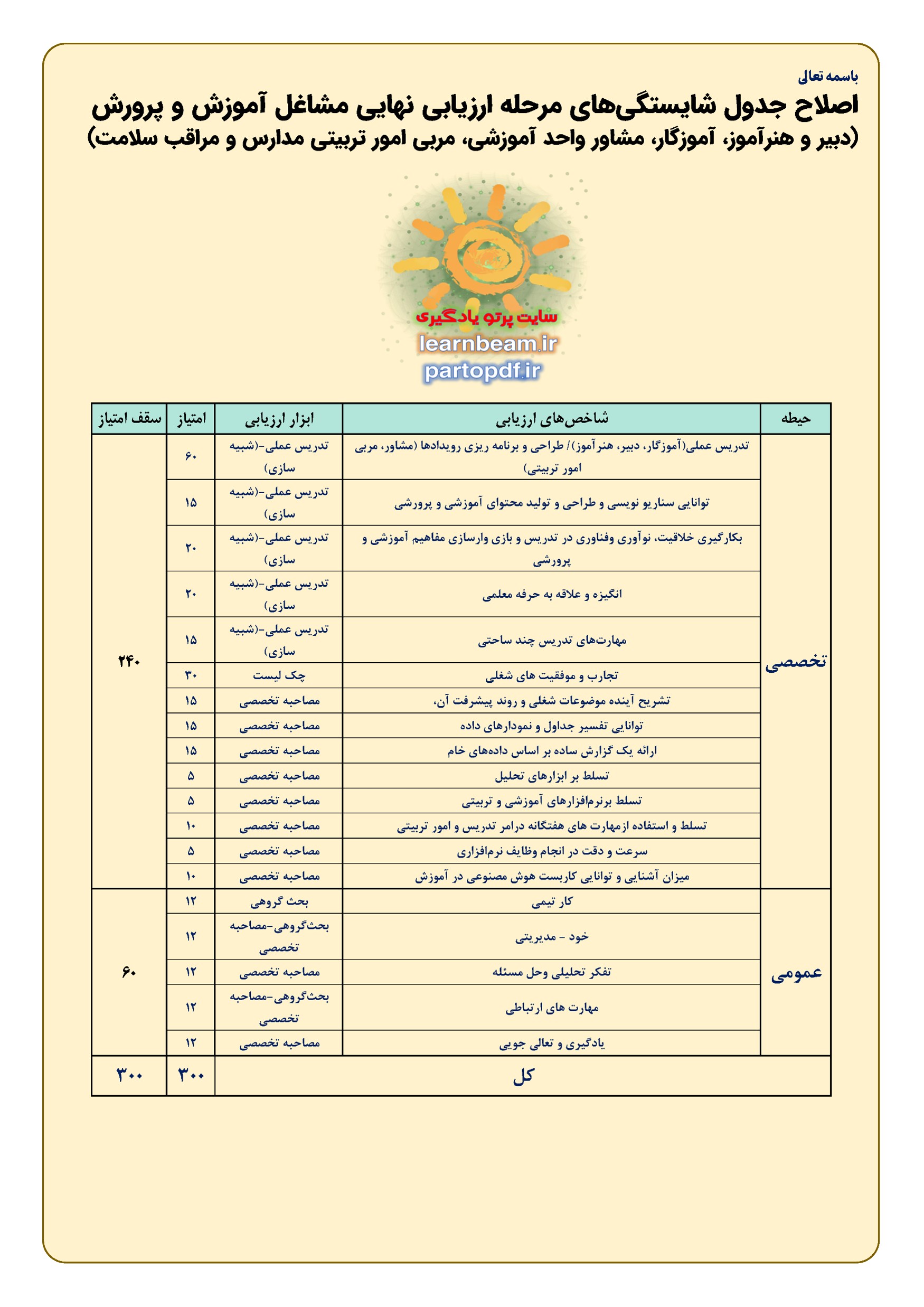 - بکارگیری خلاقیت، نوآوری و ایفای نقش در اجرای مفاهیم آموزشی و پرورشی