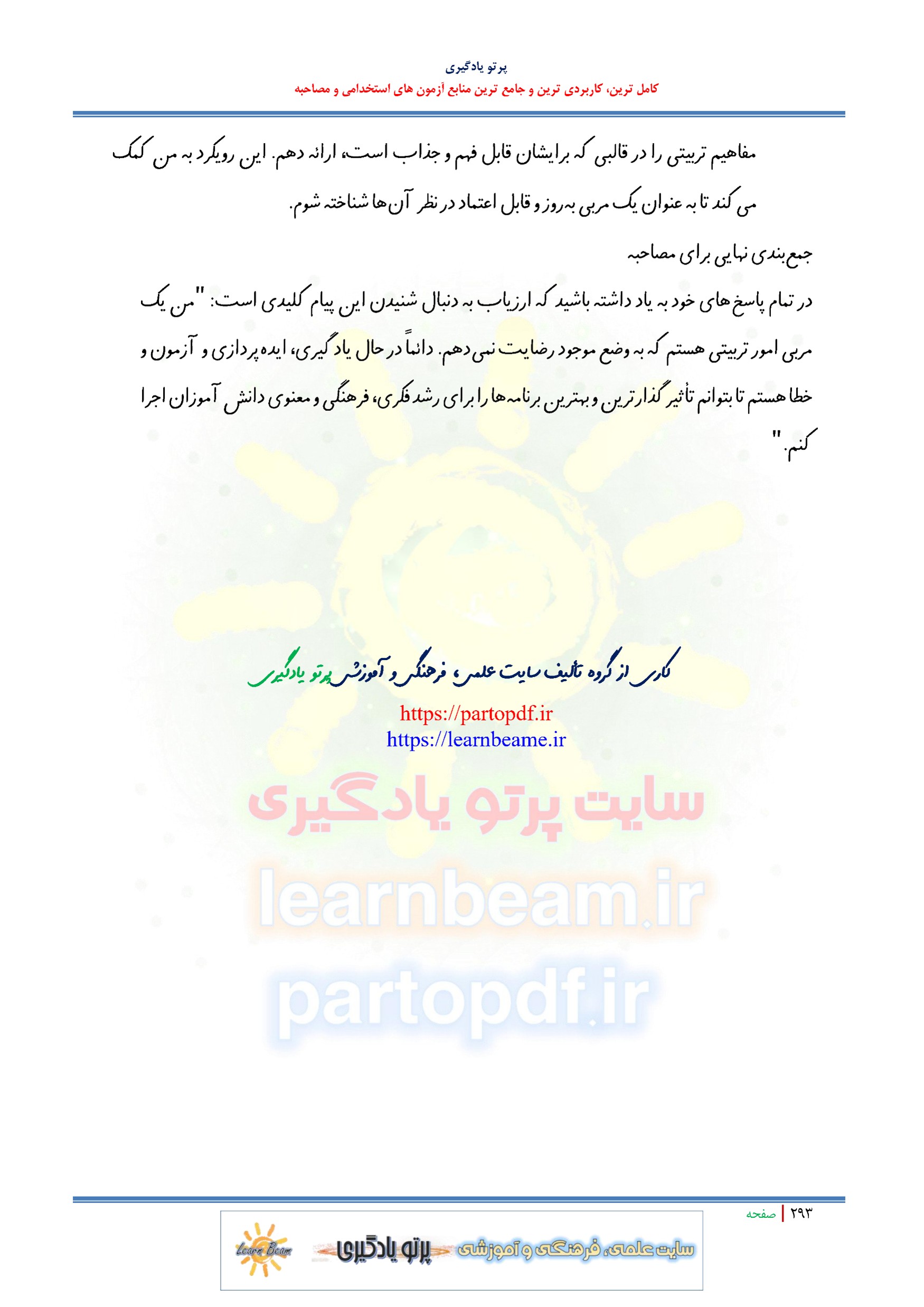 جزوه آمادگی و سوالات مصاحبه مربی امور تربیتی استخدامی وزارت آموزش و پرورش سال 1404 بصورت کامل و جامع جزوه مصاحبه استخدامی مربی امور تربیتی سال 1404 کامل ترین مجموعه گردآوری شده آمادگی برای مصاحبه استخدامی آموزش و پرورش سال 1404 در 294 صفحه PDF می باشد. جزوه آموزشی و سوالات مصاحبه شغل مربی امور تربیتی استخدامی وزارت آموزش و پرورش سال 1404 متناسب با سرفصلهای اعلامی بوده یک منبع جامع و کاربردی برای آمادگی داوطلبان میباشد. مجموعه سوالات و جزوه مصاحبه مربی امور تربیتی استخدامی وزارت آموزش و پرورش سال 1404 با پوشش تمامی موضوعات مرتبط و آزمونهای سنجشی وزارت آموزش و پرورش سال 1404 به داوطلبان کمک میکند تا بر مباحث اصلی و مهم خود را آماده کنند. در جزوه آمادگی و سوالات مصاحبه استخدامی مربی امور تربیتی سال 1404 تمامی مواردی که در مصاحبه مربی امور تربیتی مورد توجه قرار میگیرد به صورت دقیق و دستهبندیشده گردآوری شده است. استفاده از جزوه مصاحبه شغل مربی امور تربیتی استخدامی وزارت آموزش و پرورش سال 1404 میتواند در موفقیت شما در مسیر ورود به حرفه مربی امور تربیتی نقش مهمی داشته باشد.
