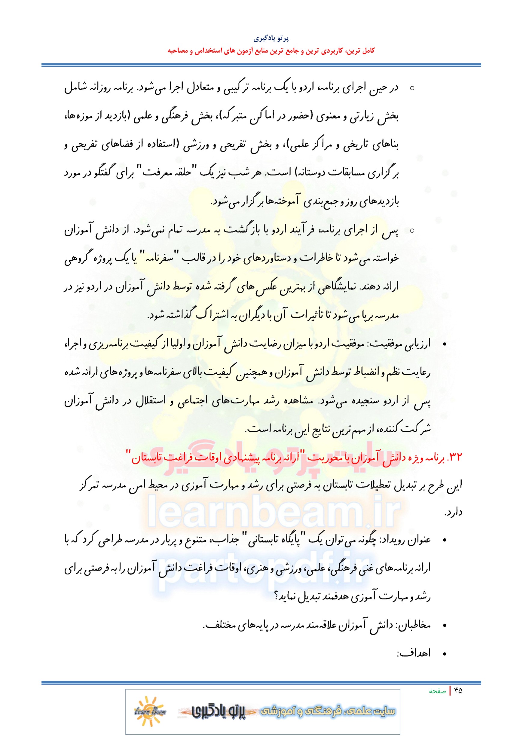 - بکارگیری خلاقیت، نوآوری و ایفای نقش در اجرای مفاهیم آموزشی و پرورشی