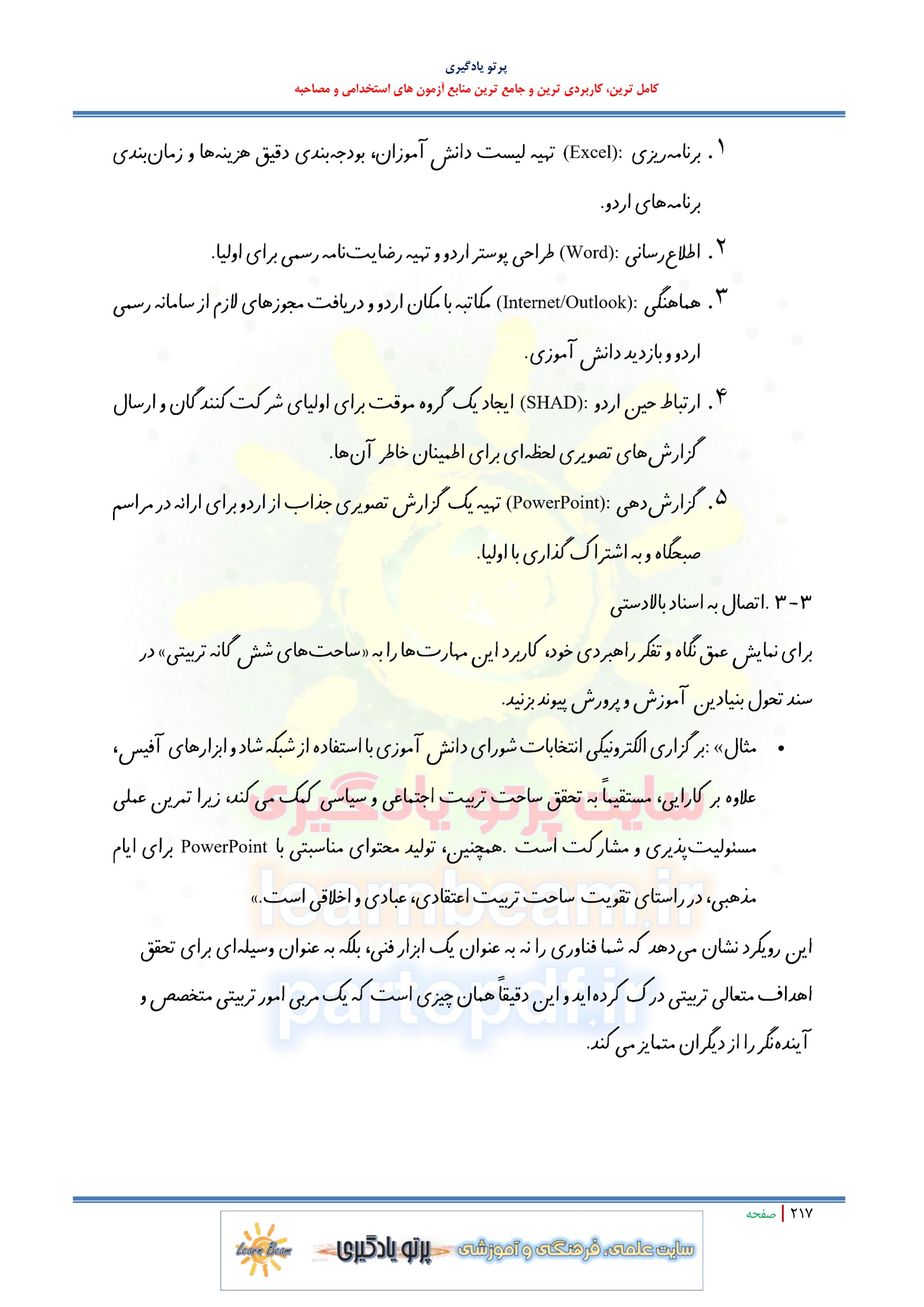 - تسلط بر نرمافزارهای آموزشی و تربیتی