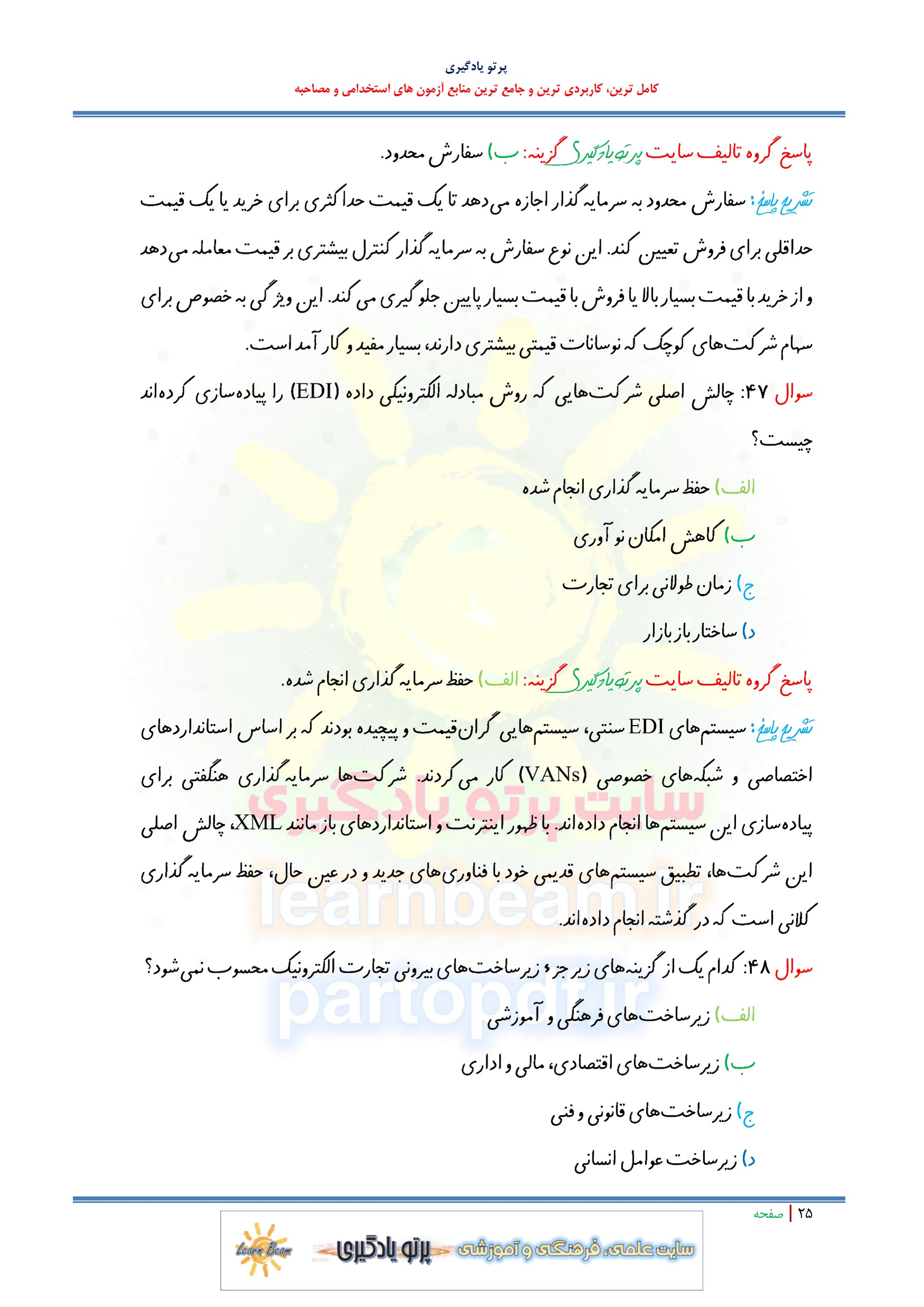 مجموعه سوالات و تست تجارت الکترونیک با پاسخ تشریحی