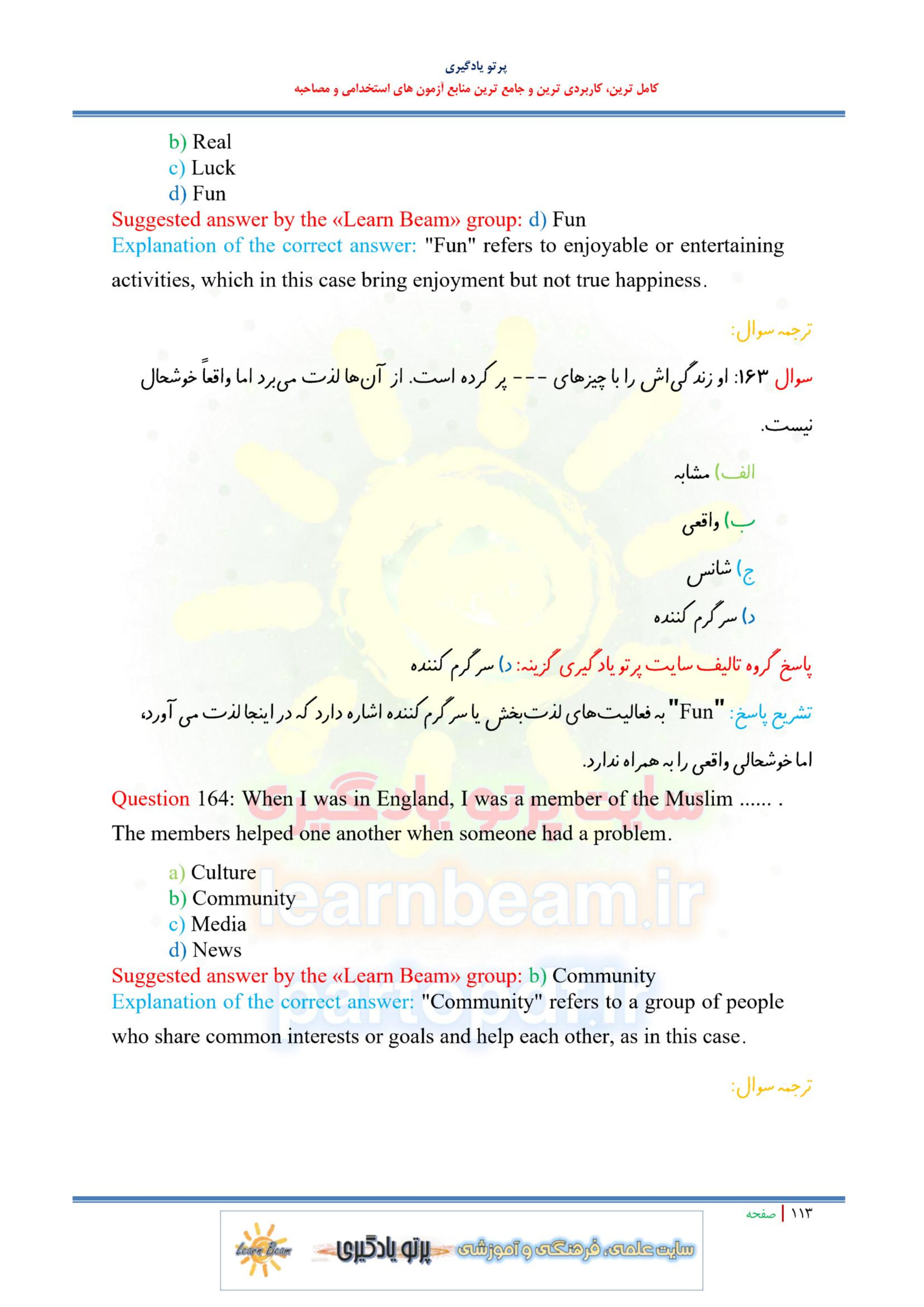 - مجموعه تست زبان انگلیسی عمومی (260 تست در 185 صفحه) با پاسخ تشریحی و ترجمه فارسی تست به تست