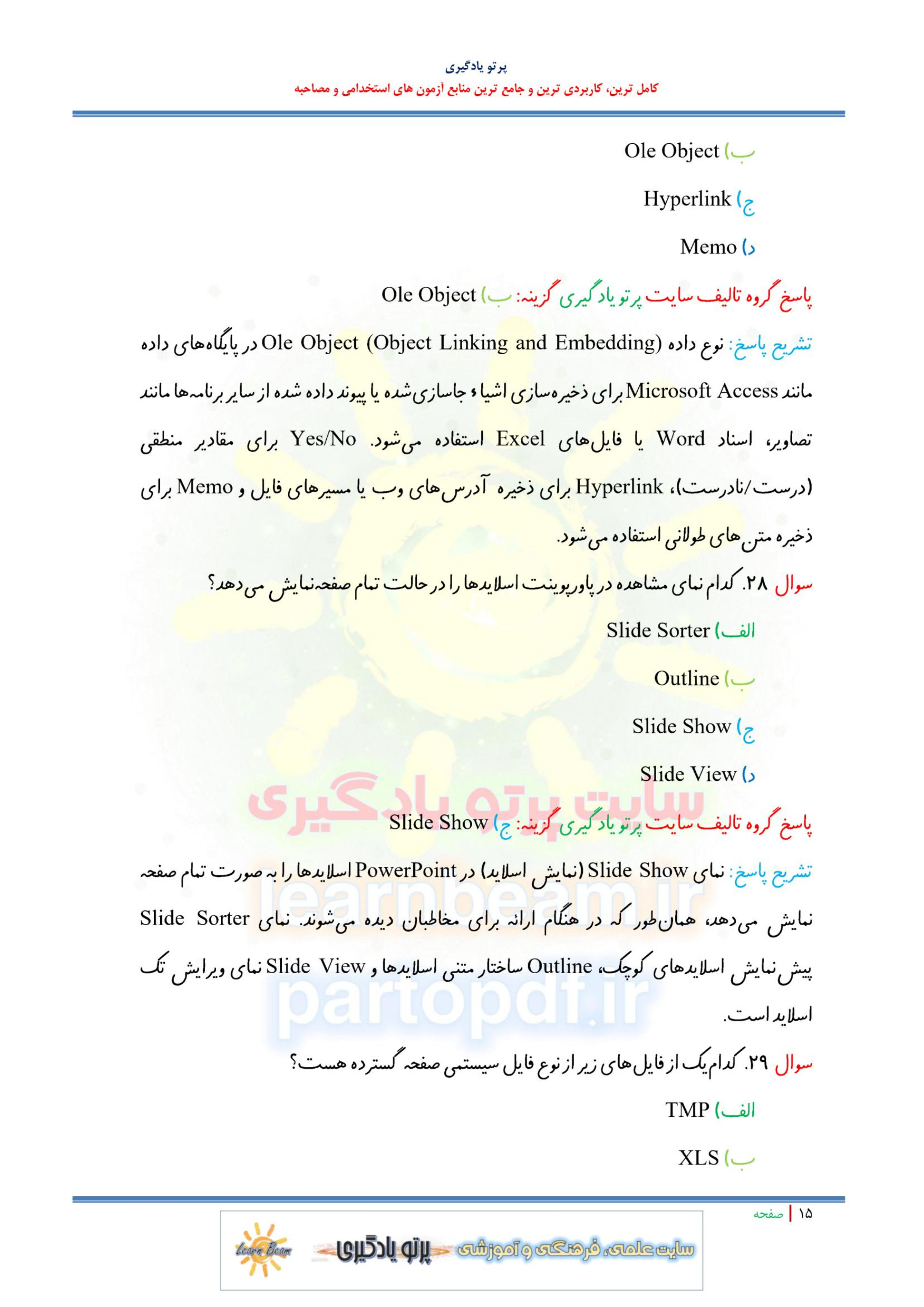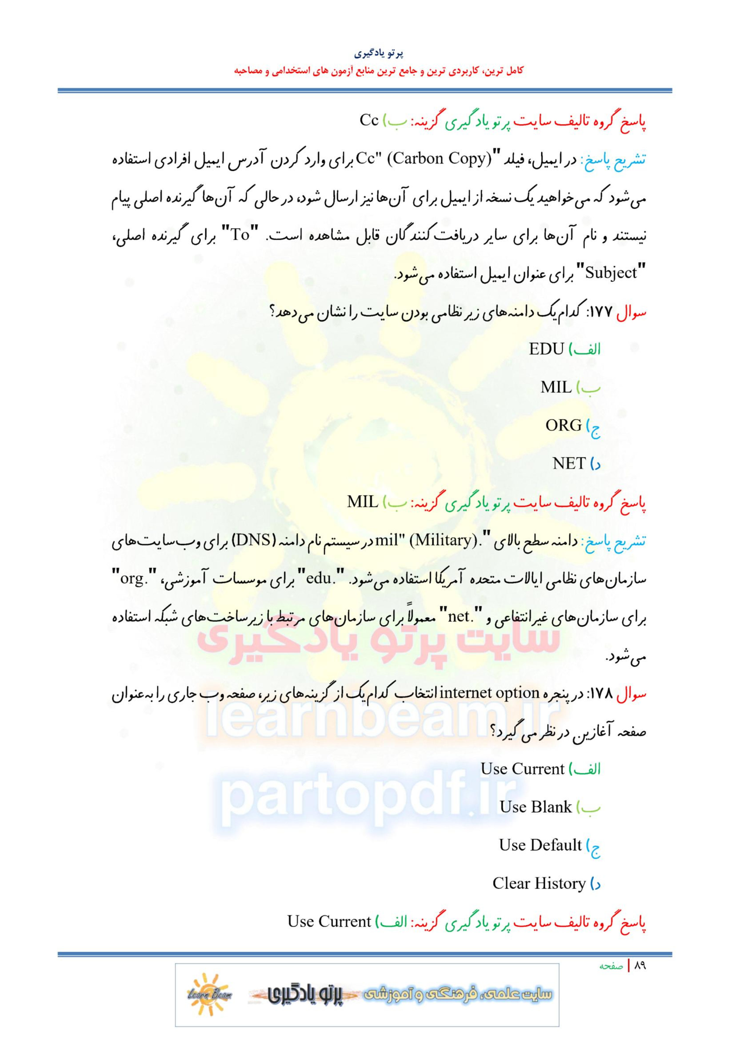 - مجموعه تست مهارت های هفتگانه ICDL (220 تست در 110 صفحه) با پاسخ تشریحی