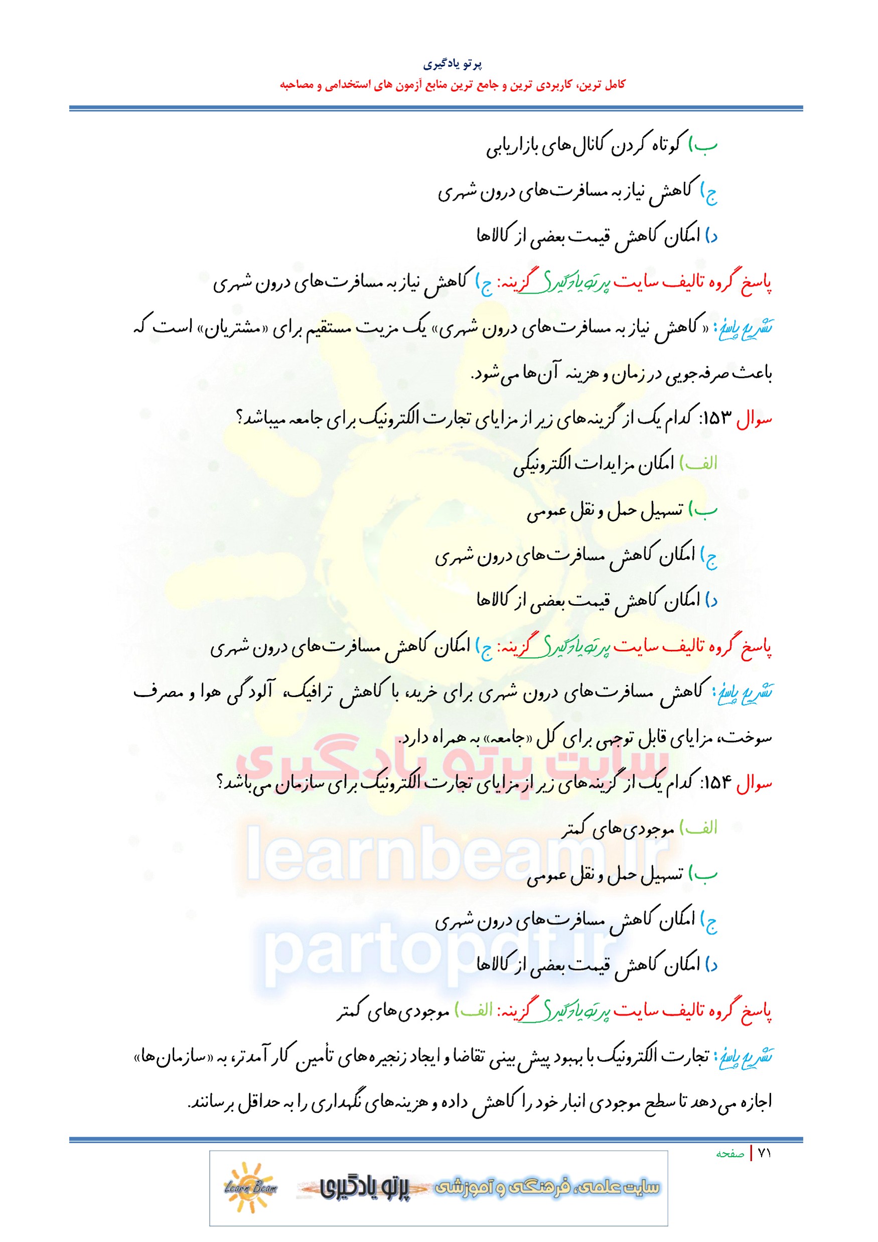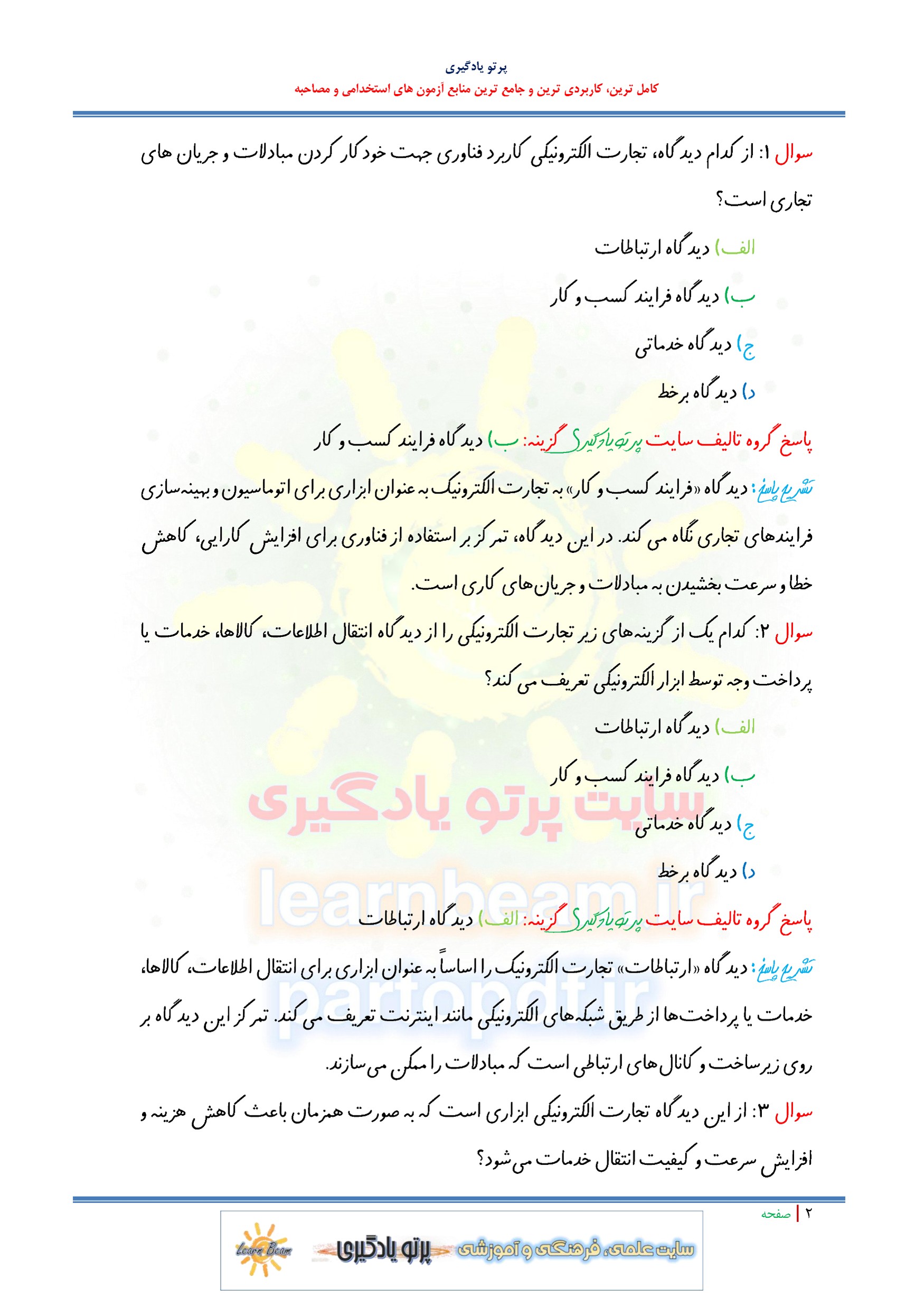 مجموعه سوالات و تست کسب و کار الکترونیک با پاسخ تشریحی