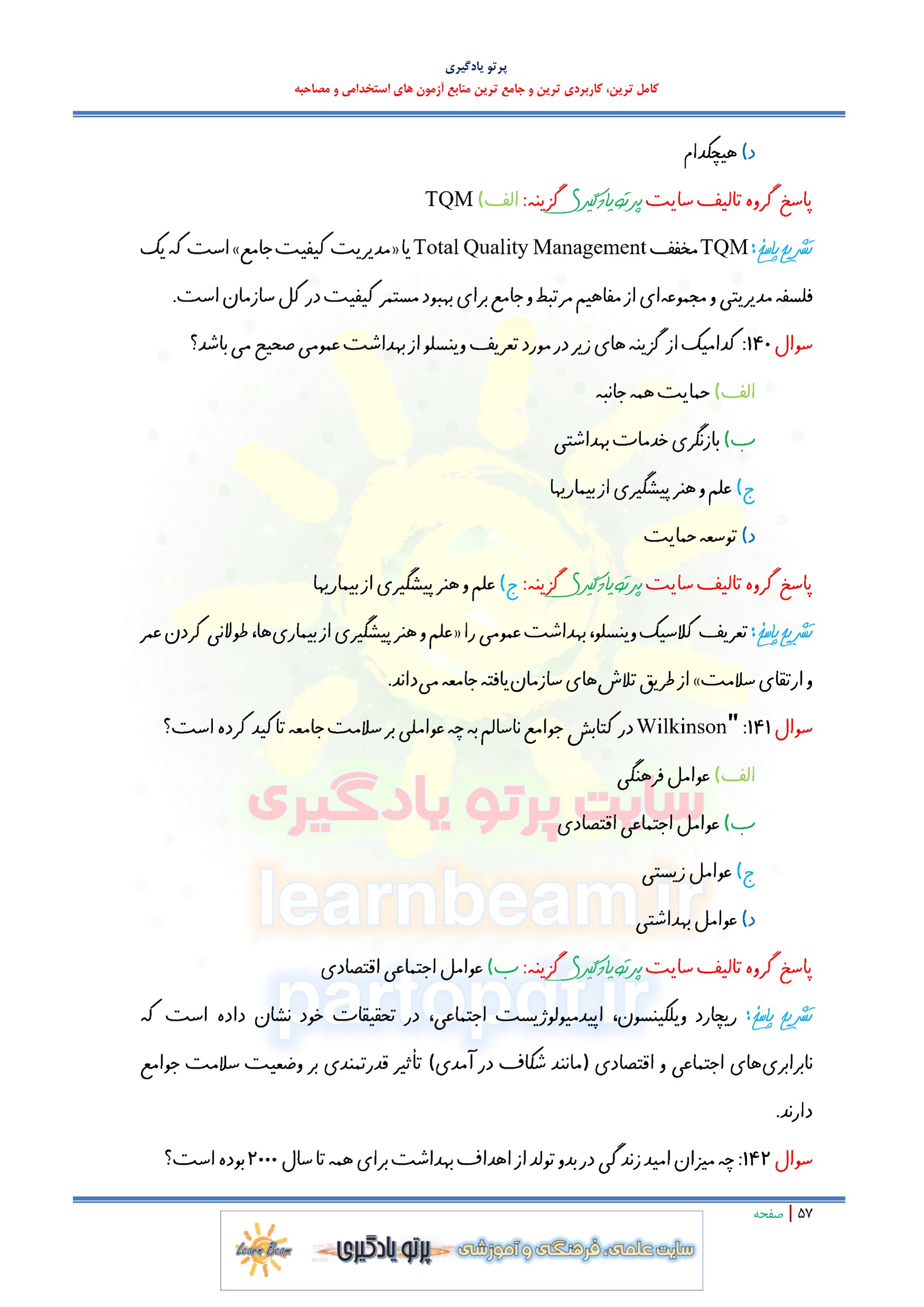 مجموعه سوالات و تست کلیات خدمات بهداشتی با پاسخ تشریحی