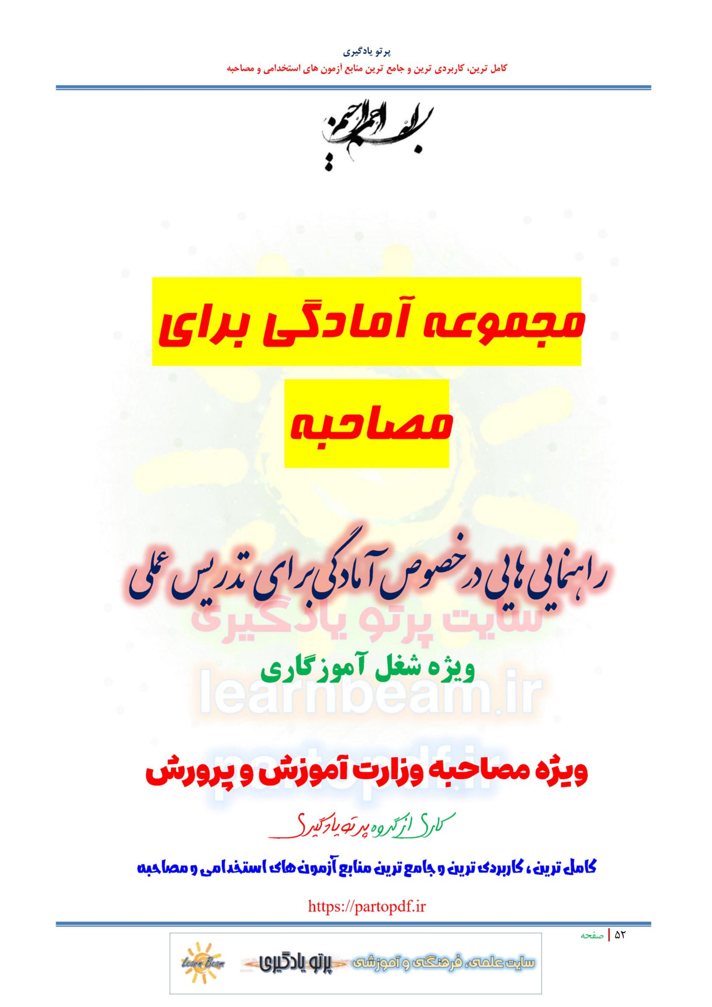 این مجموعه متناسب با آخرین اطلاعات و اصلاحیه های چهارچوب مصاحبه استخدامی وزارت آموزش و پرورش و طبق سرفصل های اعلامی سال 1404 تدوین گردیده است.