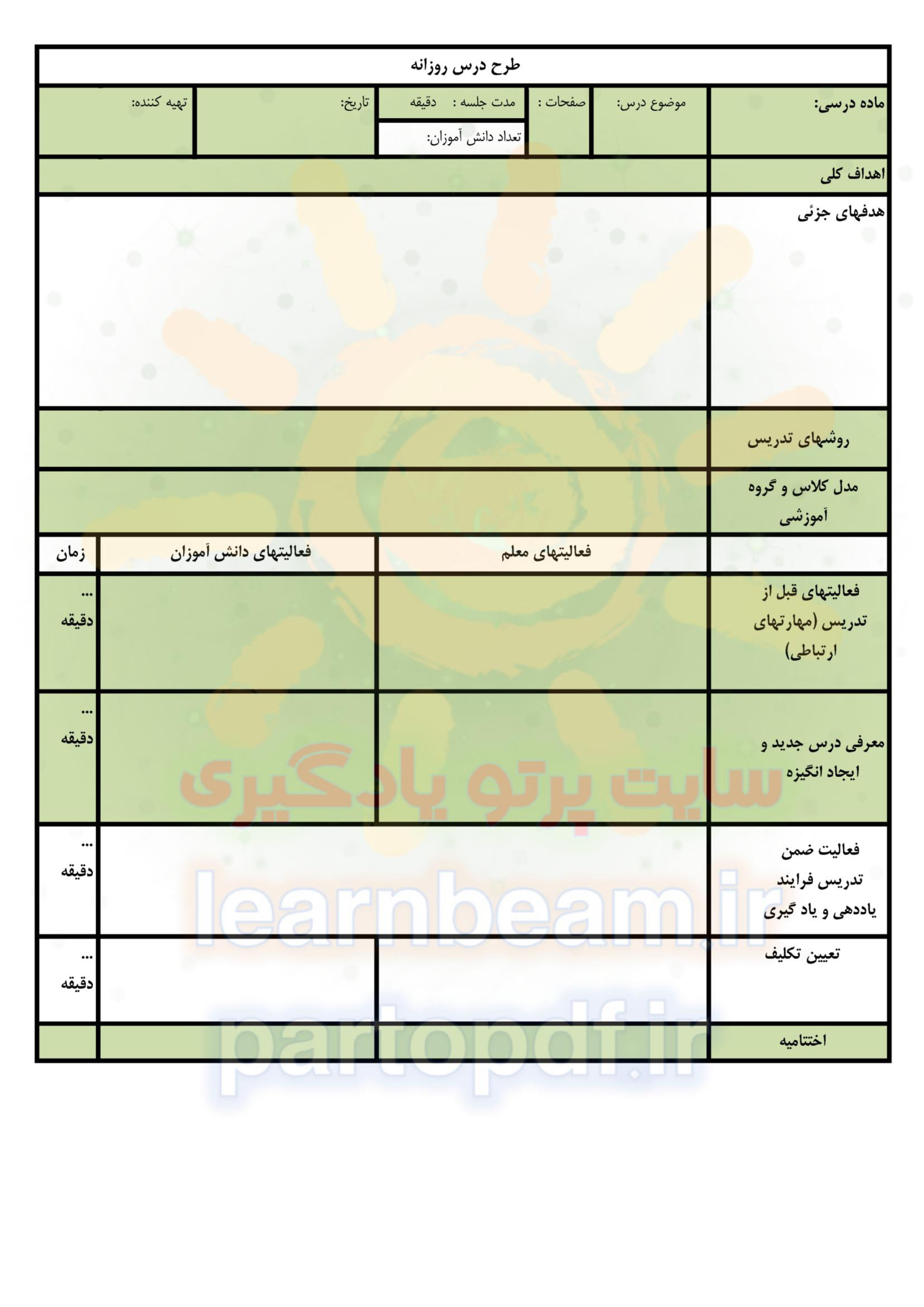 کامل ترین مجموعه گردآوری شده آمادگی در حیطه طرح درس نویسی و طراحی سناریو آموزشی