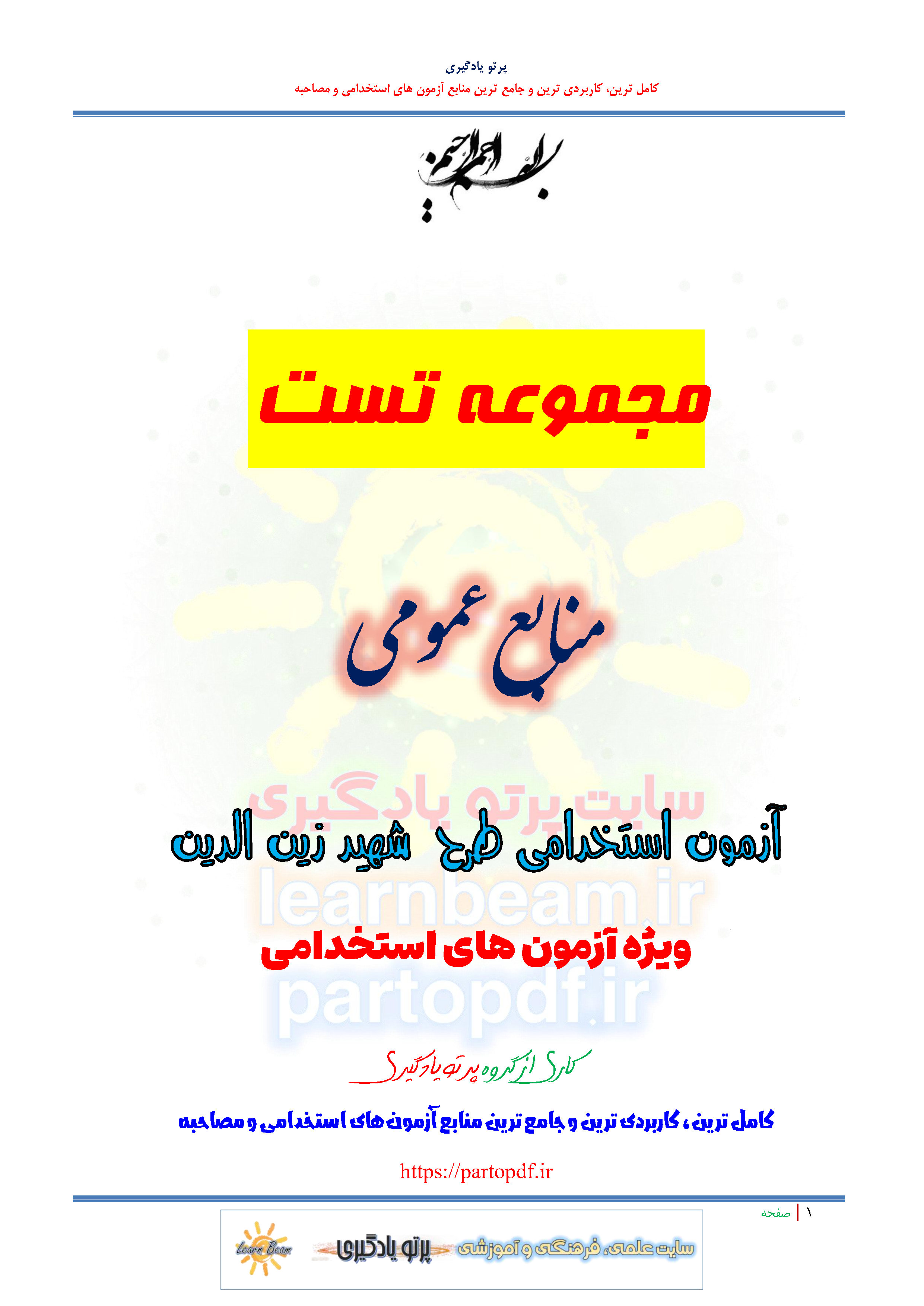 تست منابع عمومی آزمون استخدامی طرح شهید زین الدین