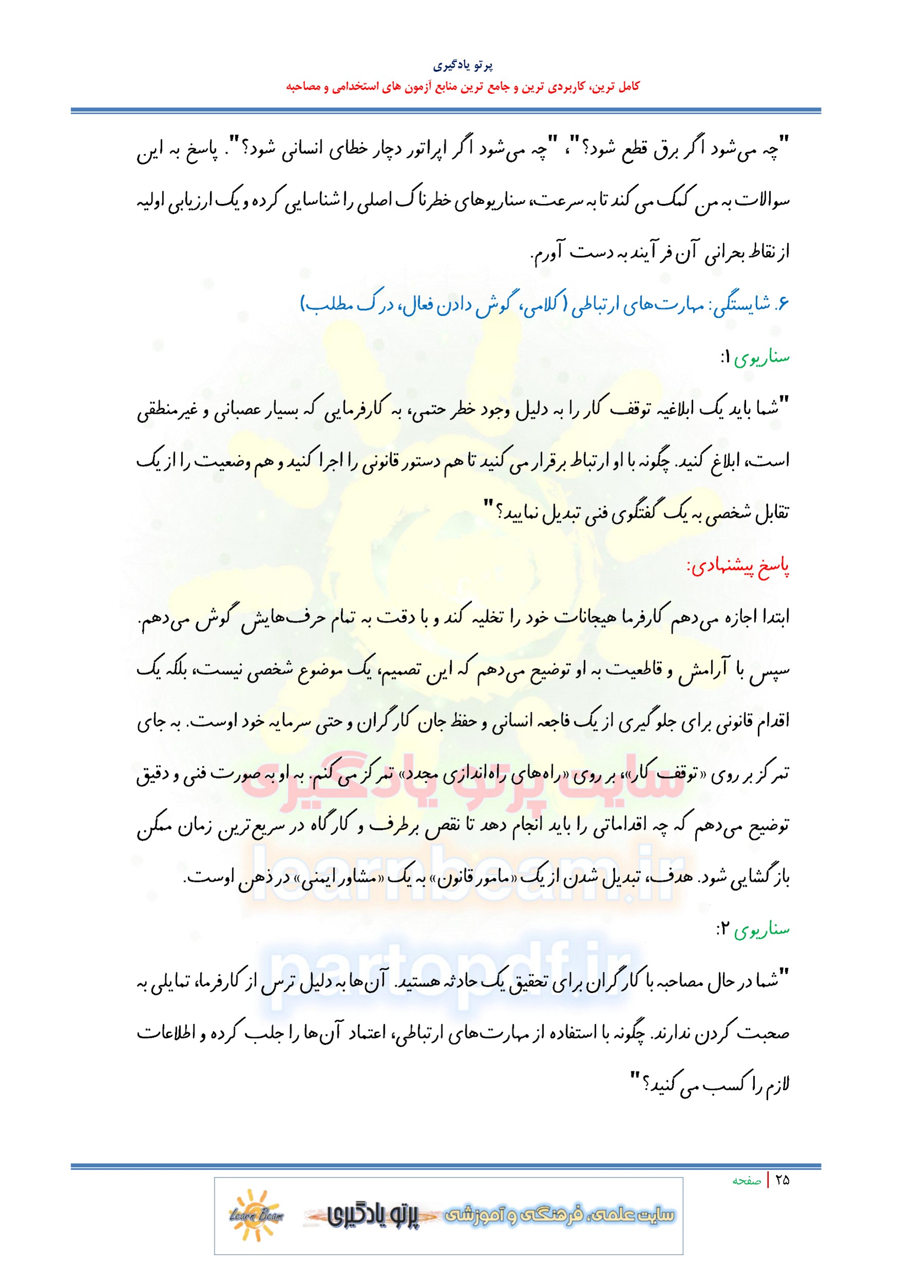 سوالات در قالب سناریو و مصاحبه شایسته محور و مباحث عمومی و تخصصی