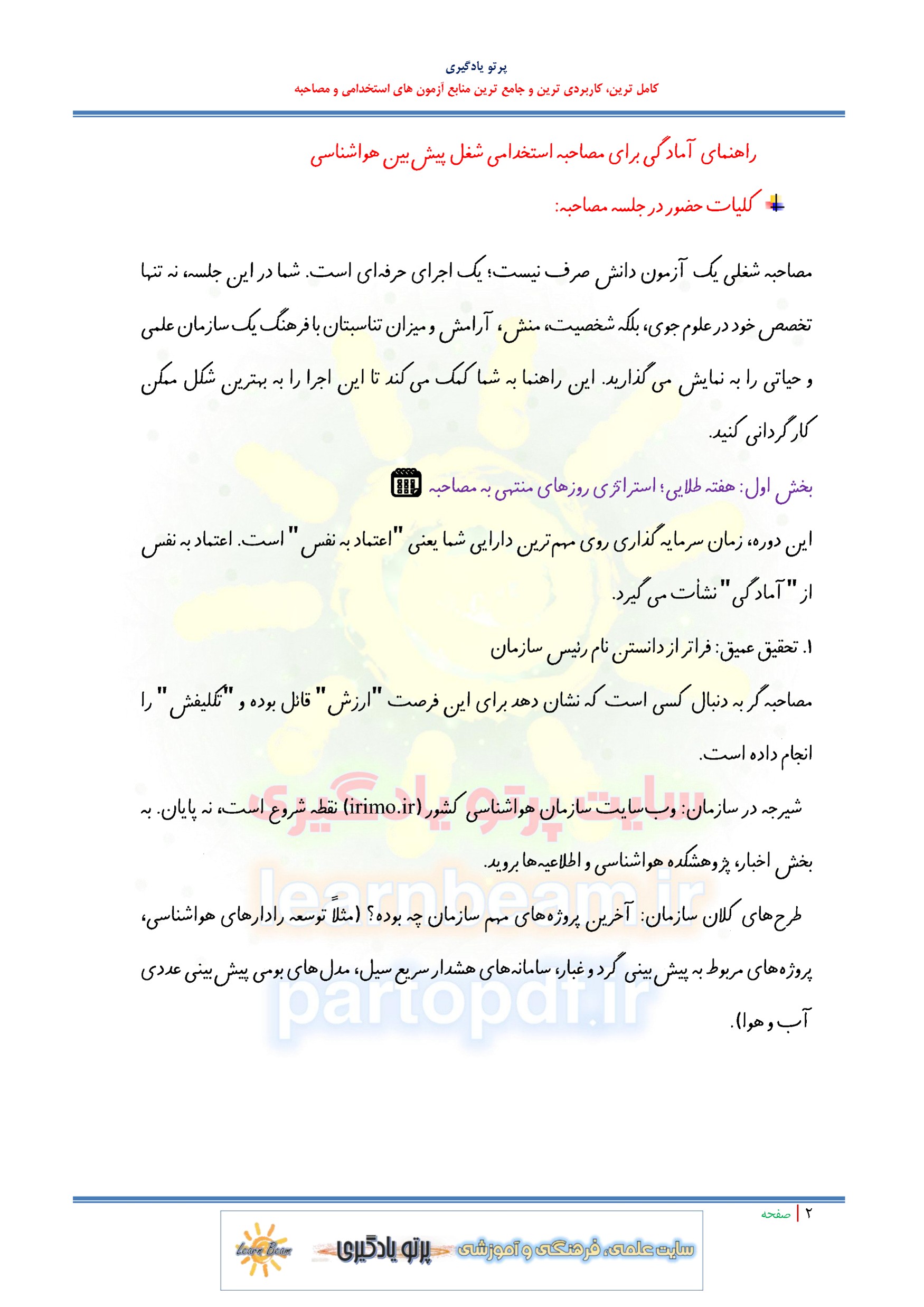 جزوه سوالات مصاحبه استخدامی پیش بین هواشناسی استخدامی سازمان هواشناسی کشور