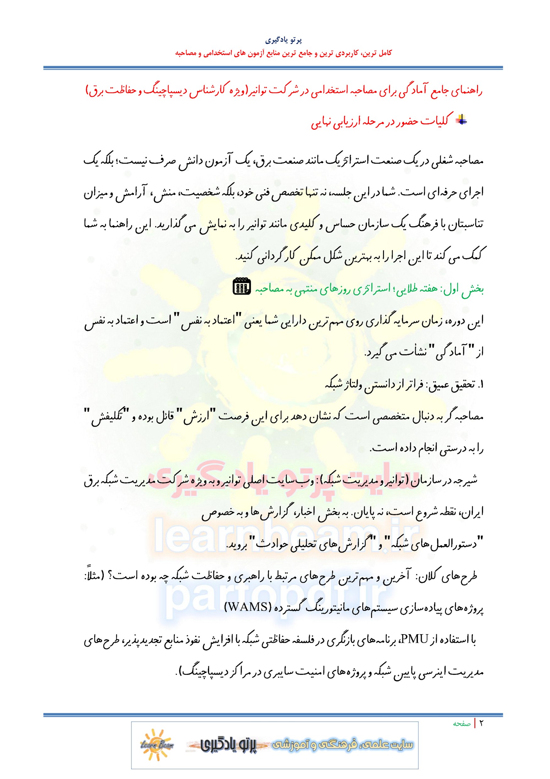 جزوه سوالات مصاحبه استخدامی کارشناس دیسپاچینگ و حفاظت برق استخدامی شرکت توانیر