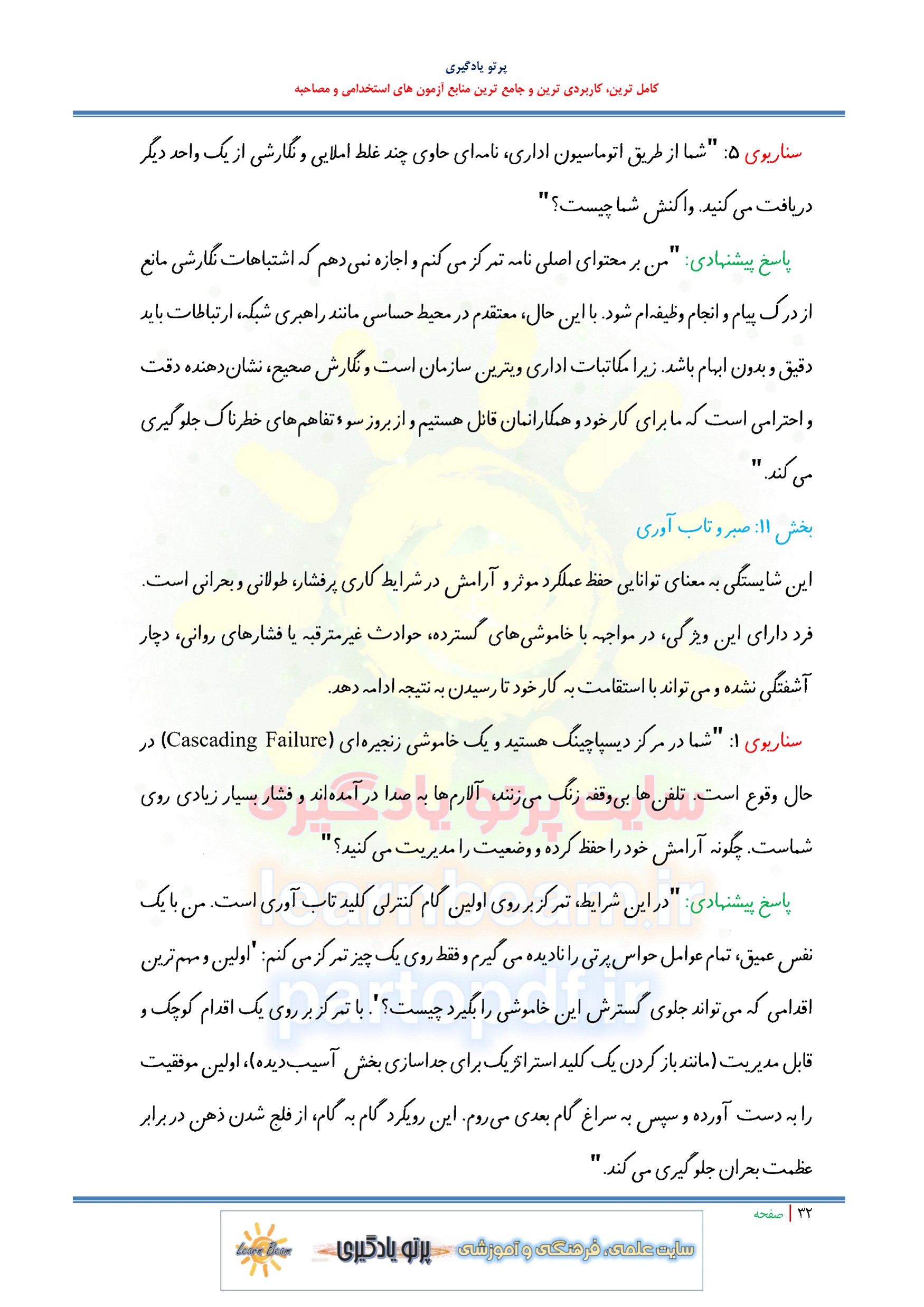 سوالات در قالب سناریو و مصاحبه شایسته محور و مباحث عمومی و تخصصی