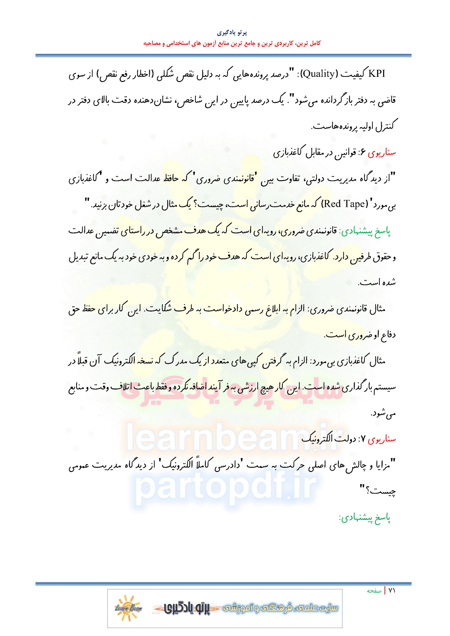 سوالات در قالب سناریو و مصاحبه شایسته محور و مباحث عمومی و تخصصی