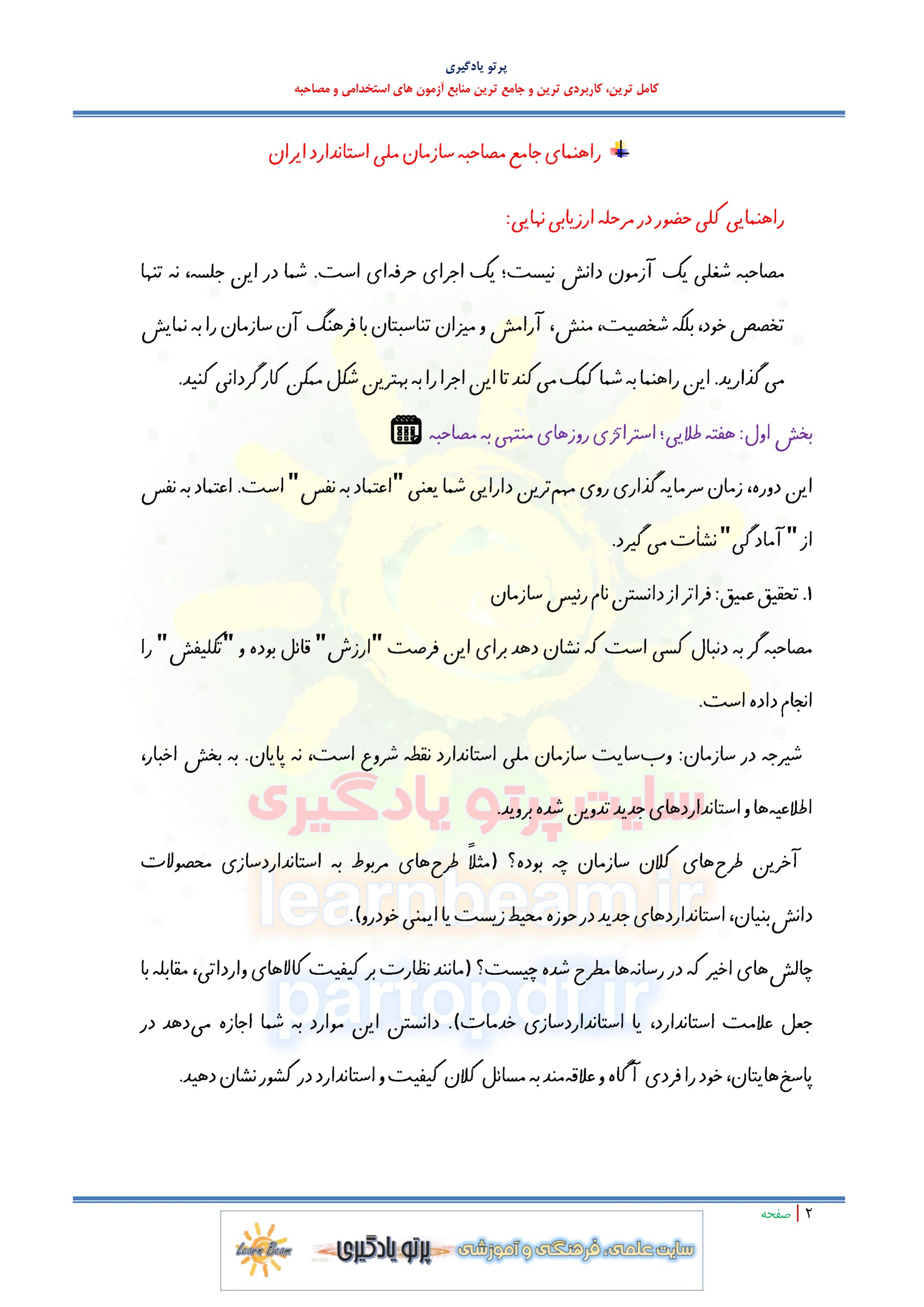 مجموعه سوالات آمادگی برای مصاحبه مشاغل استخدامی سازمان ملی استاندارد ایران