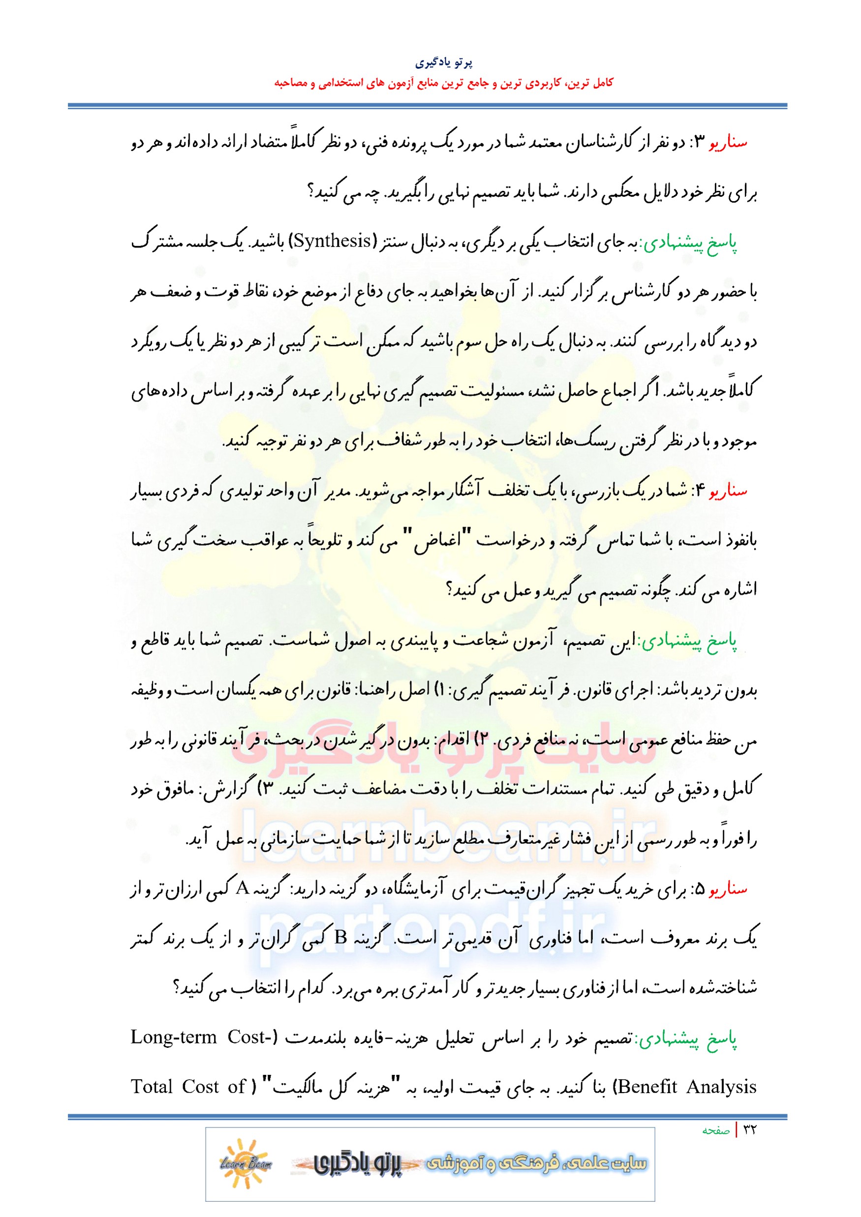 سوالات در قالب سناریو و مصاحبه شایسته محور و مباحث عمومی و تخصصی