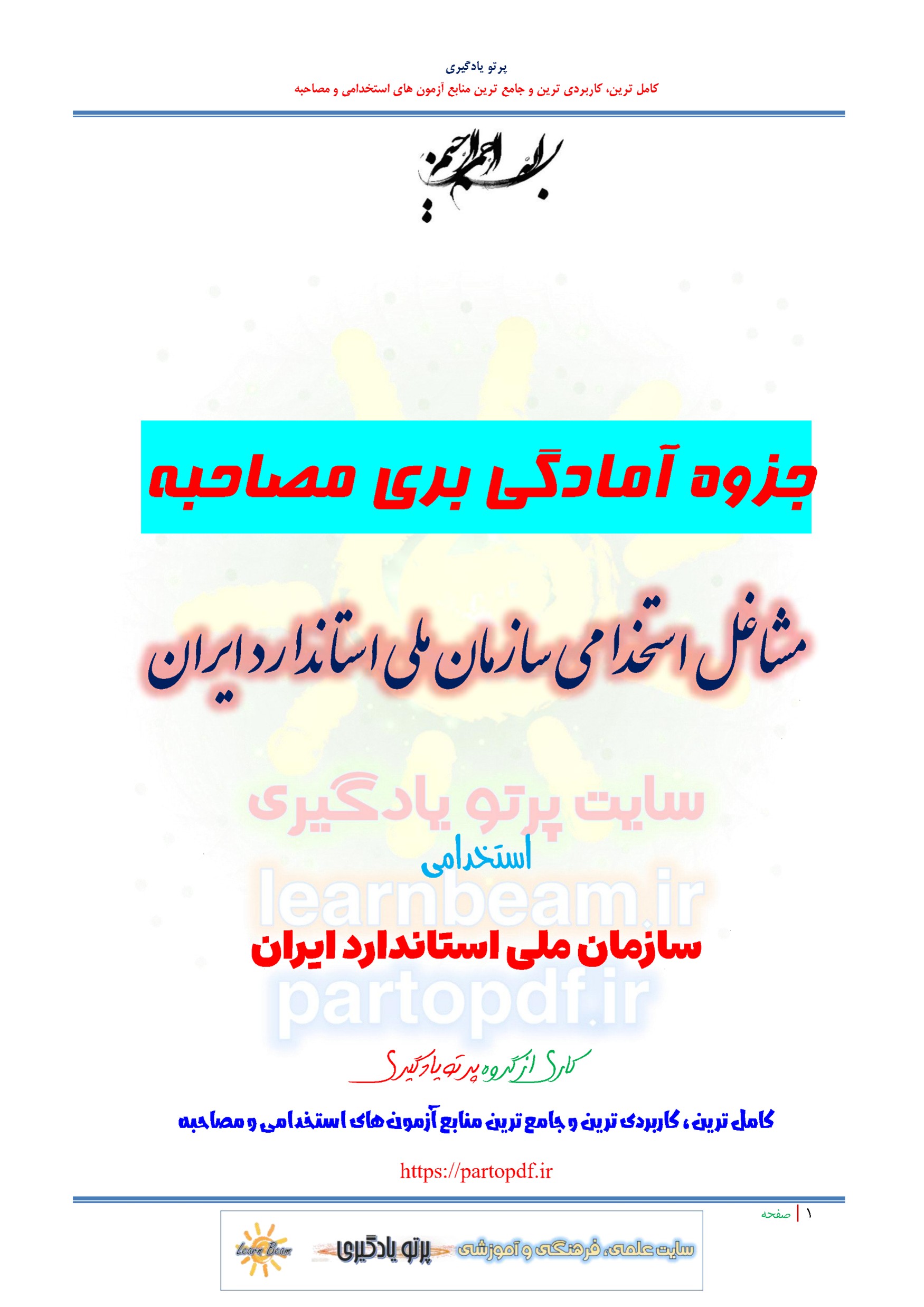 جزوه مجموعه سوالات آمادگی برای مصاحبه مشاغل استخدامی سازمان ملی استاندارد ایران در 2 محور تدوین گردیده است: بخش 1 کلیات مصاحبه و نحوه حضور در آن شرایط و ویژگی ها و ملاک های لازم را برای حضور در مصاحبه ترسیم نموده و شما را برای حضور فیزیکی برای مصاحبه آماده می کند. بخش 2 که مباحث عمومی و در برگیرنده سوالات کاملا مرتبط و متناسب با مشاغل استخدامی سازمان ملی استاندارد ایران متقاضی است و مربوط به سوالات مهم و پرتکرار حیطه عمومی، سوالات پرتکرار و روانشناسی است که آمادگی داوطلبین را برای حضور در جلسه مصاحبه آن دستگاه اجرایی به همراه دارد.