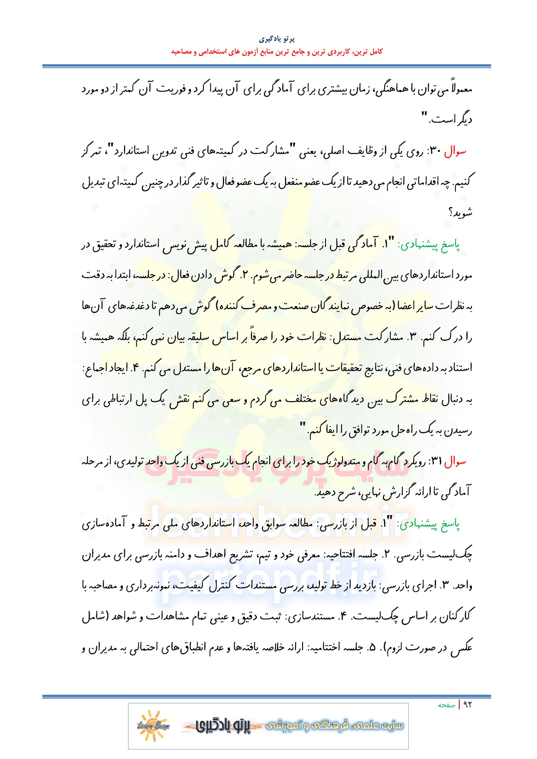 جزوه سوالات مصاحبه استخدامی مشاغل استخدامی سازمان ملی استاندارد ایران