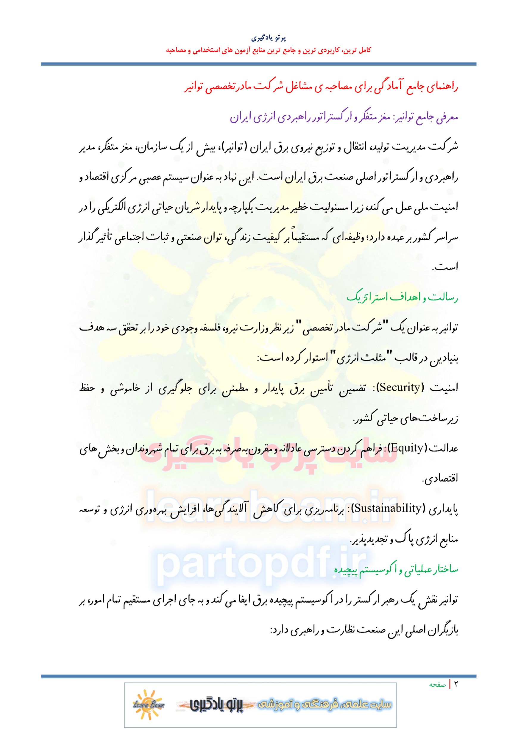 جزوه سوالات مصاحبه استخدامی مشاغل استخدامی شرکت مادرتخصصی توانیر