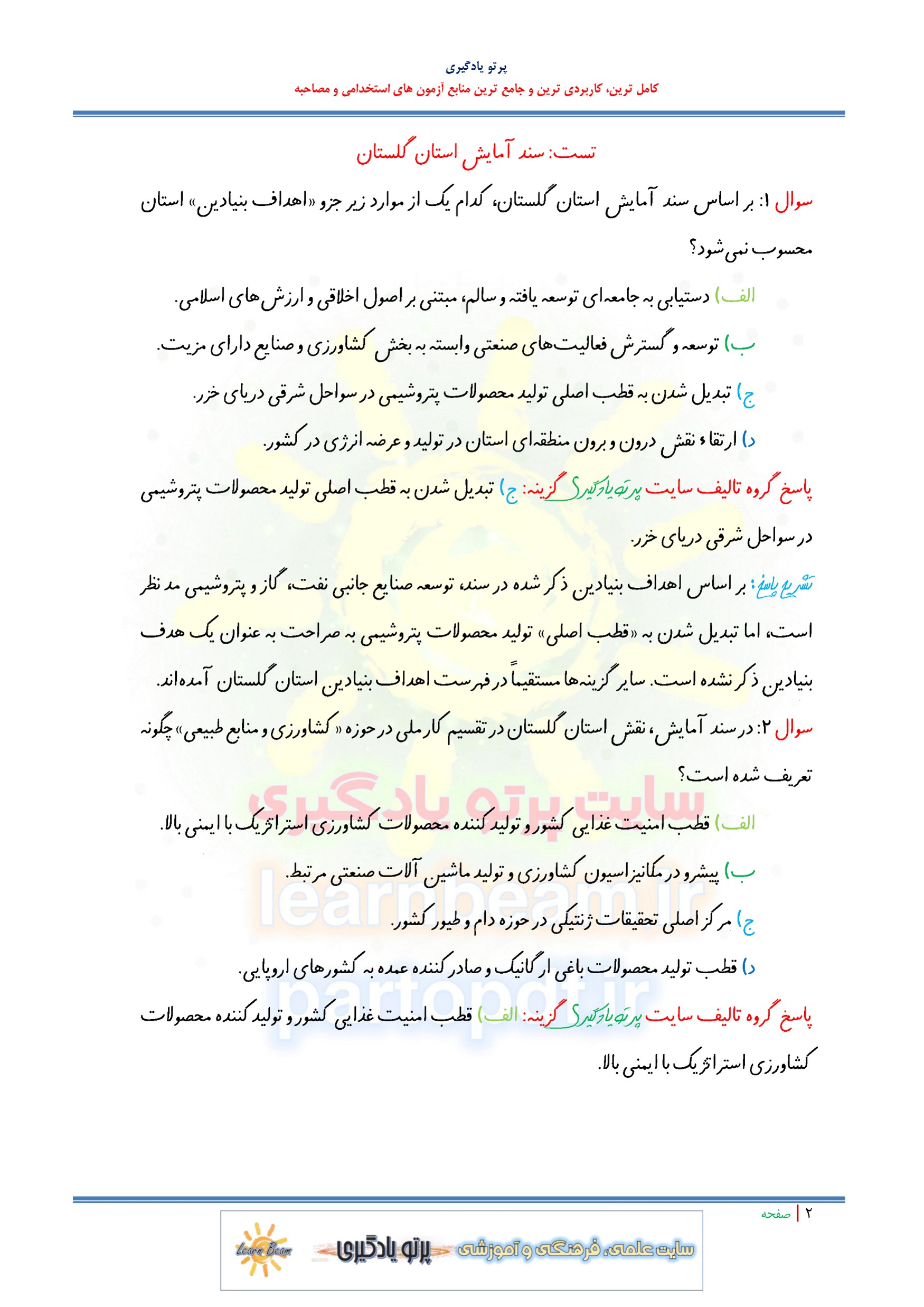 مجموعه سوالات و تست سند آمایش استان گلستان با پاسخ تشریحی