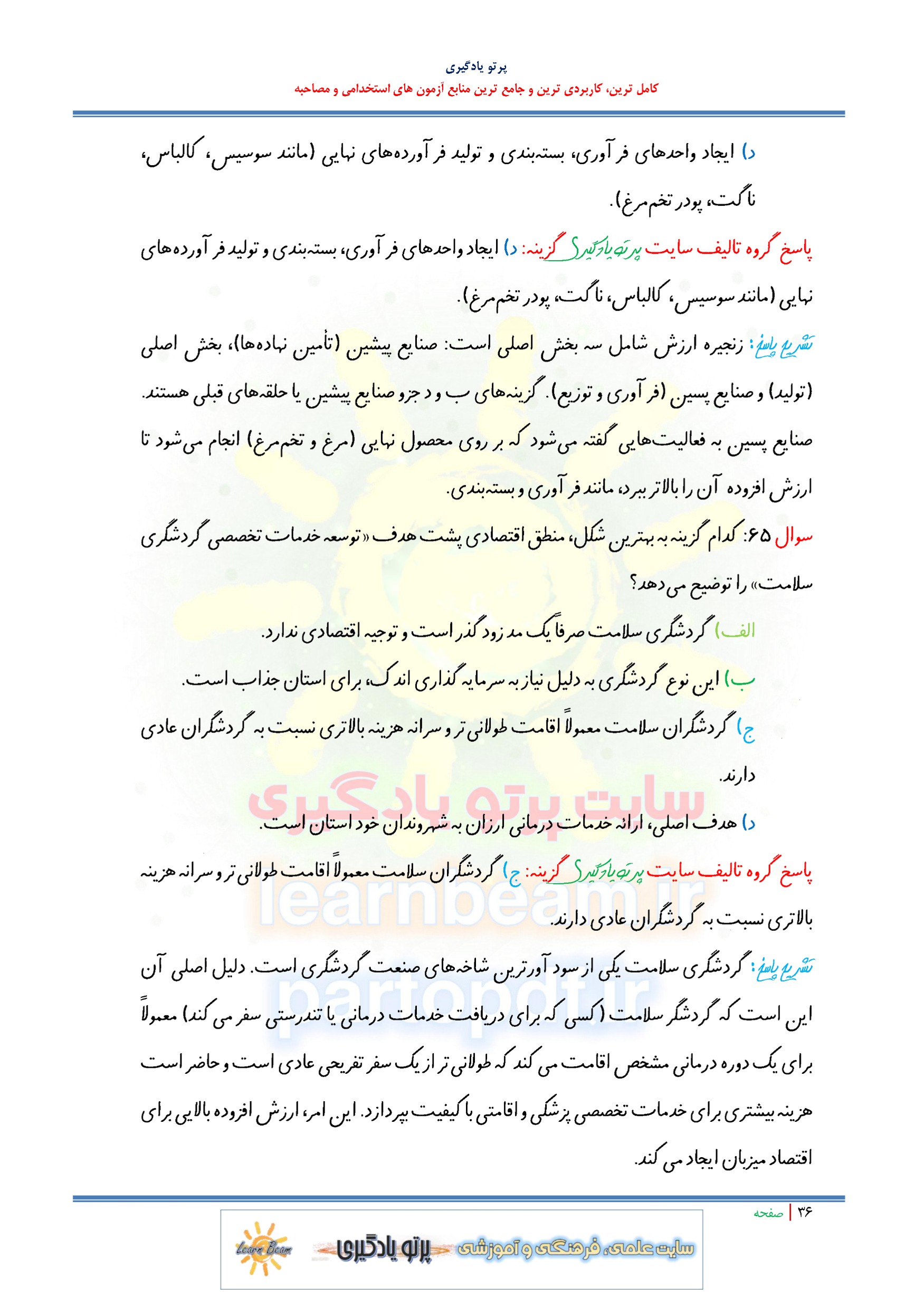 سوالات و تست سند آمایش استان گلستان سوالات سند آمایش استان گلستان شامل 80 سوال تستی در 46 صفحه با پاسخ تشریحی در قالب فایل pdf. بهترین منبع برای آزمون های استخدامی می باشد. مجموعه سوالات تستی سند آمایش استان گلستان مطالب خوانده شده داوطلبین آزمون استخدامی را نظم بخشیده و منسجم می سازد. این مجموعه مرور سریع داوطلب را سبب می شود و آگاهی های وی را نظم بخشیده و یک آمادگی و شبیه سازی را برای جلسه آزمون به همراه دارد. مطالعه این منبع برای همه داوطلبین شرکت کننده در آزمون های استخدامی پیشنهاد می شود.