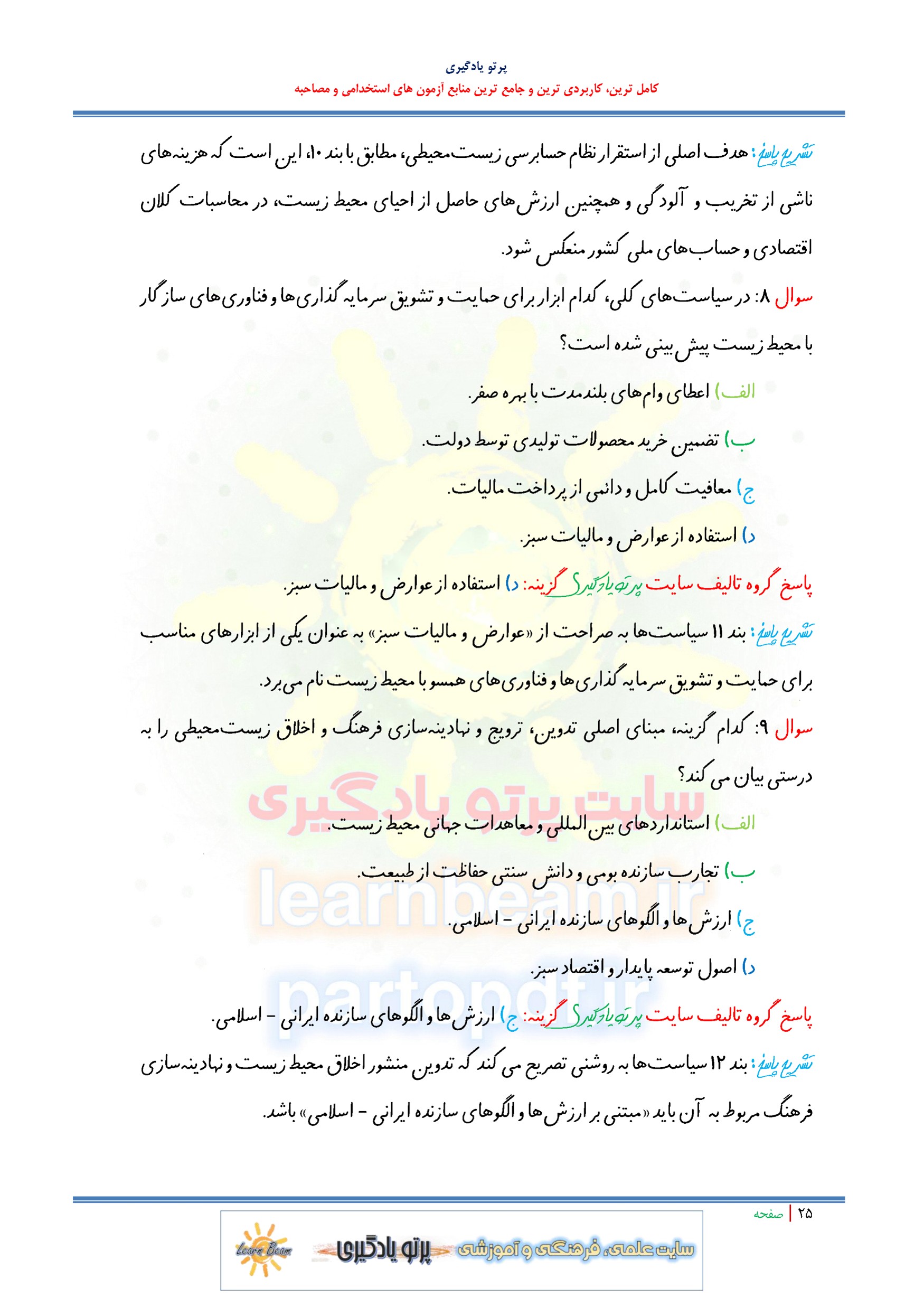 5. سیاست های کلی محیط زیست (30 تست) - 6. سیاست های کلی کشاورزی (10 تست)
