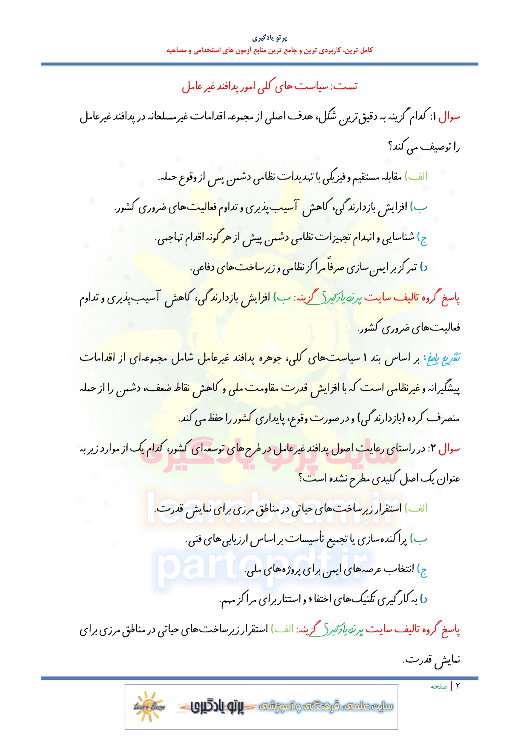 سوالات و تست سیاست های کلی امور پدافند غیرعامل