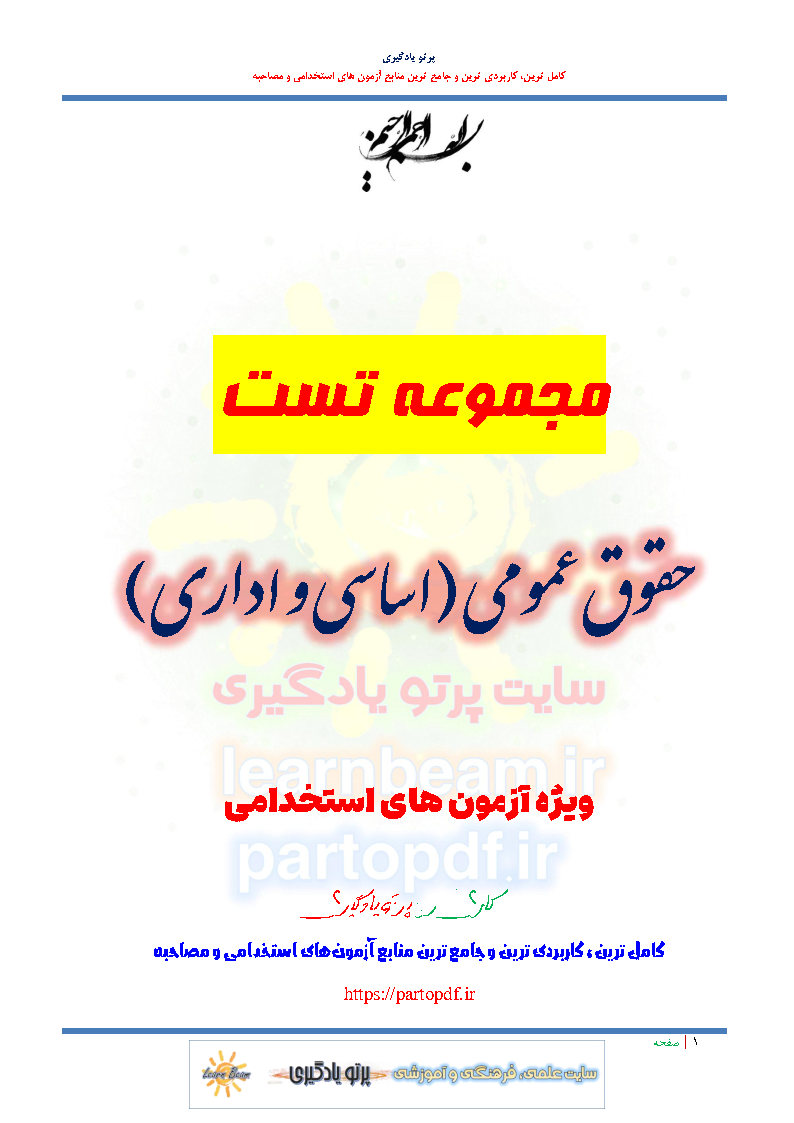 سوالات و تست حقوق عمومی سوالات تستی حقوق عمومی شامل 150 تست حقوق اساسی و 220 تست حقوق اداری و در مجموع 370 سوال تستی در 79 صفحه در قالب فایل pdf. مطابق با سرفصل های دفترچه آزمون های استخدامی. مجموعه تستی حقوق عمومی بهترین منبع برای آمادگی آزمون های استخدامی می باشد. مجموعه سوالات و تست حقوق عمومی مطالب خوانده شده داوطلبین آزمون استخدامی را نظم بخشیده و منسجم می سازد. مجموعه سوالات تستی حقوق عمومی ویژه آزمون های استخدامی مرور سریع داوطلب را سبب می شود و آگاهی های وی را نظم بخشیده و یک آمادگی و شبیه سازی را برای جلسه آزمون به همراه دارد. مطالعه پک مجموعه سوالات و تست حقوق عمومی برای داوطلبین آزمون های استخدامی پیشنهاد می شود.